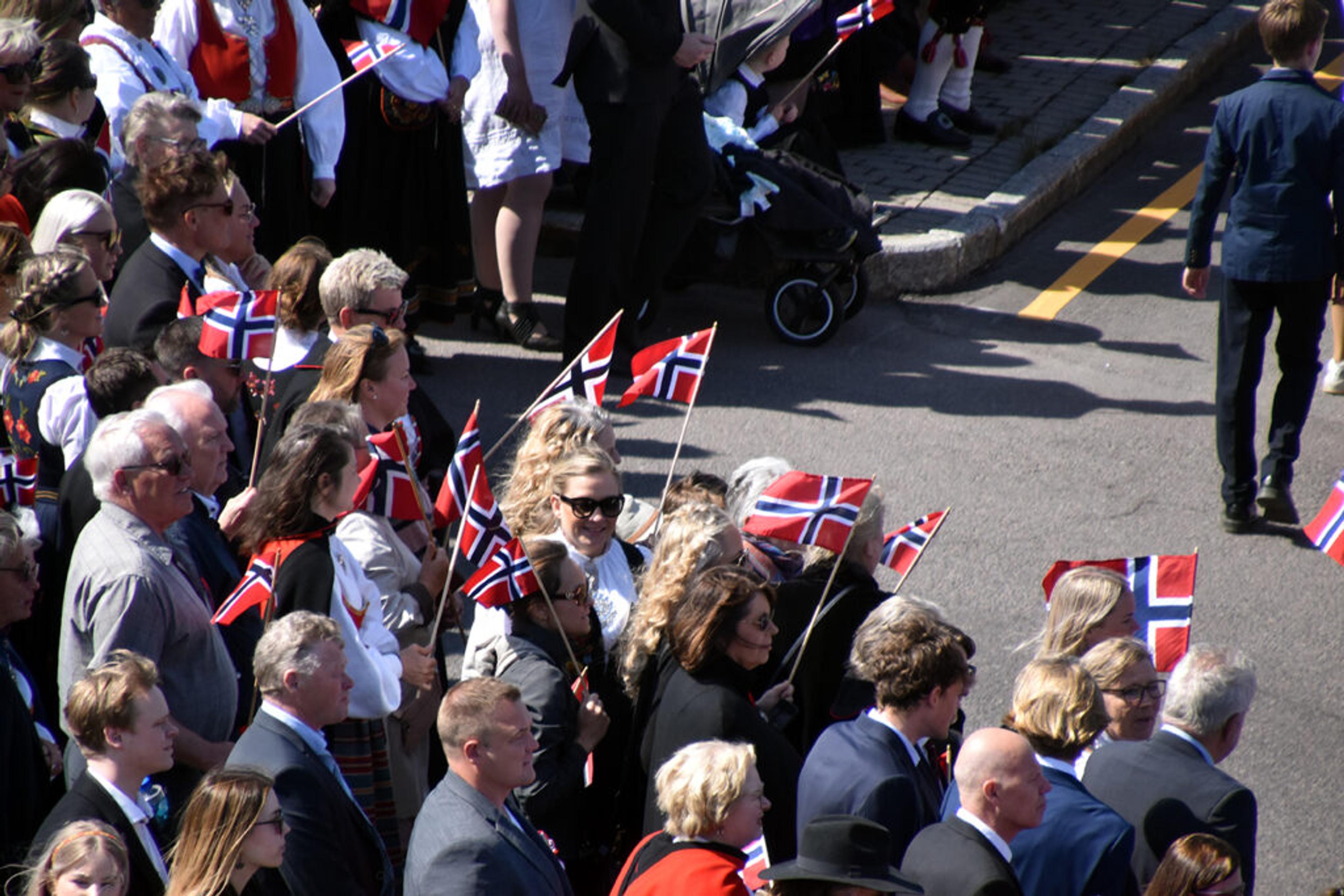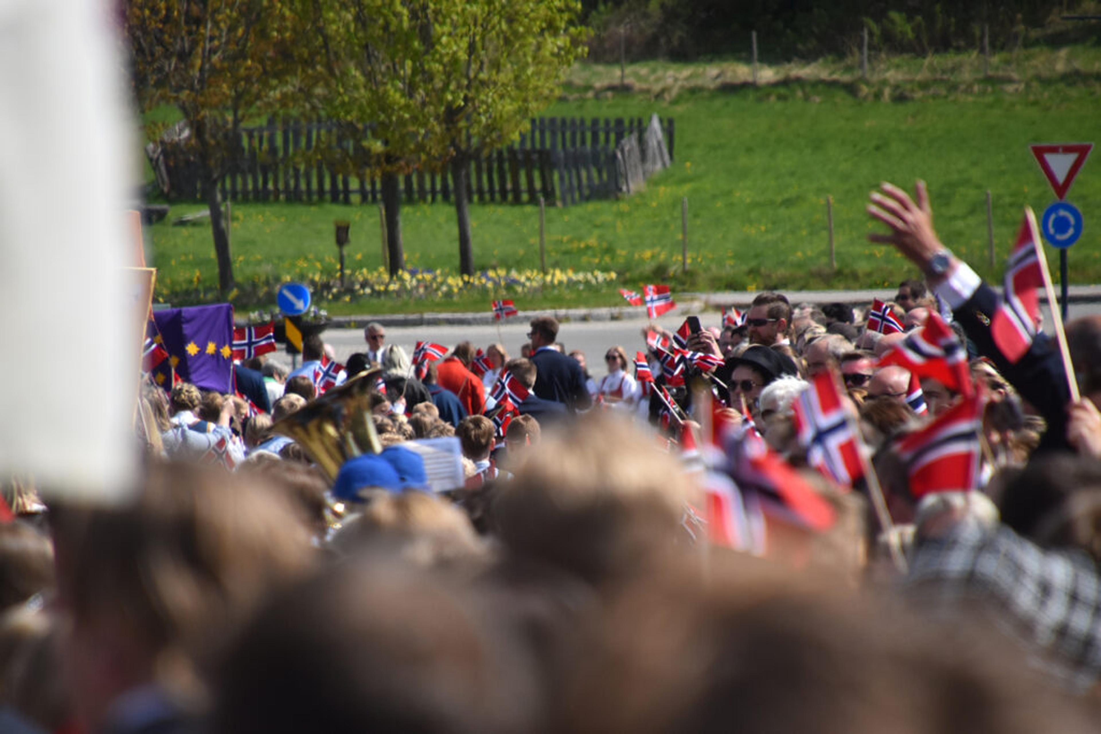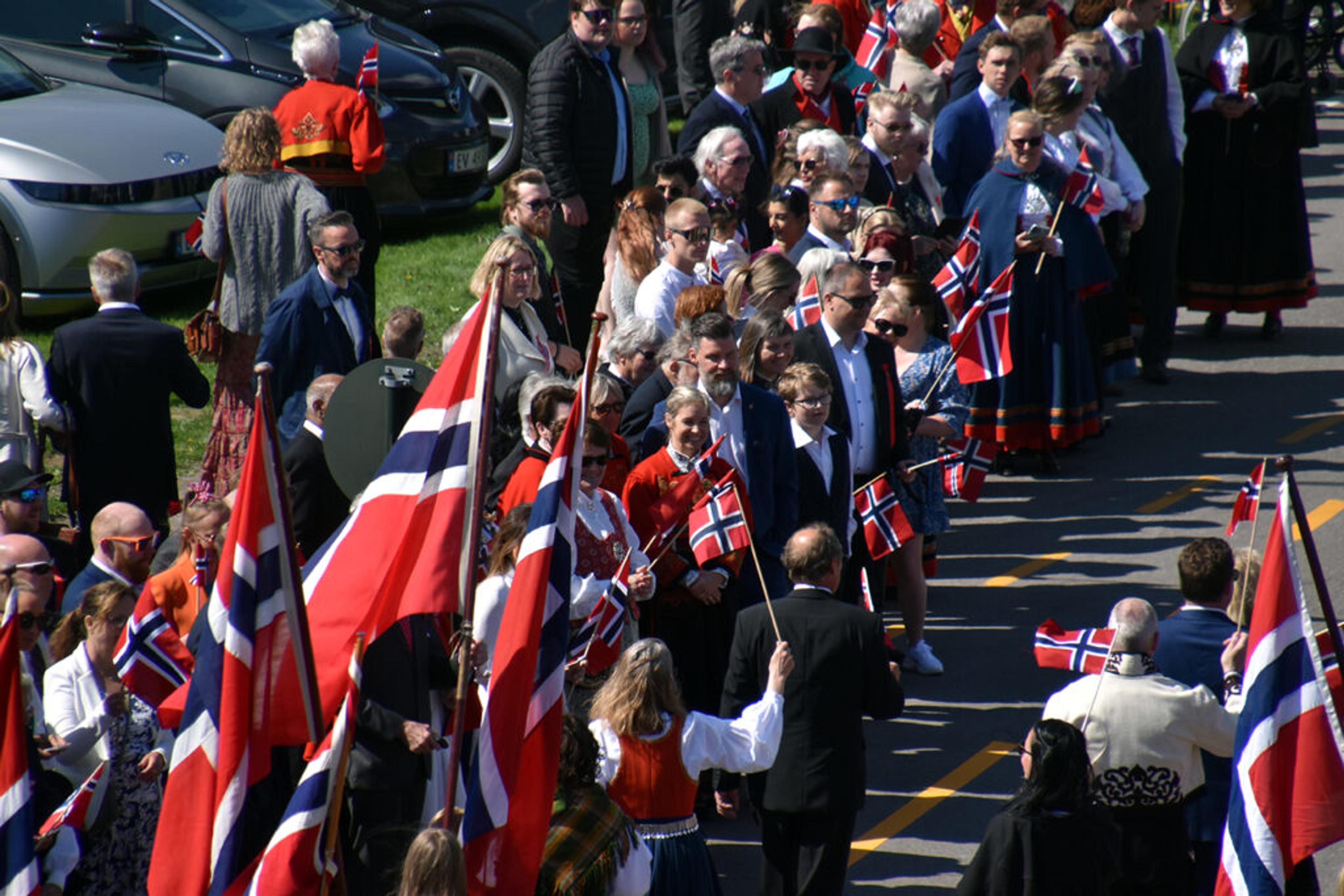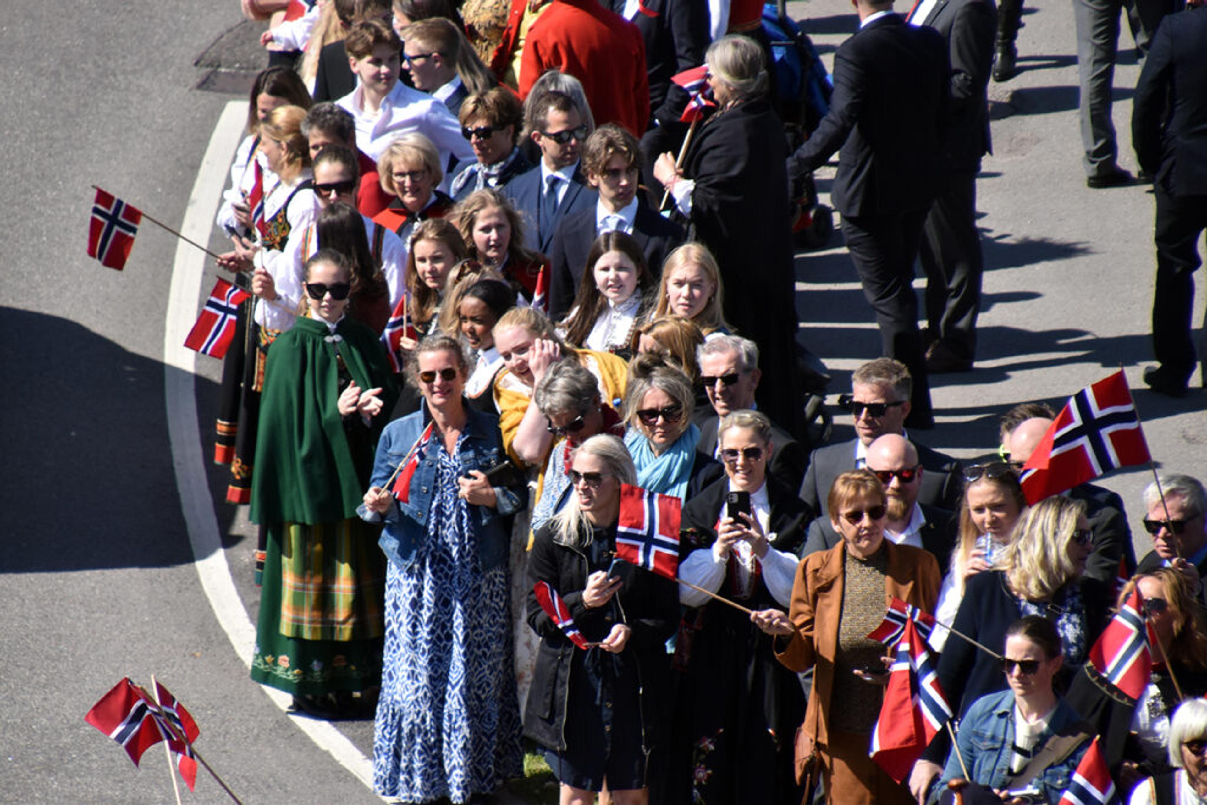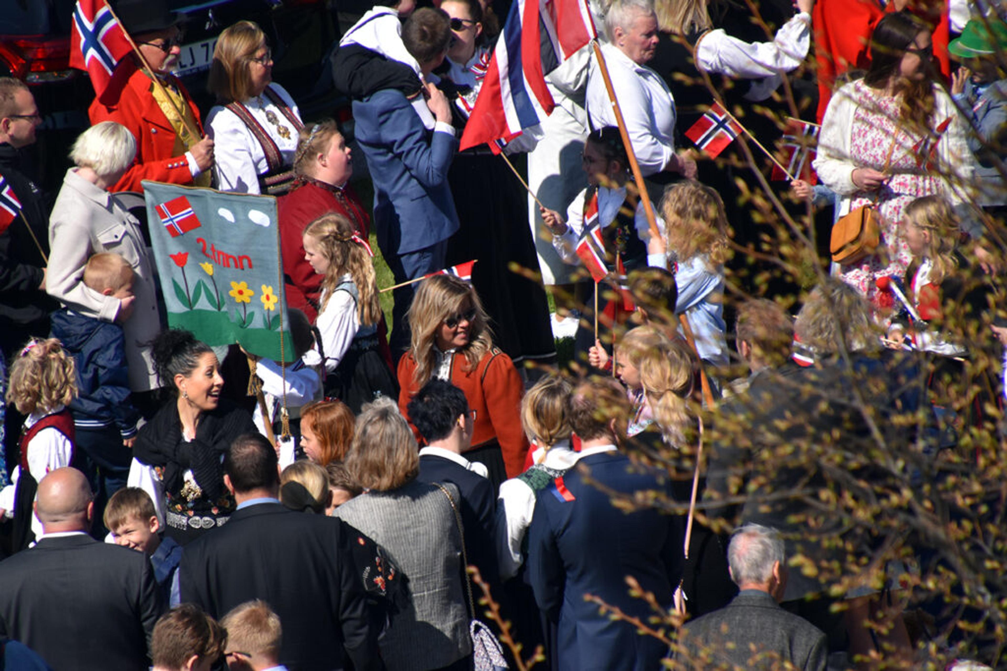SKIMTER TOGET: En stor ansamling med folk langs hele 17. mai-tog-ruta Revetal rundt. Foto: Stian Ormestad, ReAvisa.