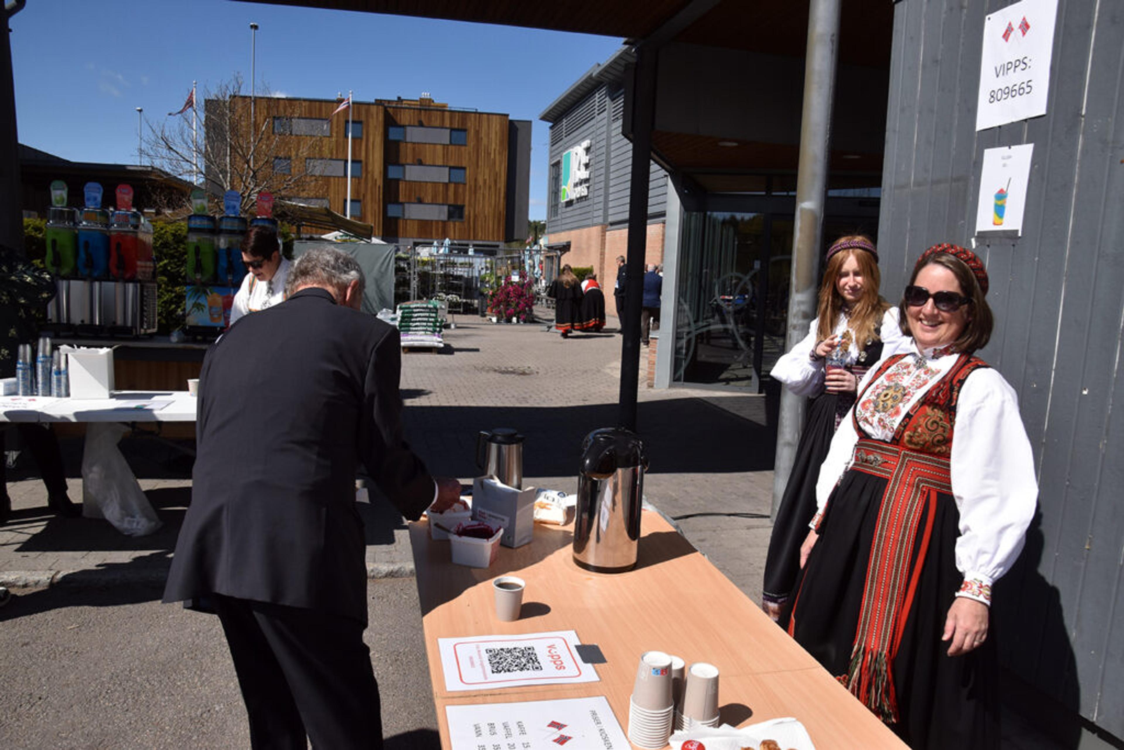KIOSKEN ER ÅPEN! Varm kaffe og iskald is, vipps så blir det noen kroner i kassa til korpset. Foto: Stian Ormestad, ReAvisa.