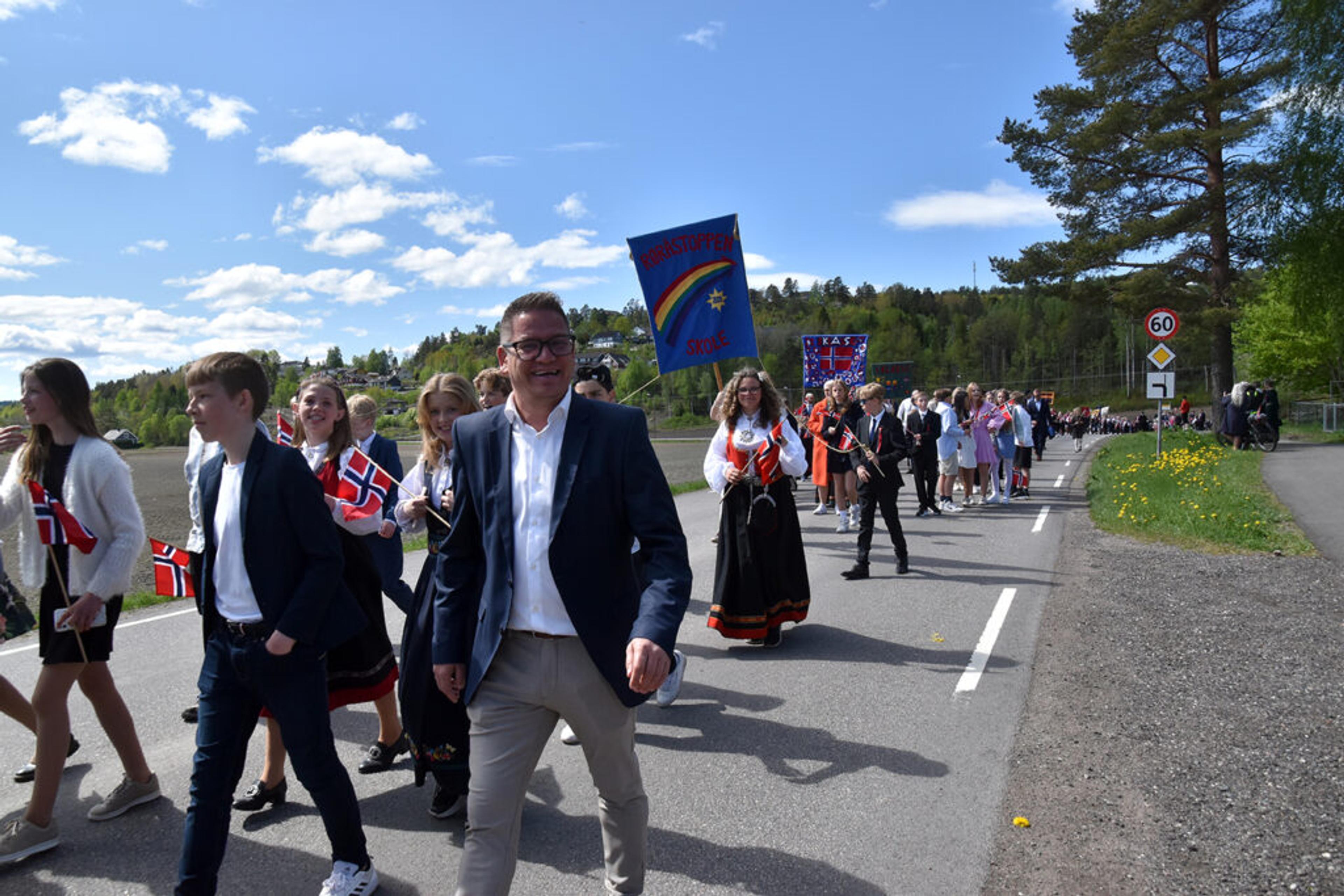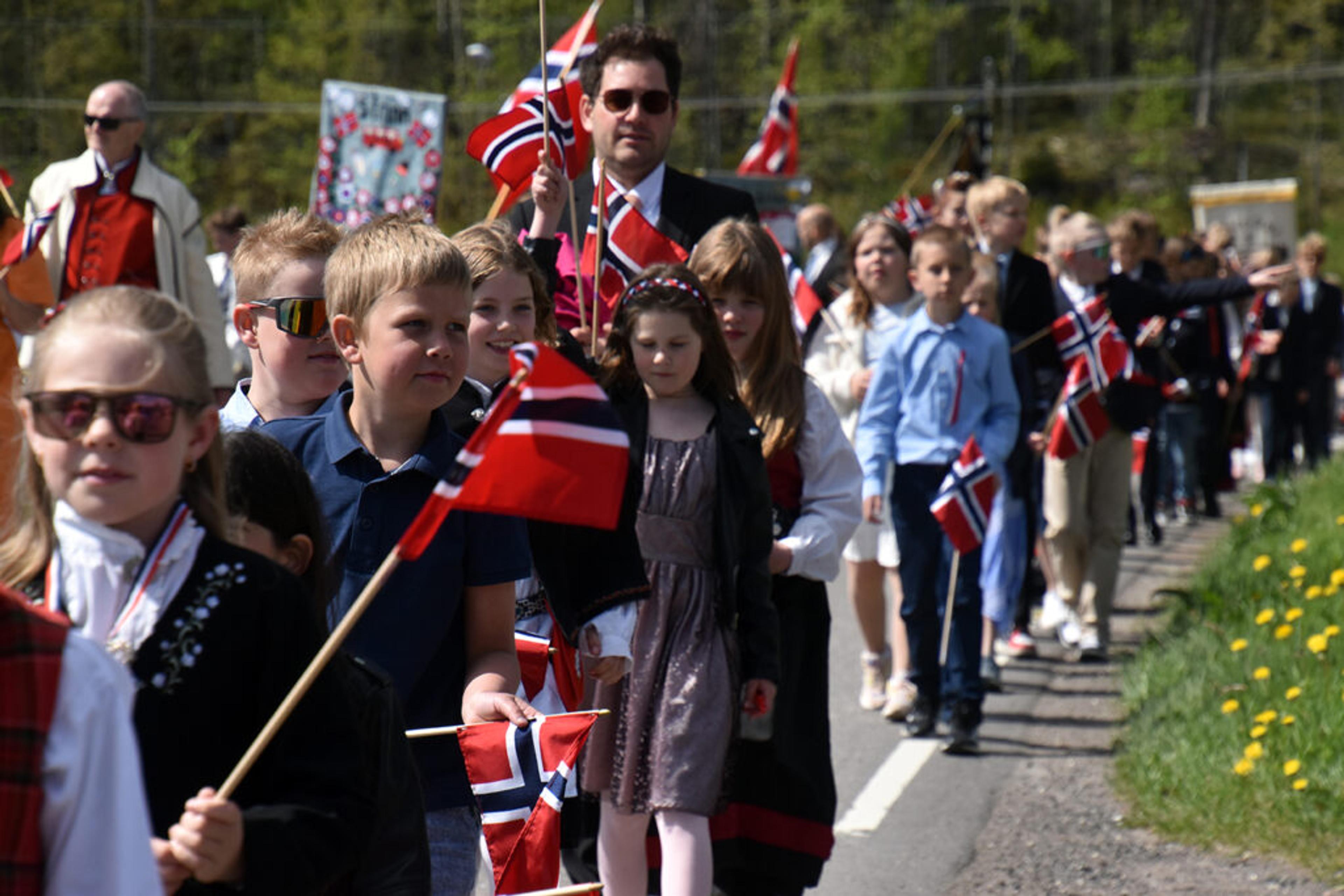 LOVENS LANGE ARM LEDER AN: Det er litt av en logistikk som skal til, når hele Re samles til et fantastisk stort og flott 17. mai-tog på Revetal. Foto: Stian Ormestad, ReAvisa.