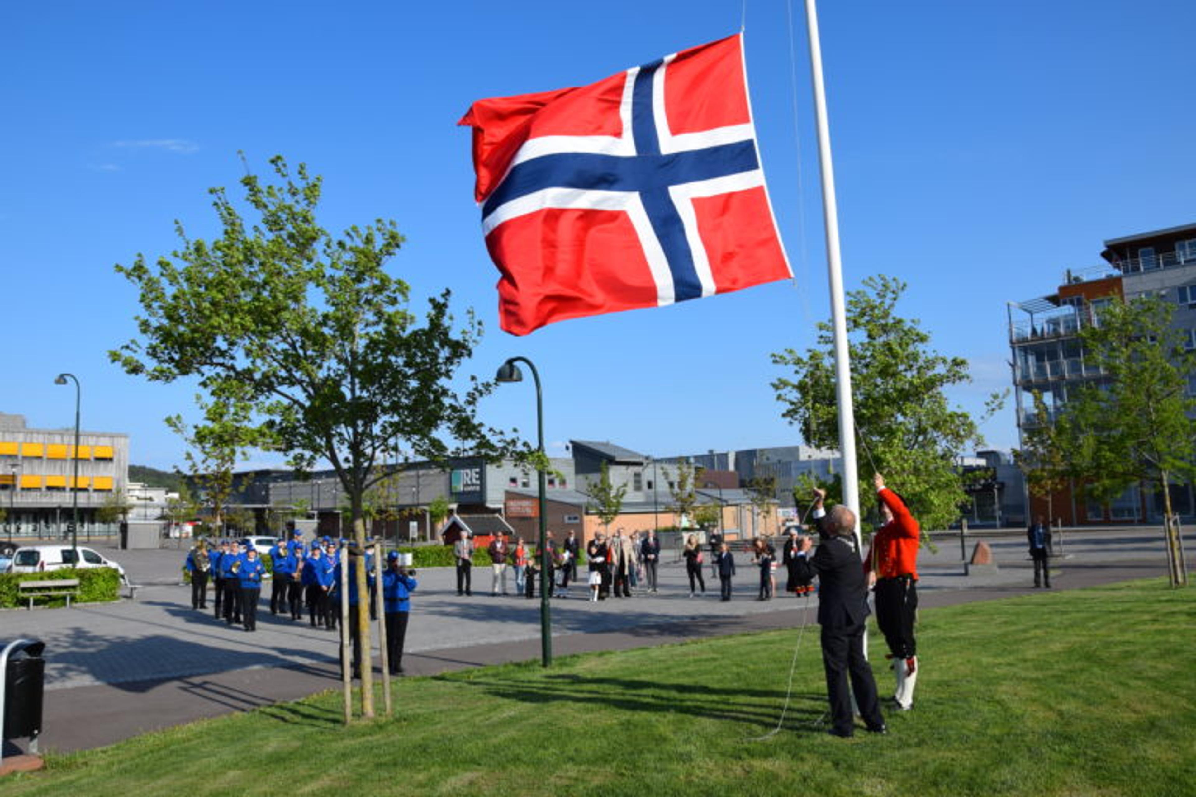 FØRST PÅ PROGRAMMET: Som vanlig blir det flaggheising i Revetalparken klokka 08.00 på 17. mai-morgen. Arkivfoto: Håkon Westby.