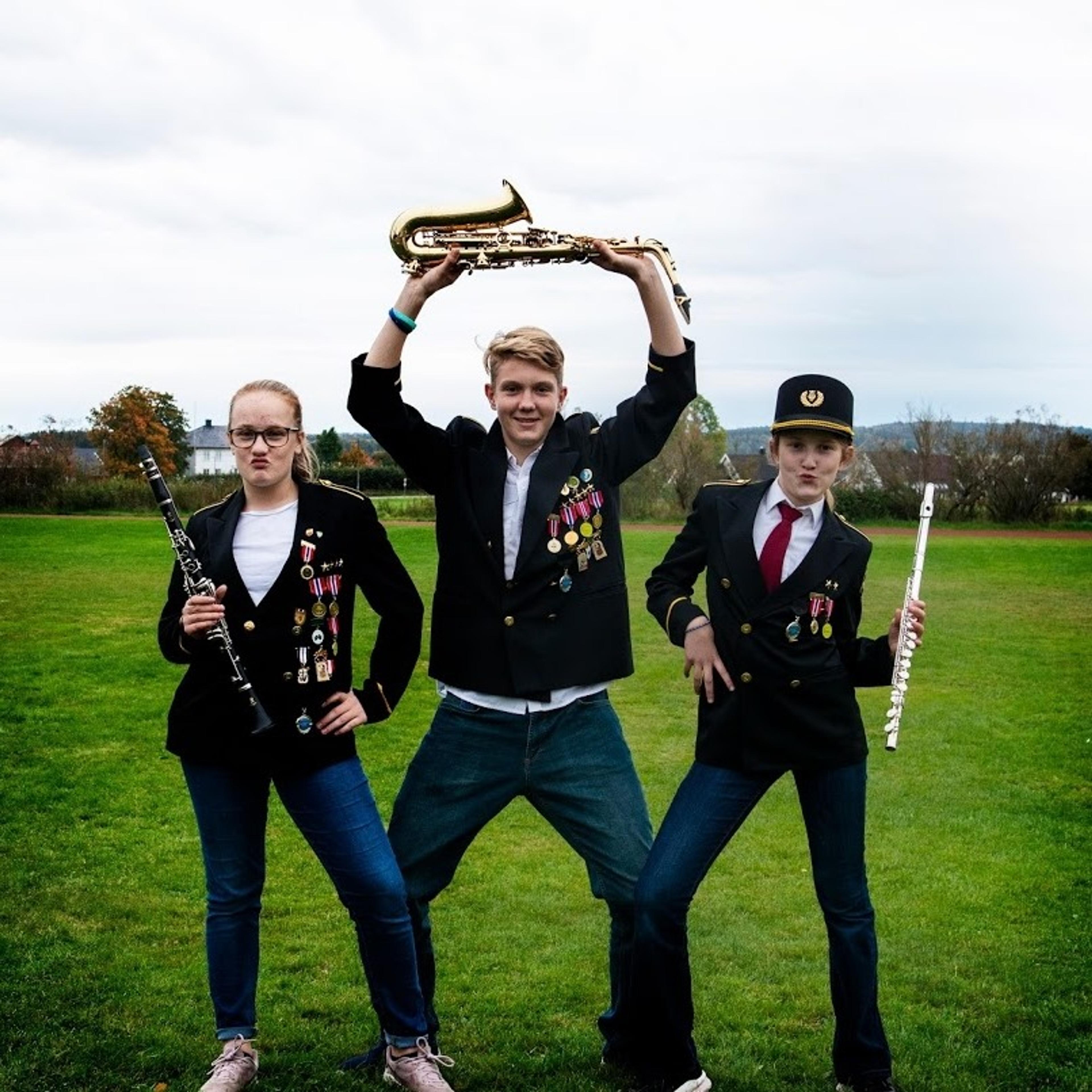 KLARE! Ramnes og Røråstoppen skolekorps oser av spillelyst, og har en tilpassa plan klar for 17. mai-feiring i korona-tid. Foto: Privat.