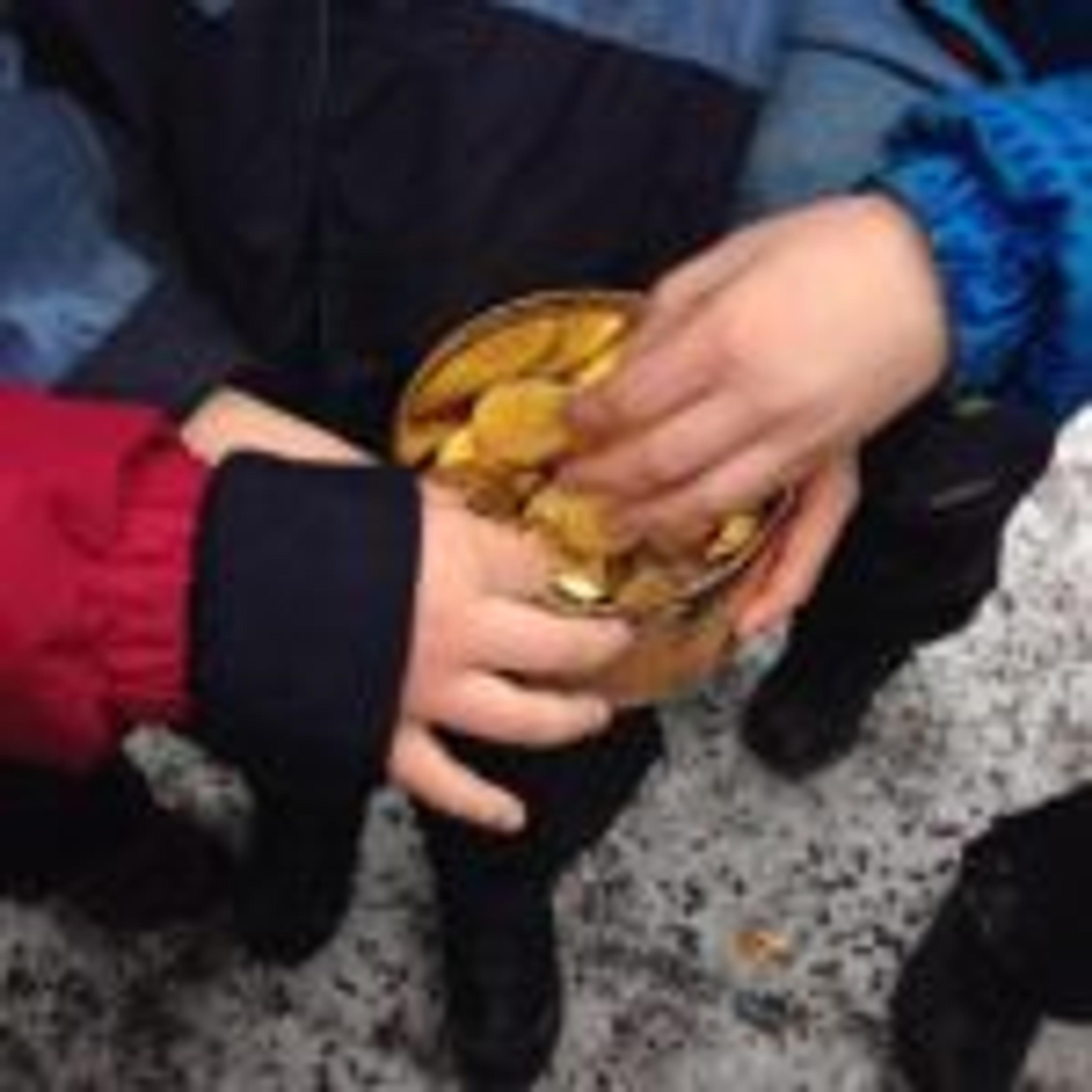 GULLMYNTER: På vei hjem fra Revetal hadde lærerne lagt inn en skattejakt. Foto: Privat.