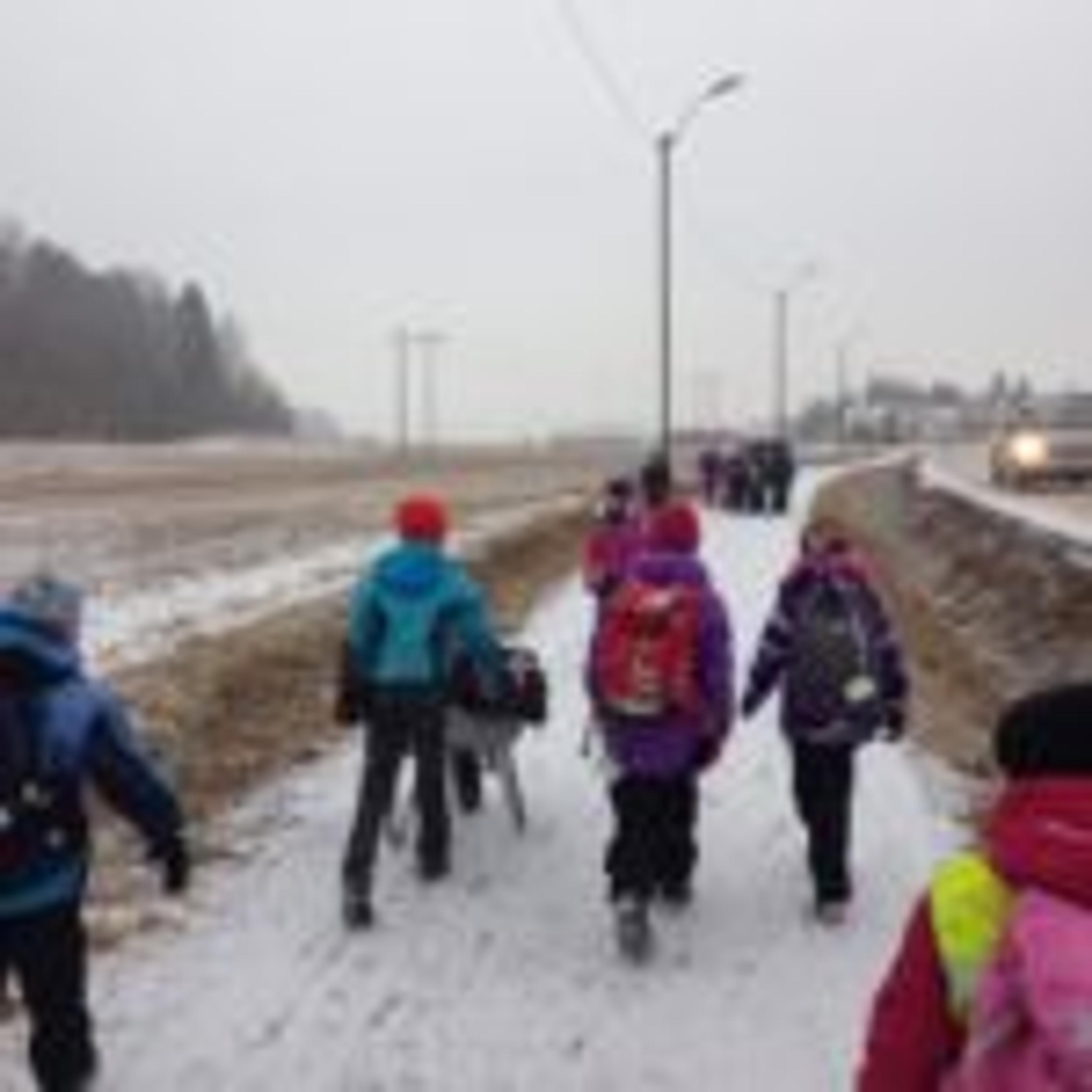 3. klassingene gikk sju kilometer med klassekameraten i trillebåra: – Tøffe unger på landet, altså!