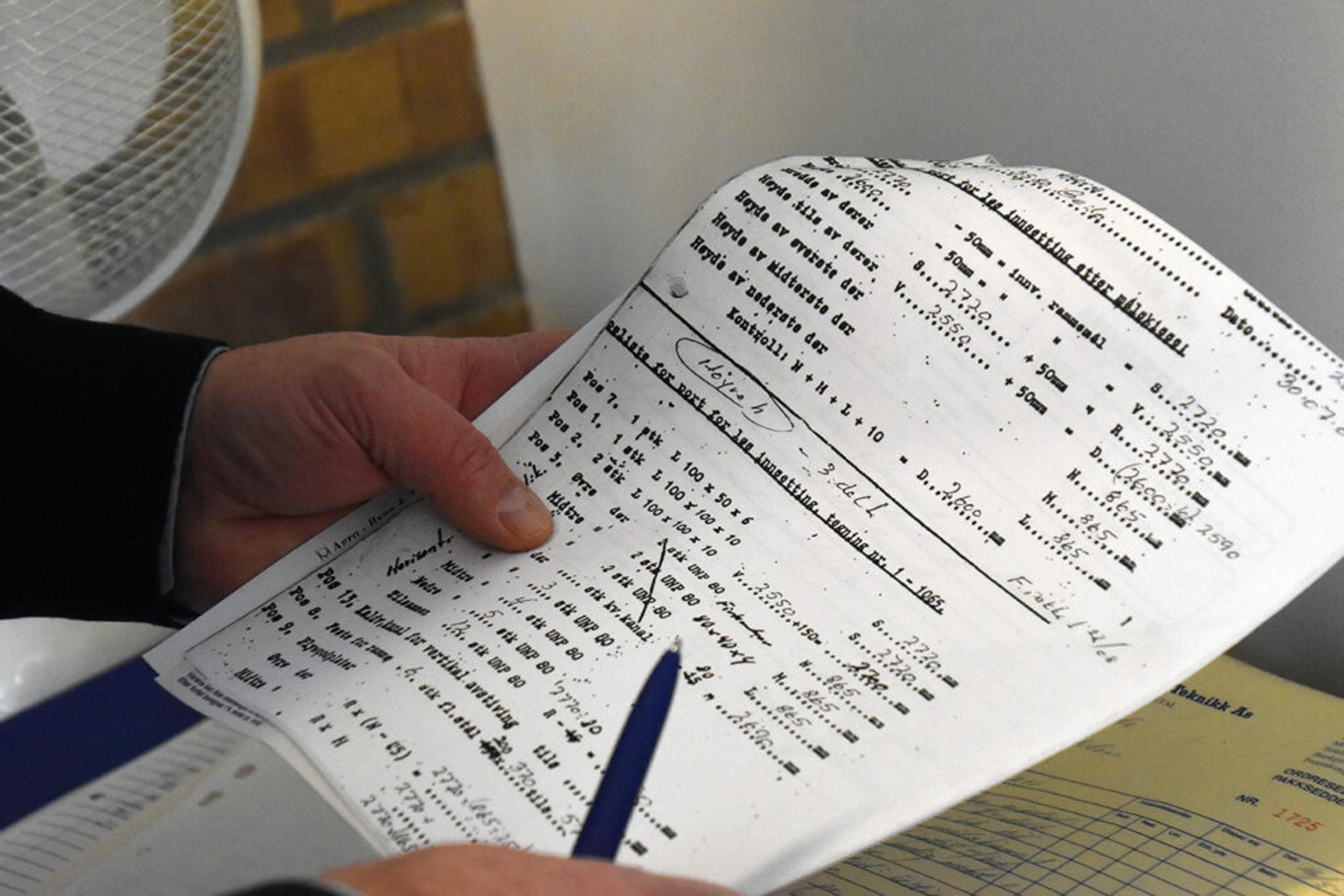 – Da finner vi spesifiksasjonene her, sier Geir og viser stolt fram det store arkivet som spenner mer enn 40 år tilbake.