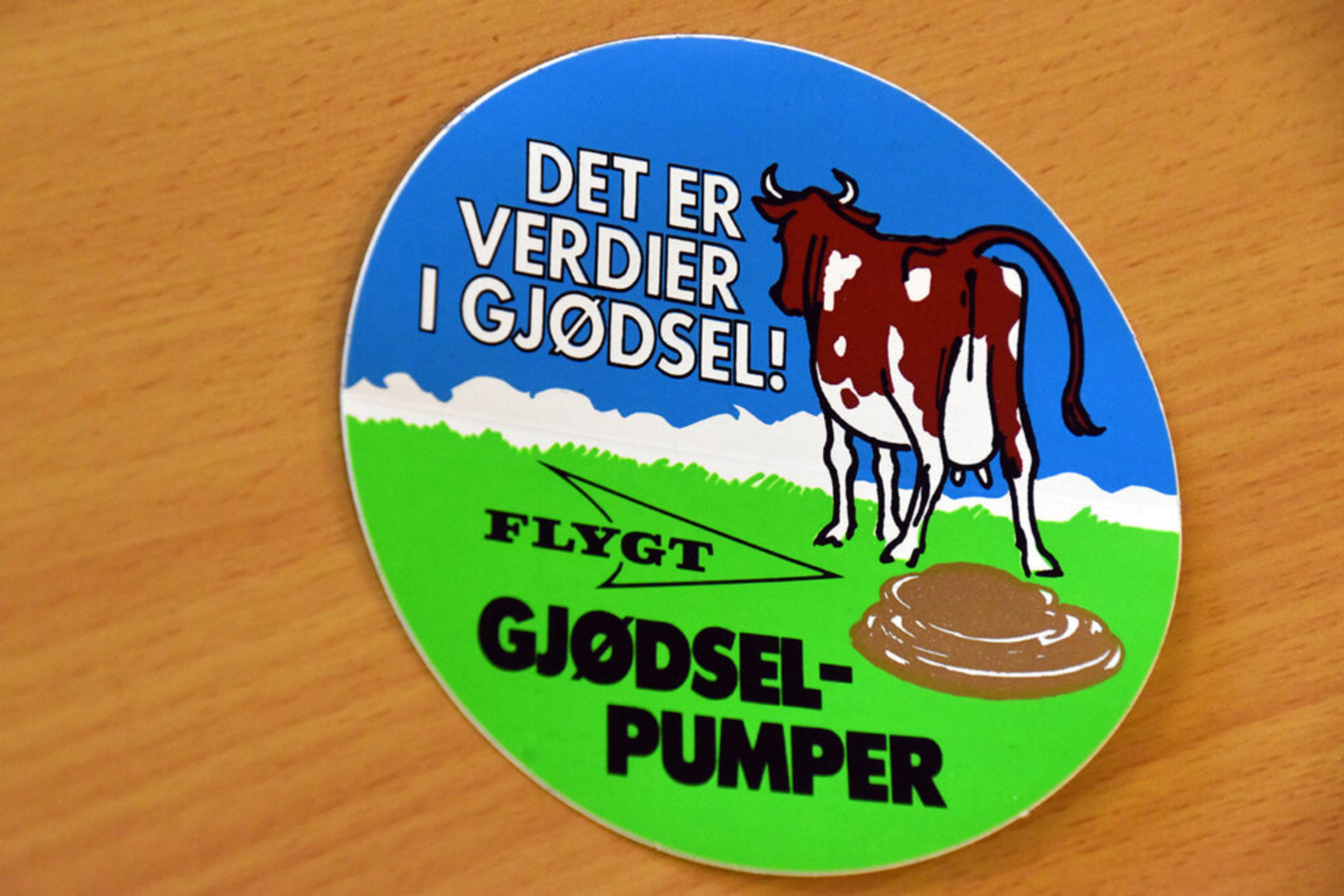EN SELVFØLGE I DAG: Dette klistremerke ble nok laga i ei tidligere tid, da mange ikke var like bevisst på verdien av møkka, forteller Geir. Foto: Stian Ormestad, ReAvisa.