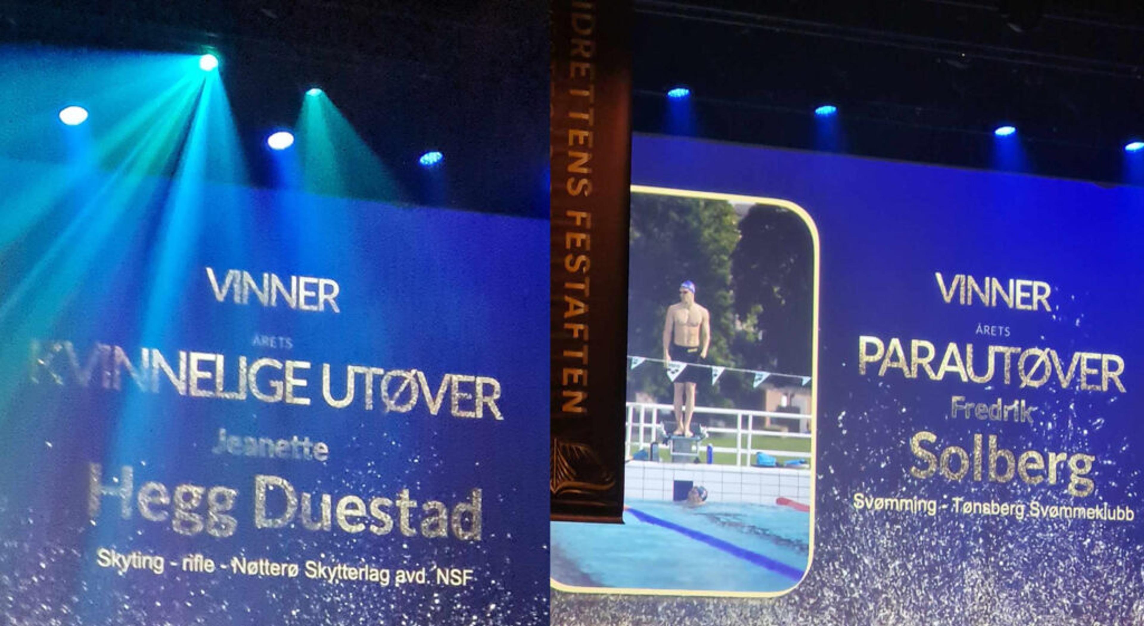 TRE PRISER TIL RE: I tillegg til hederstegn til Alfred Ringdal, ble Jeanette Hegg Duestad utropt til årets kvinnelige utøver og Fredrik Solberg til årets parautøver. Foto: Bernhard Marti, Ramnes IF.