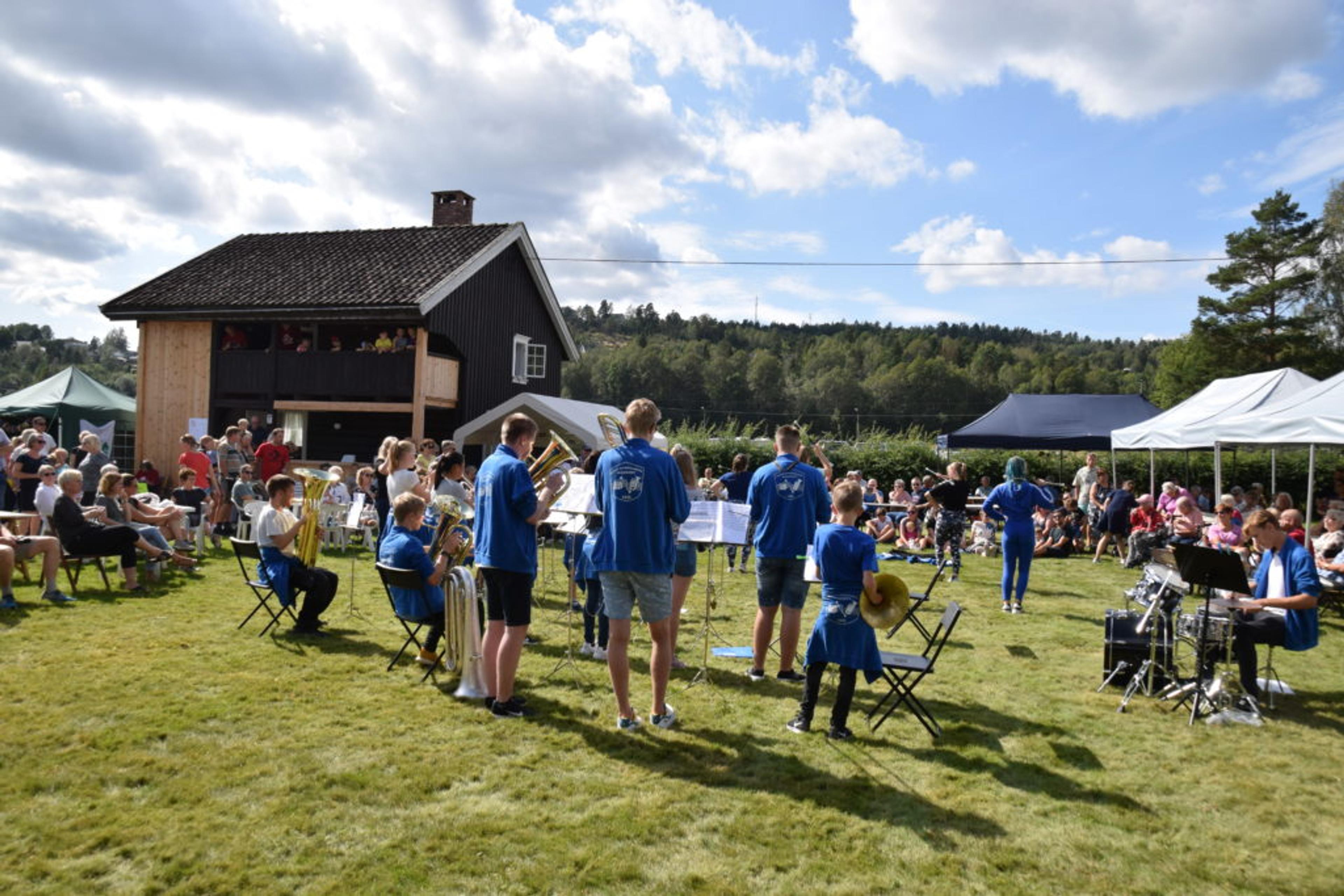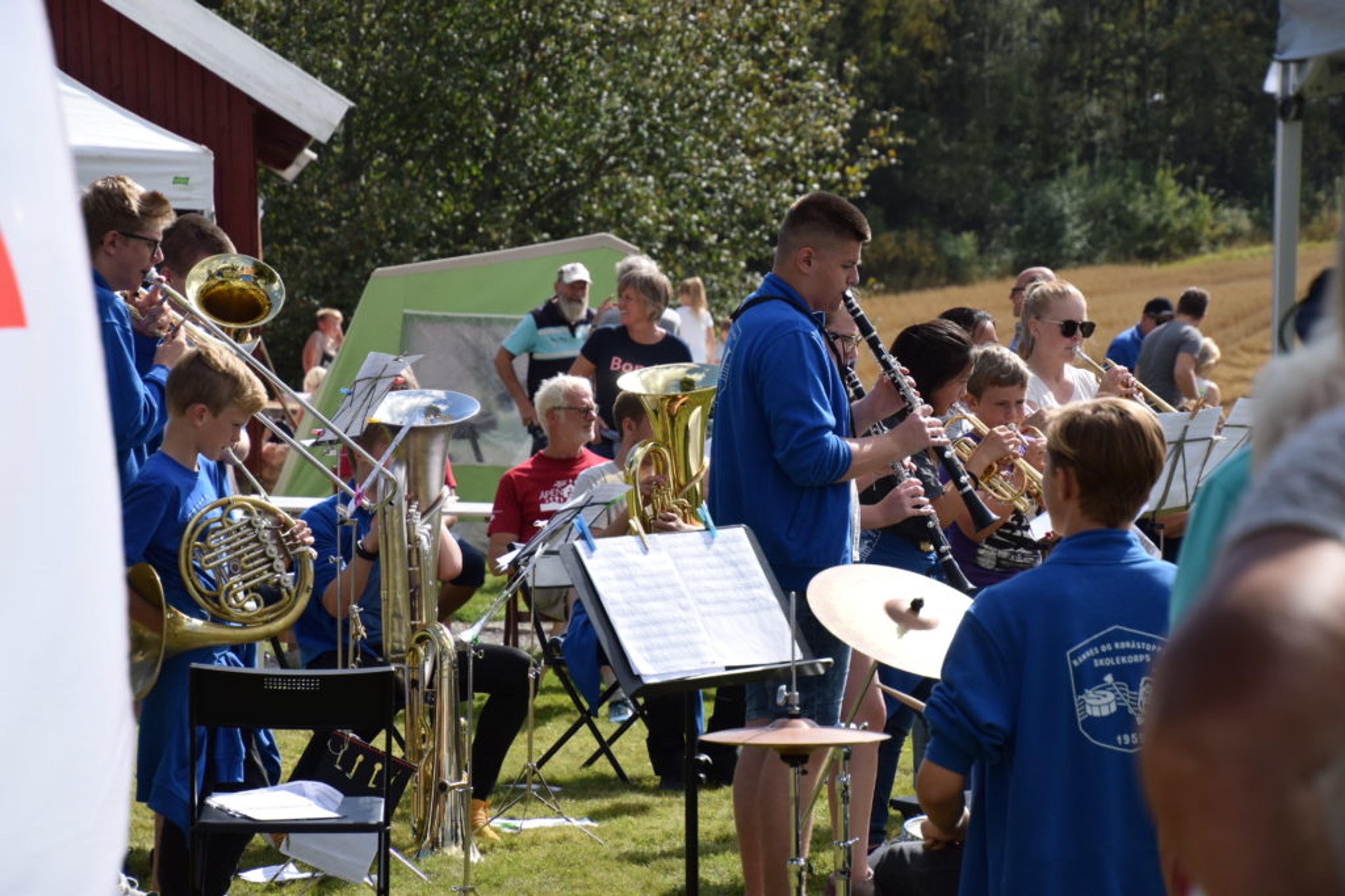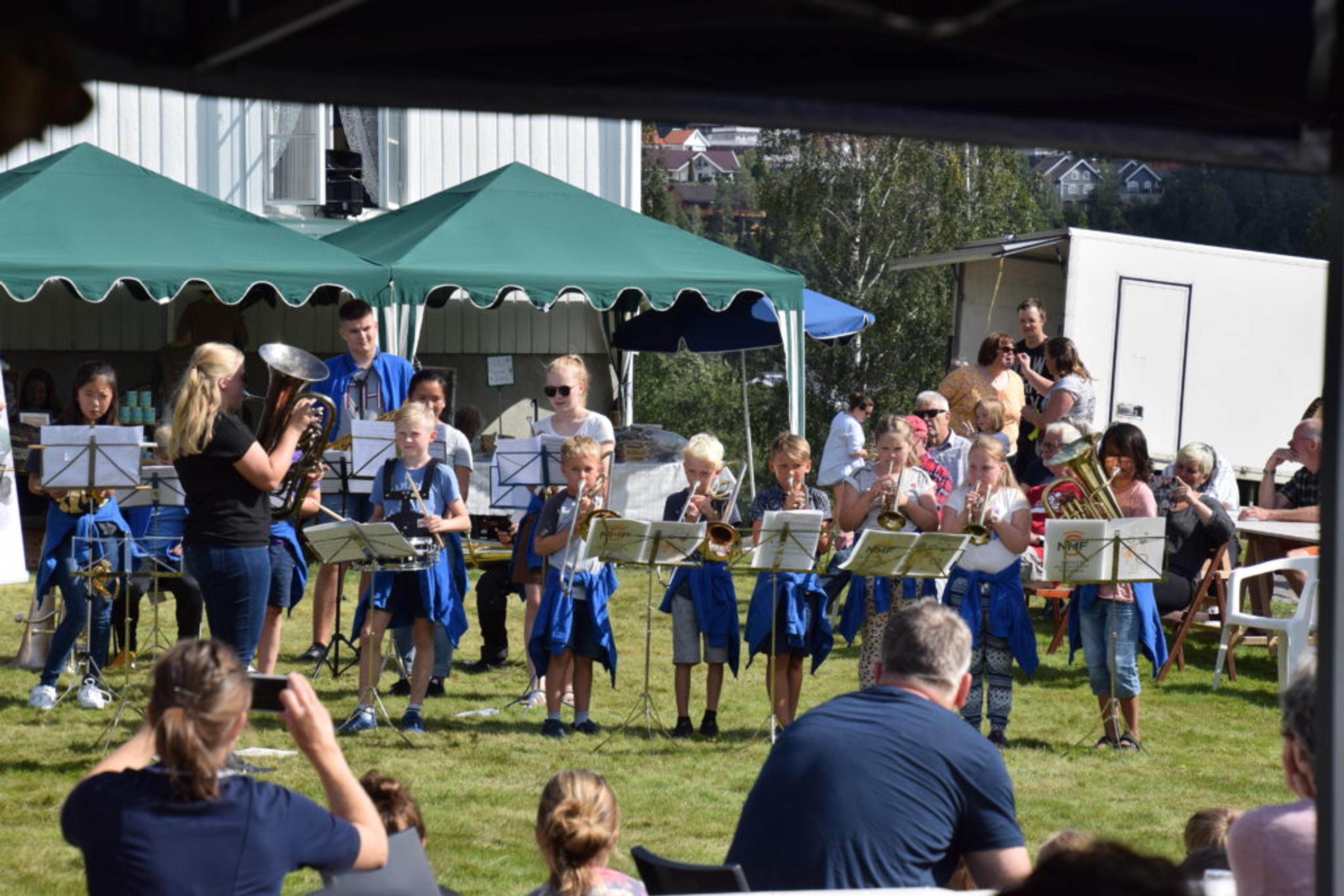 KORPSMUSIKK: Ramnes og Røråstoppen musikkorps både spilte og lot alle interesserte prøve instrumenter. Foto: Stian Ormestad.