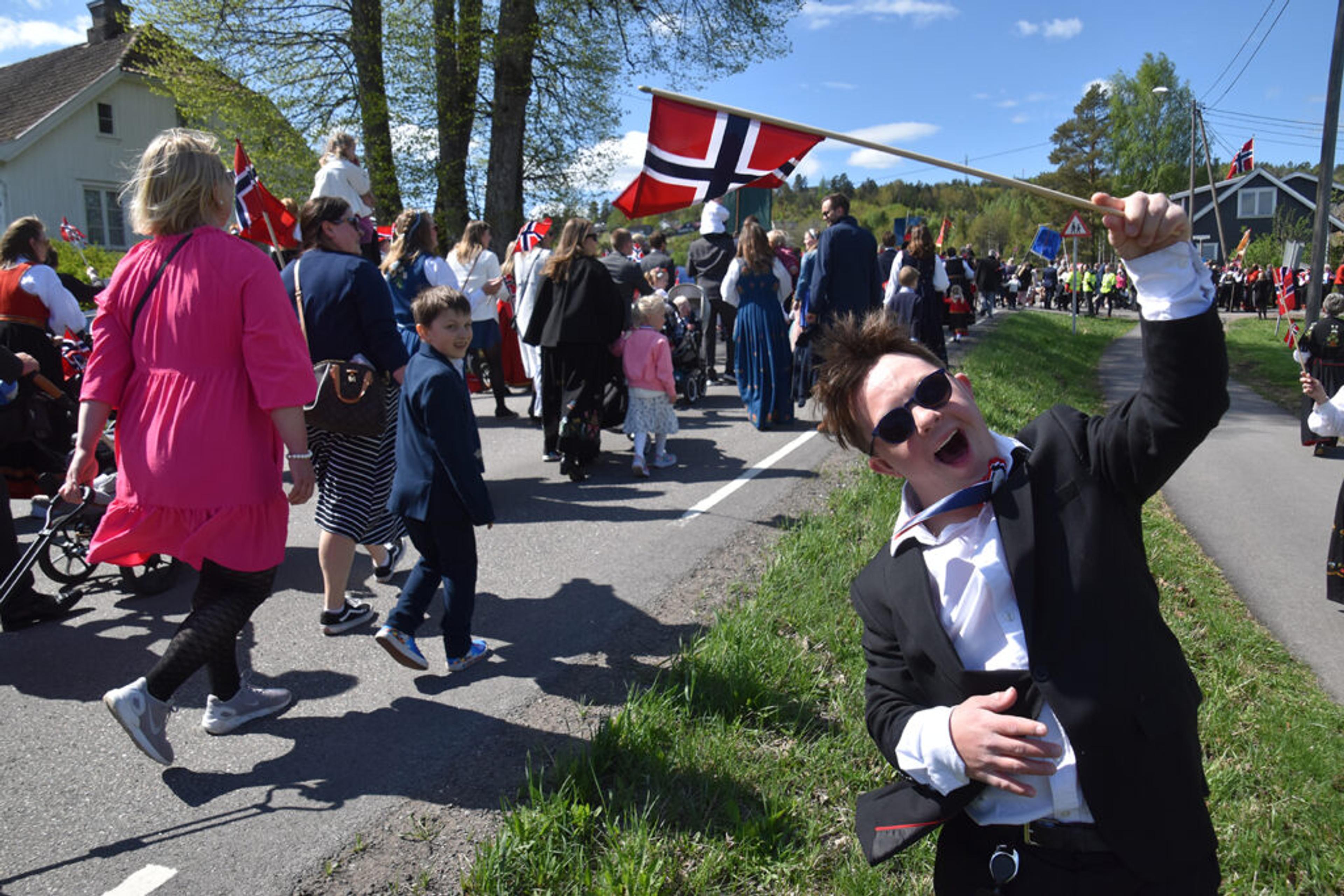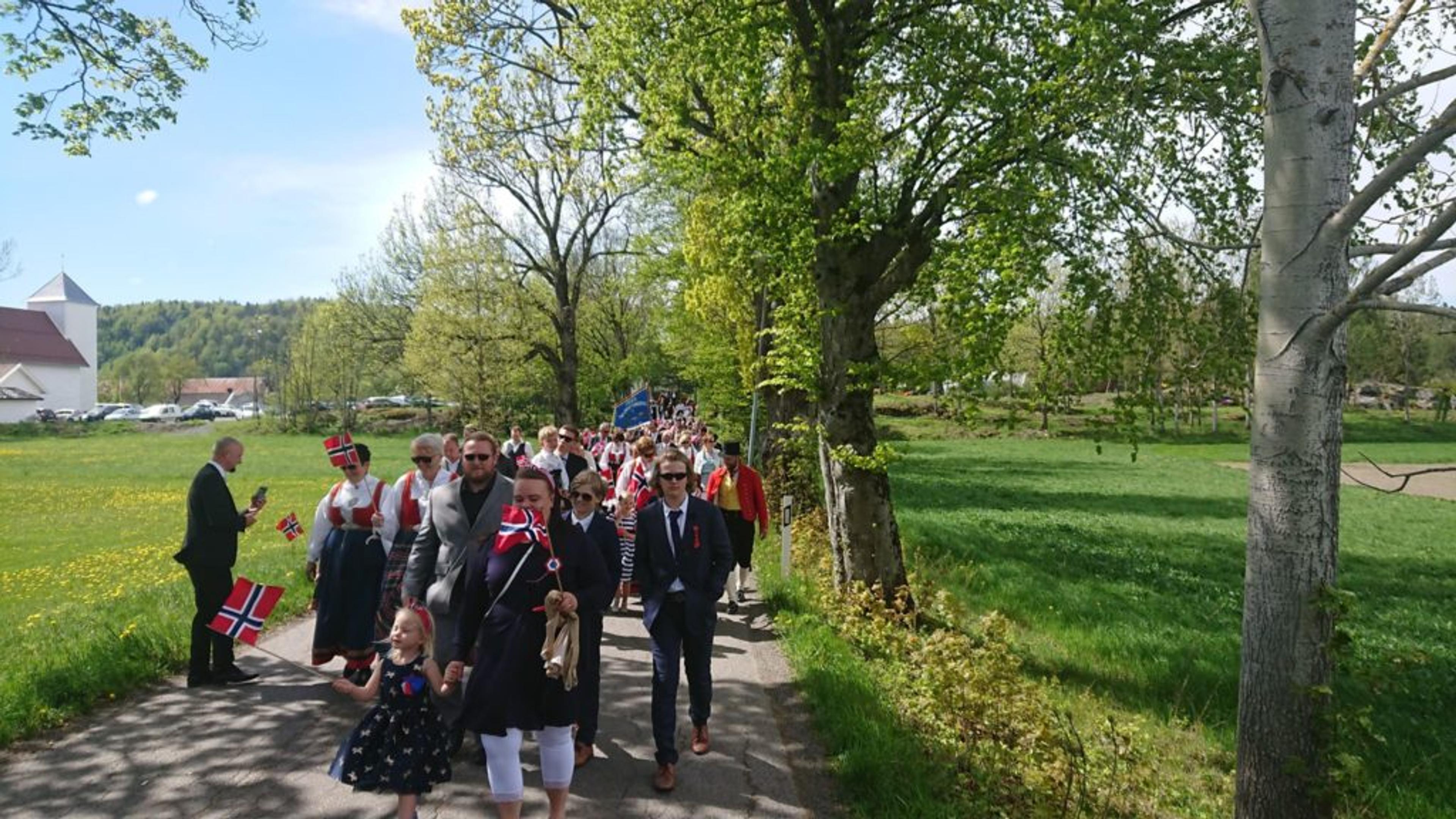 HIPP HURRA! Det er fem år siden hele Re ble samla til ett 17. mai-tog for hele bygda. Etterpå er det leker og underholdning rundt om i grendene. Foto: Stian Ormestad, ReAvisa.