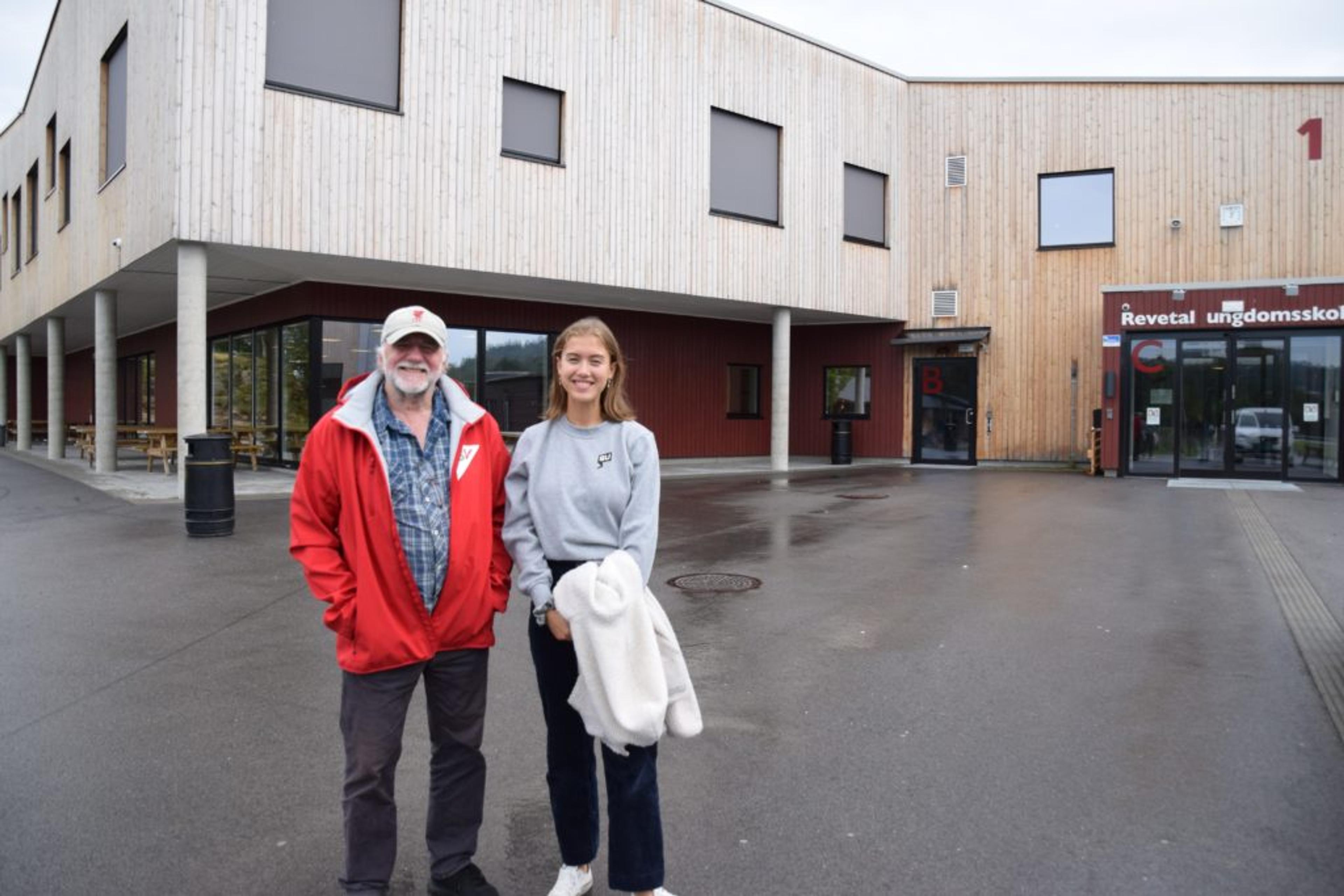 SKVISES UT: SV er ikke med i det gode selskap, men inviteres til samarbeid i sak til sak. Her har SV tatt lokalvalgkampen til Revetal ungdomsskole for å snakke varmt om gratis skolemat. Foto: Stian Ormestad.