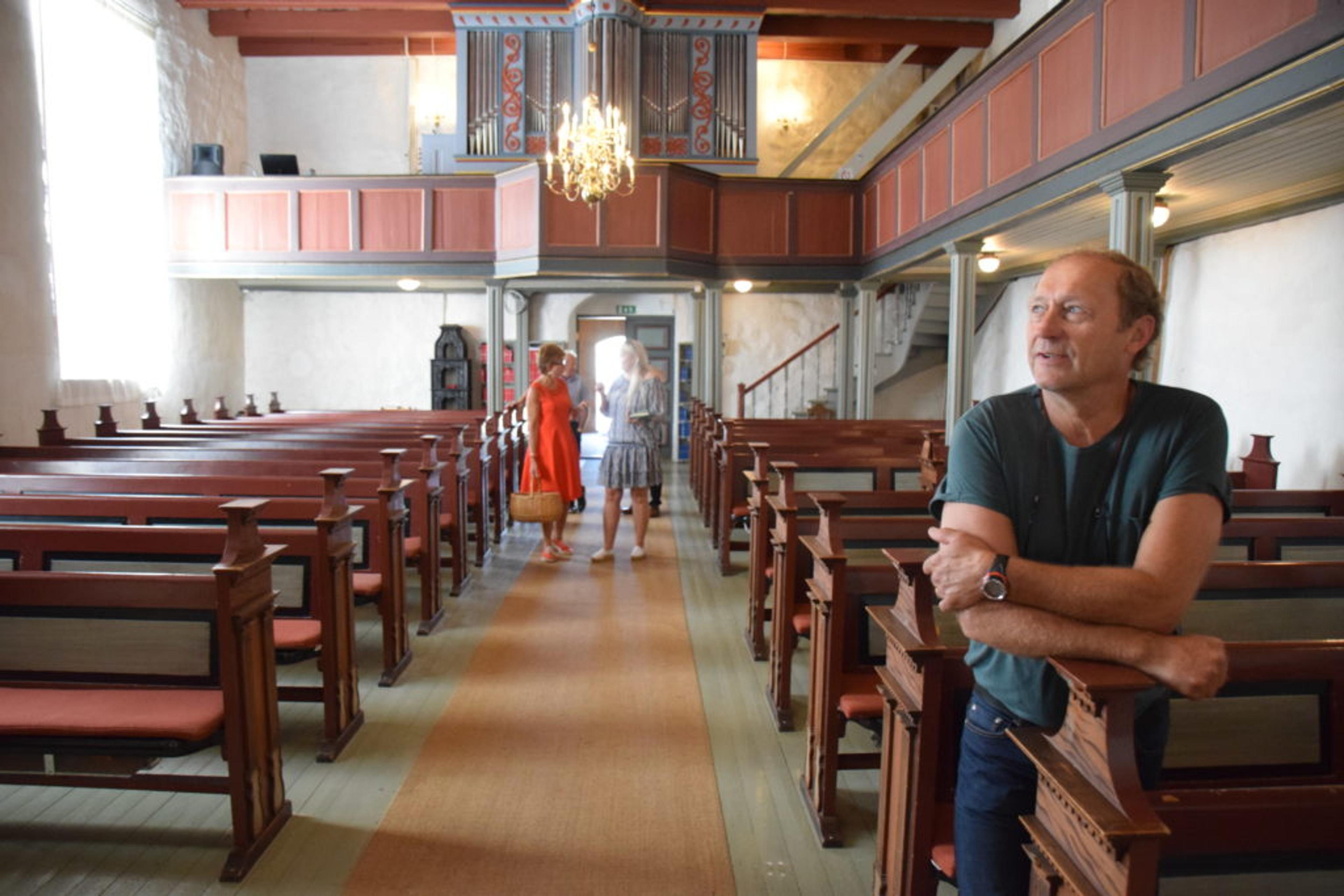 KLOKKEKLAR FRAMGANG: Steinar Solum (Sp) blir varaordfører i nye Tønsberg. Senterpartiet tok valgkampen til Ramnes kirke. Foto: Stian Ormestad.