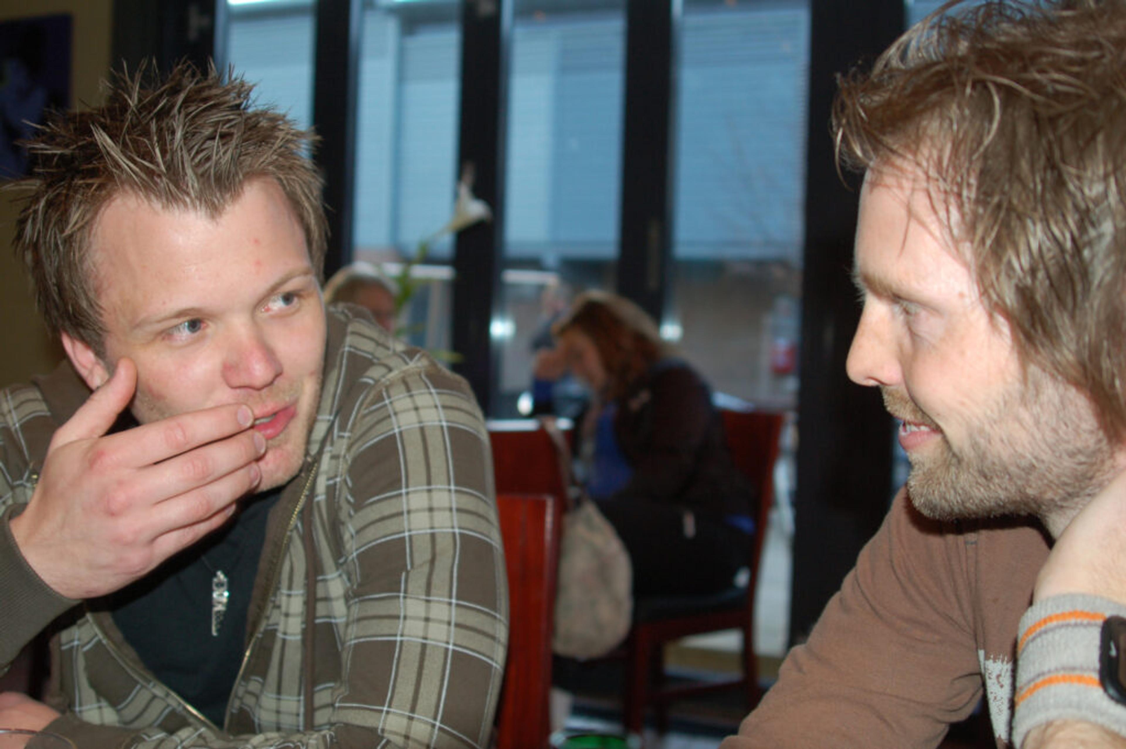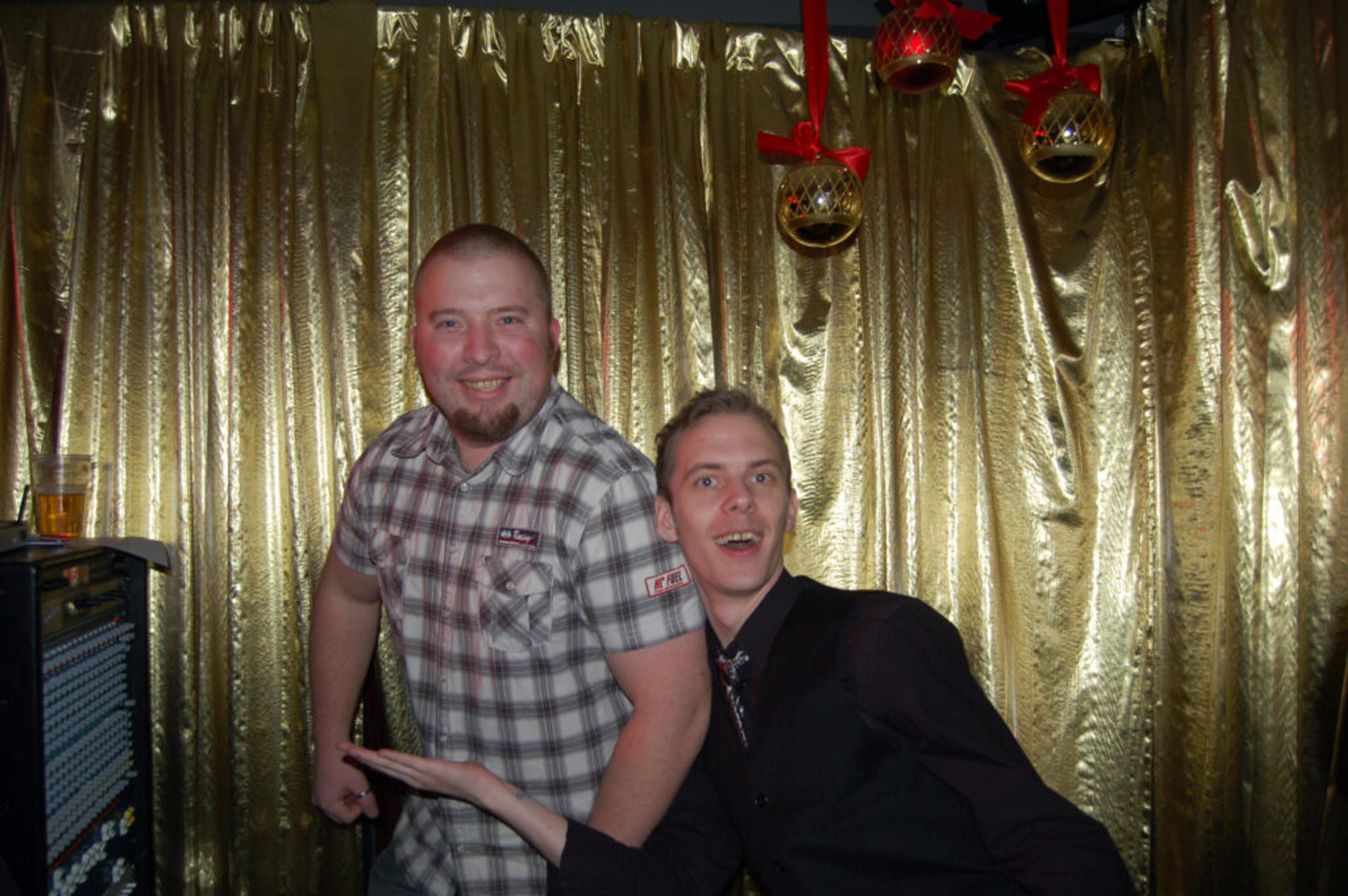 LYDFOLK: Ett par glade musikere hjelper gjerne til bak knotter og spaker på lydutstyret. Vegard Sogn og Kristian Flåten er på plass for å skru lyd. Arkivfoto.