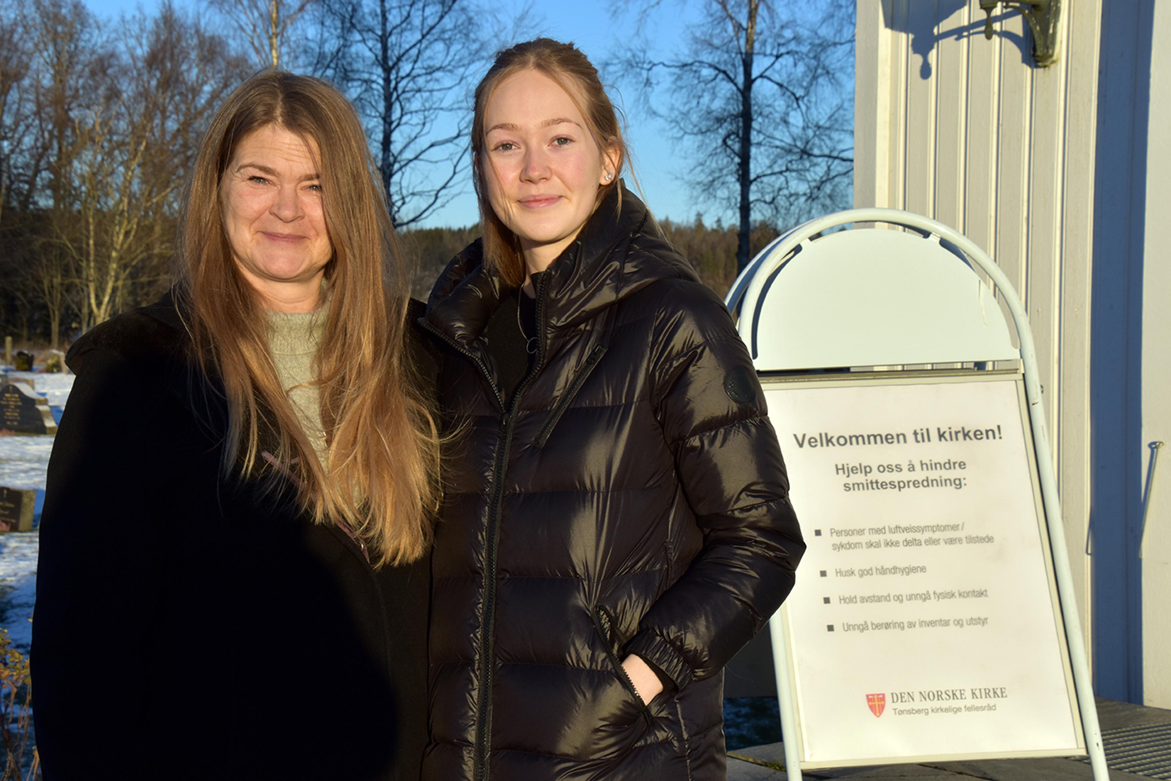 ÅPEN KIRKE: Hege Tysse Bergan og Marthine Bergan tok turen fra Revetal til Undrumsdal kirke på julaften. Foto: Stian Ormestad.