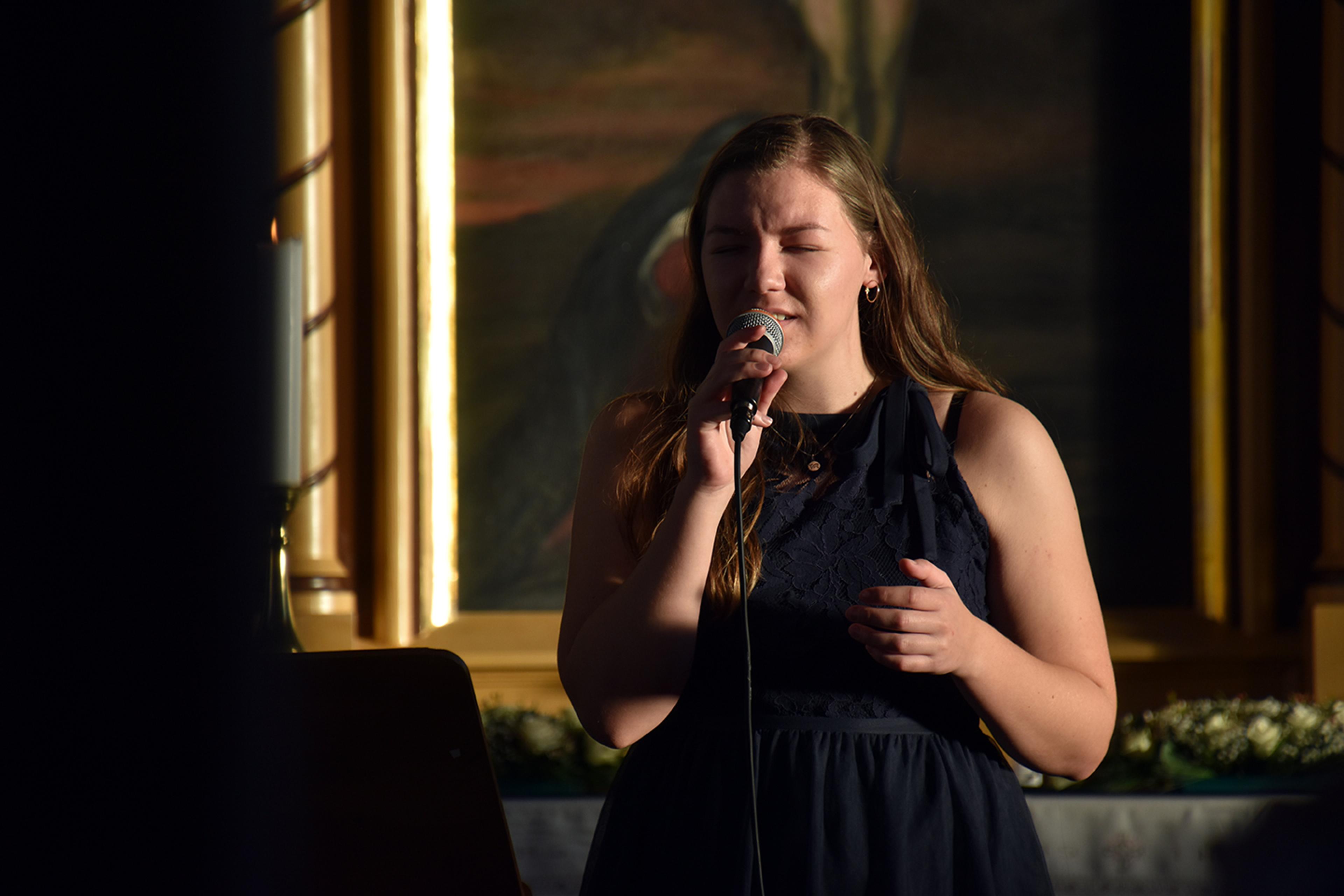 Kantor Truls Gran og sogneprest Ragnhild Christophersen, samt Oda Joberg (solosang)