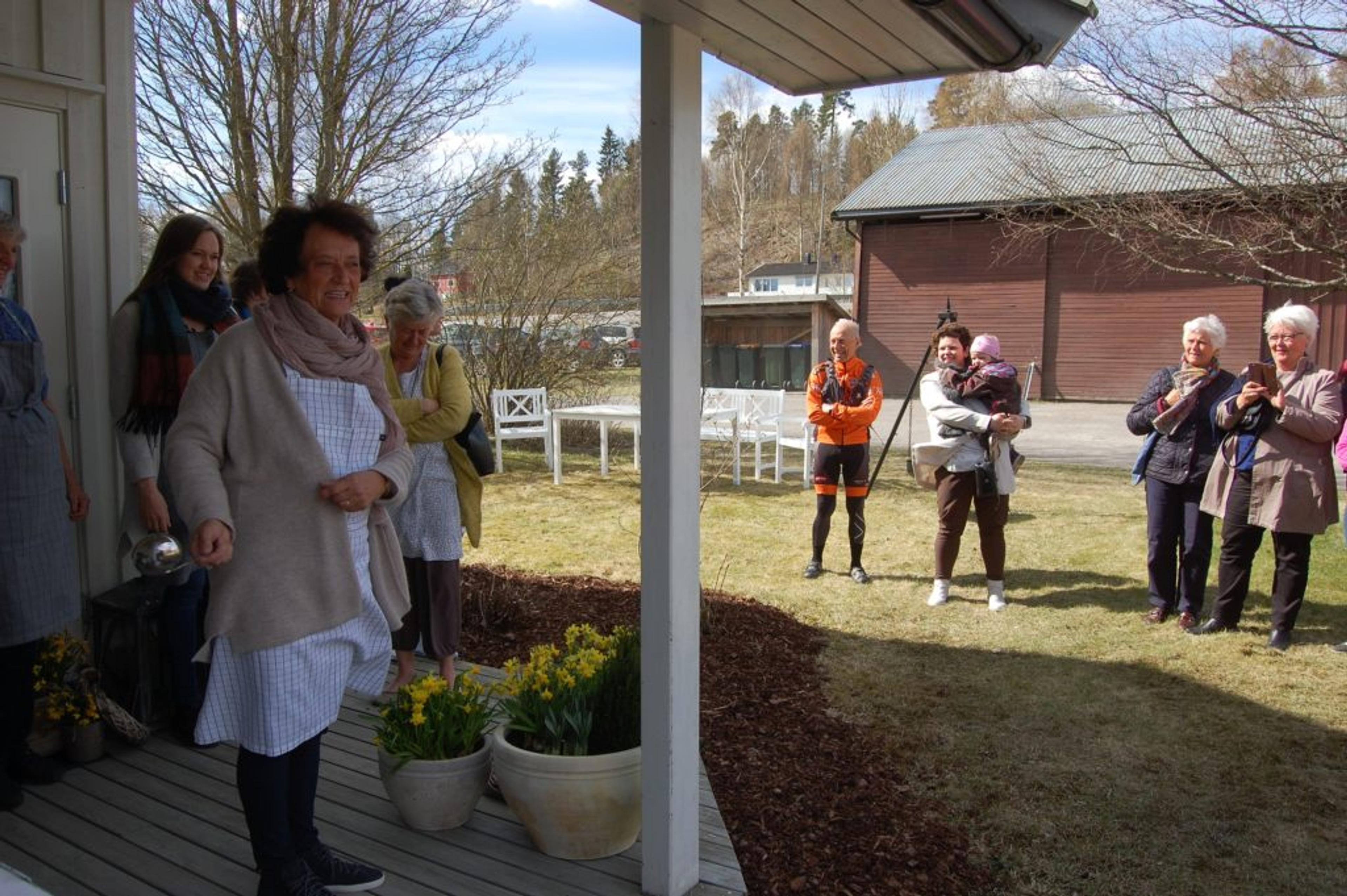 ÅPNER DØRENE: Etter at Vika Landhandel ble lagt ned i 1957 har den vært familien Weum Bue sitt hjem. Nå er deler av gården igjen gjort om til landhandel. Wenche Weum Bue ønsker velkommen til første åpningsdag på 60 år presis klokka 12.00 lørdag 22. april. Foto: Håkon Westby.