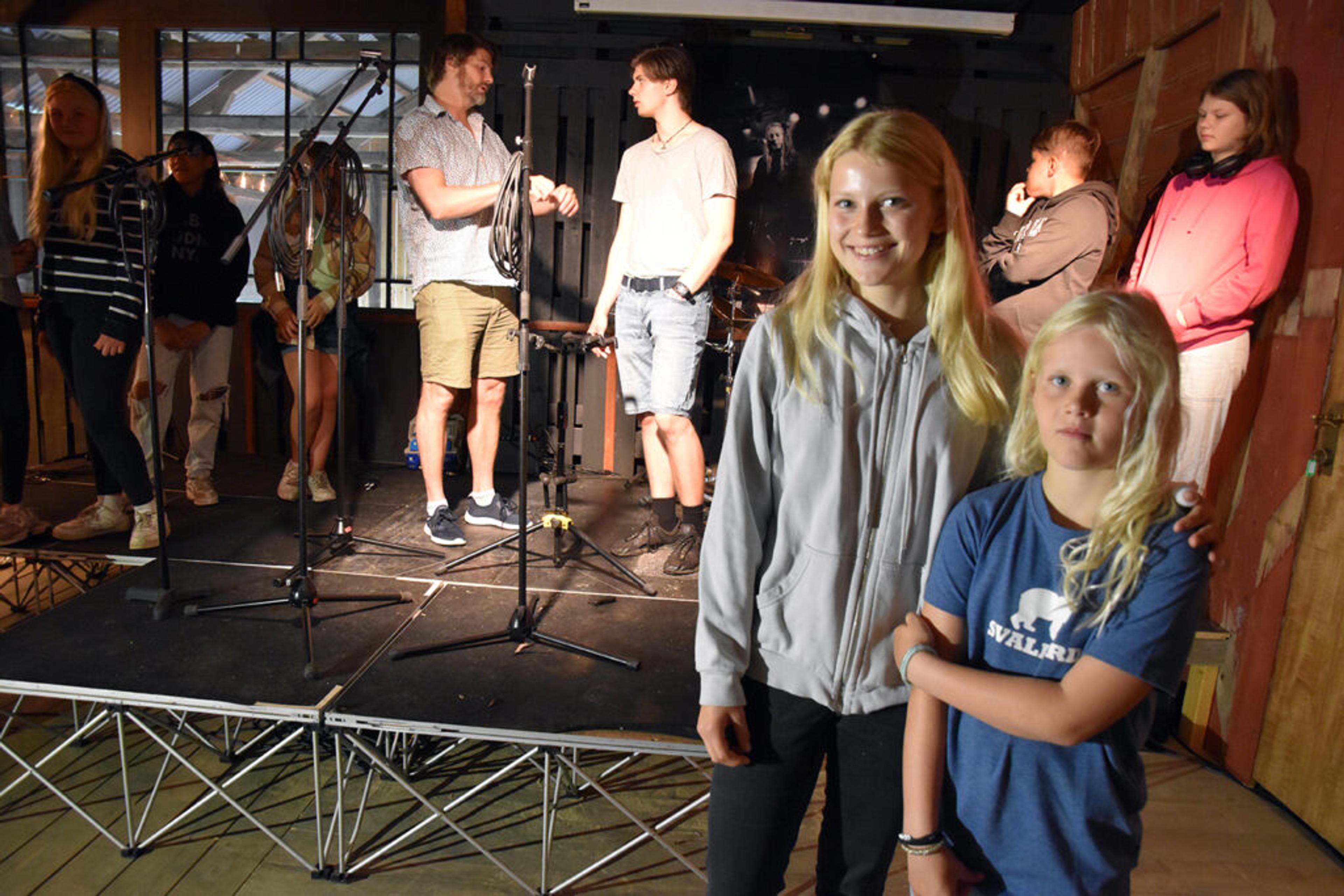 FØRSTE FESTIVAL: Aurora Kalleberg (12) og Maja Larssen Østlie (9) og alle de andre unge talentene har opptrådd før, men aldri på festival, forteller de til ReAvisa. Aurora skal synge en MGP-låt, og Maja skal synge rockelåta Slakt av Raga Rockers. Foto: Stian Ormestad.