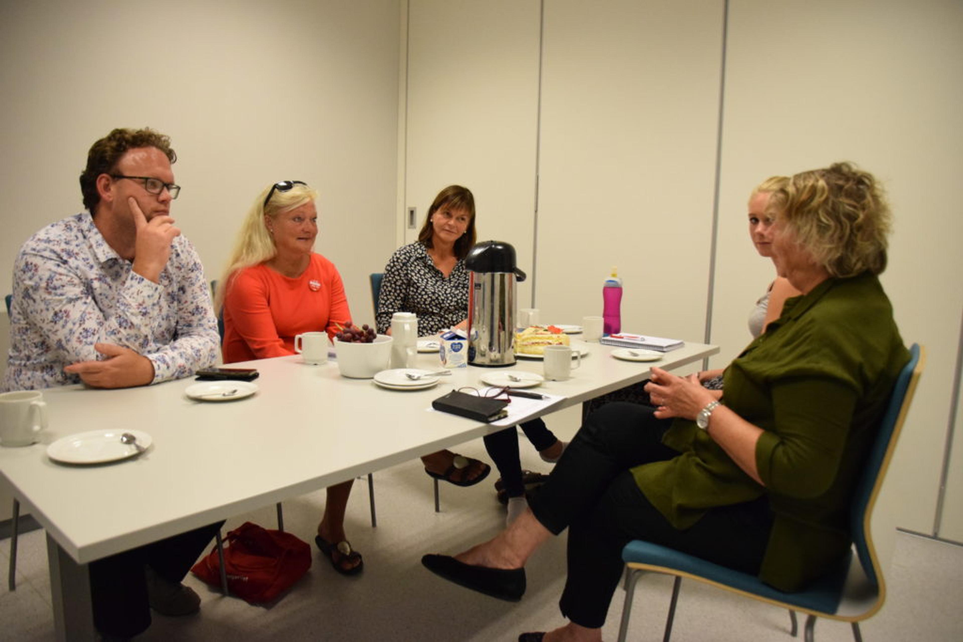 NYTTIG: Arbeiderparti-følget fikk svar på mange spørsmål. Fra venstre Lars Jørgen Ormestad (AP), Anne Rygh Pedersen (AP), styrer Trine Bekkhus, tillitsvalgt Anette Bjelland Skjold, og virksomhetsleder Liv Sigstad. Foto: Stian Ormestad.