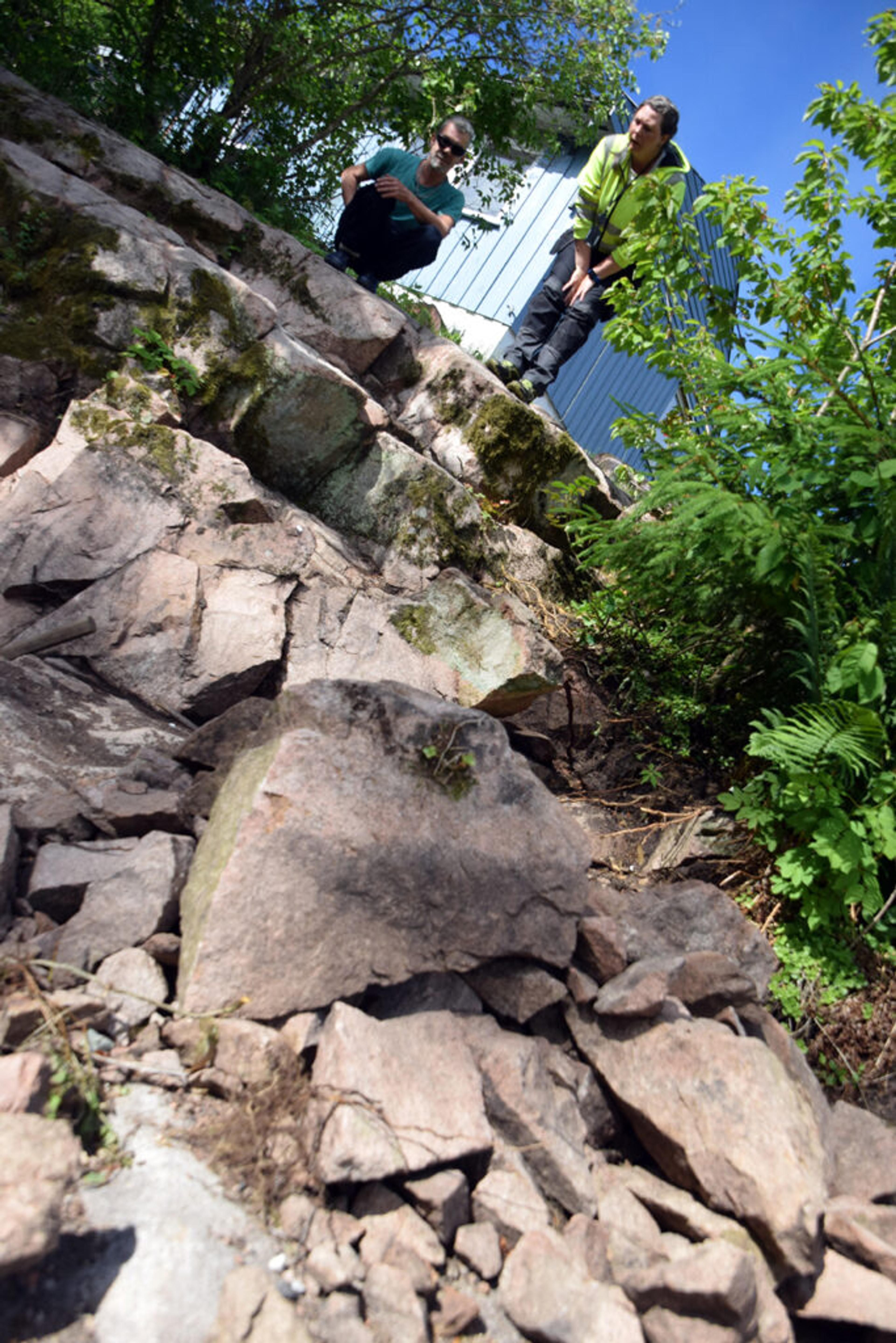 RENSKER FJELL – OG FINNER GULL? Veldig sjelden, karakteriserer arkeologene ved Kulturarv i Vestfold og Telemark fylkeskommune funnet i denne lille fjellskrenten på Lundteigen. Foto: Stian Ormestad.