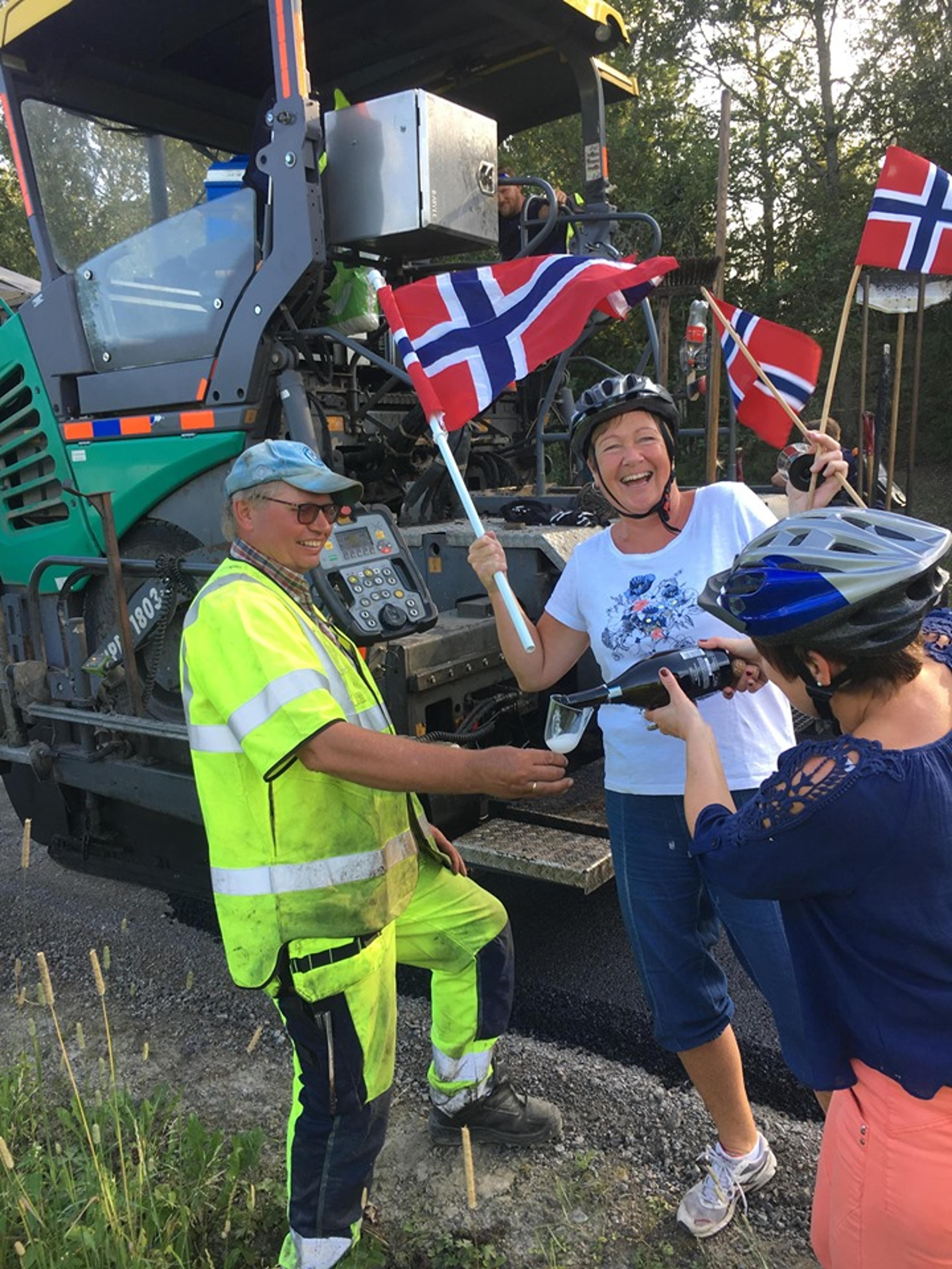 JUBELSCENER: Skål for asfalt på Kleivaveien! Foto: Privat.