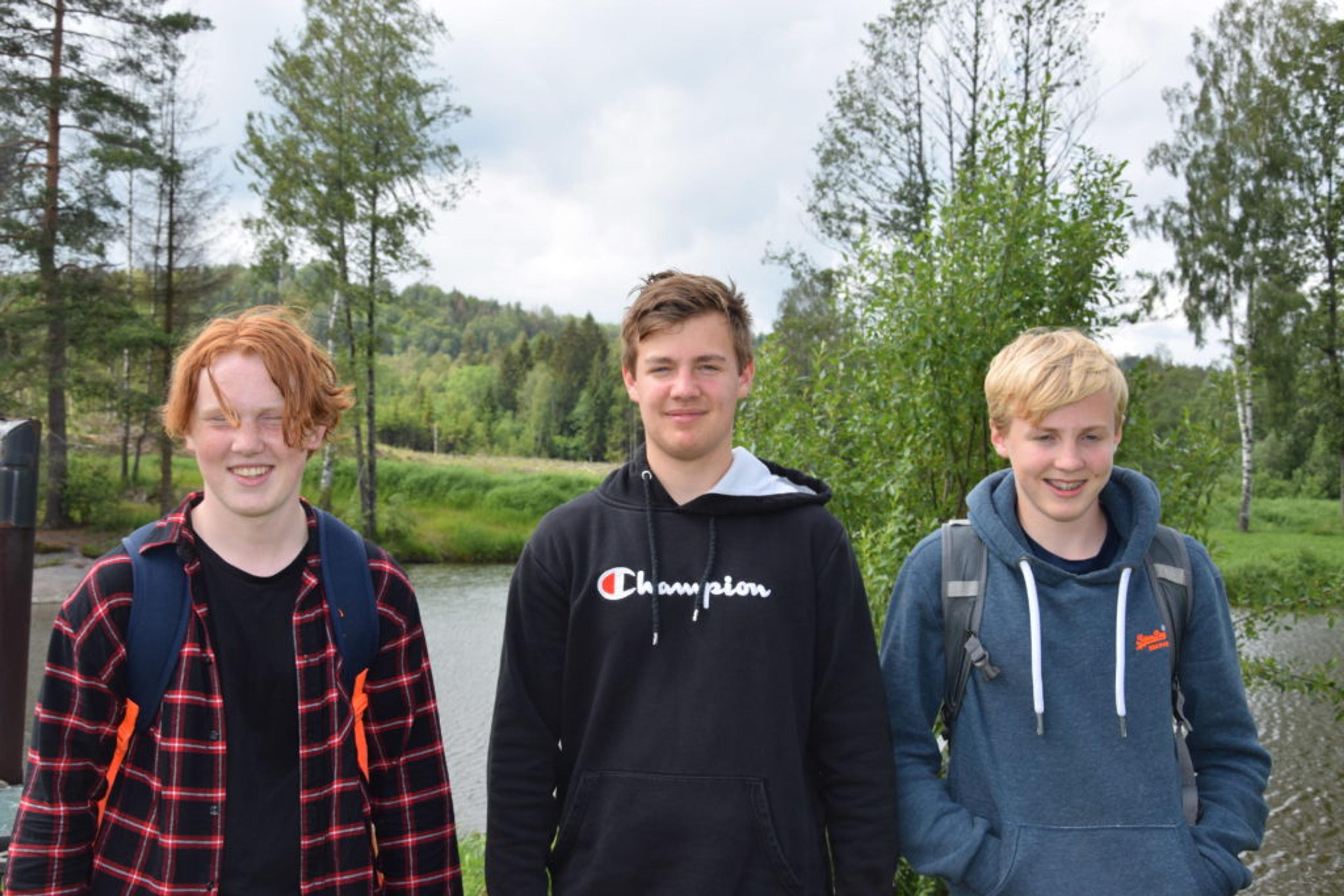 Ute treffer vi Henrik Mortenson, Theodor Larsen og Fillip Woll som akkurat har kommet tilbake fra roturen oppover Storelva. De synes skoledagen har vært koselig.