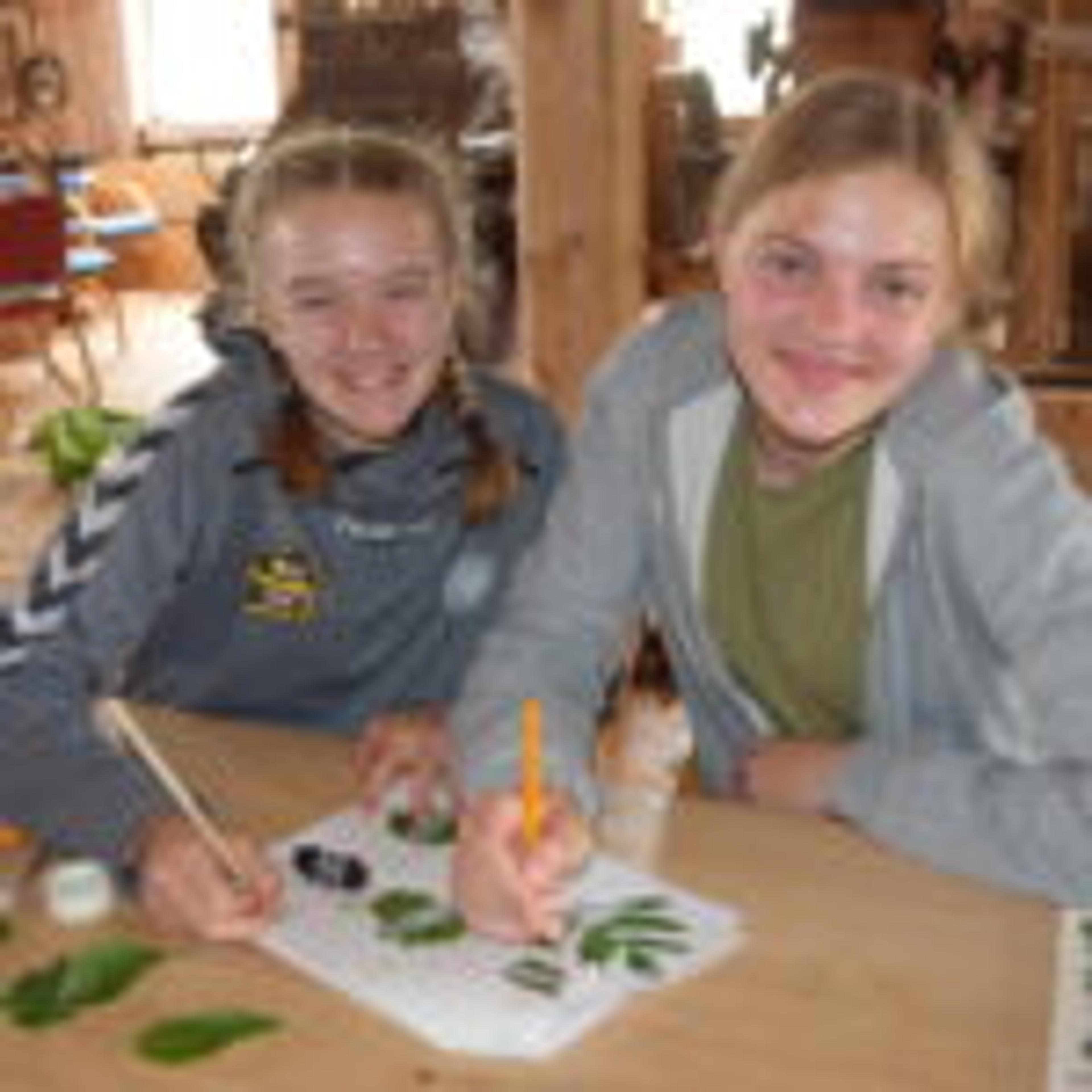 Inne på Bakke mølle snakker vi med Martine Eger og Lykke Almelie Amundsen, som bestemte trær og busker ved å se på bladene. Spennende, synes de.