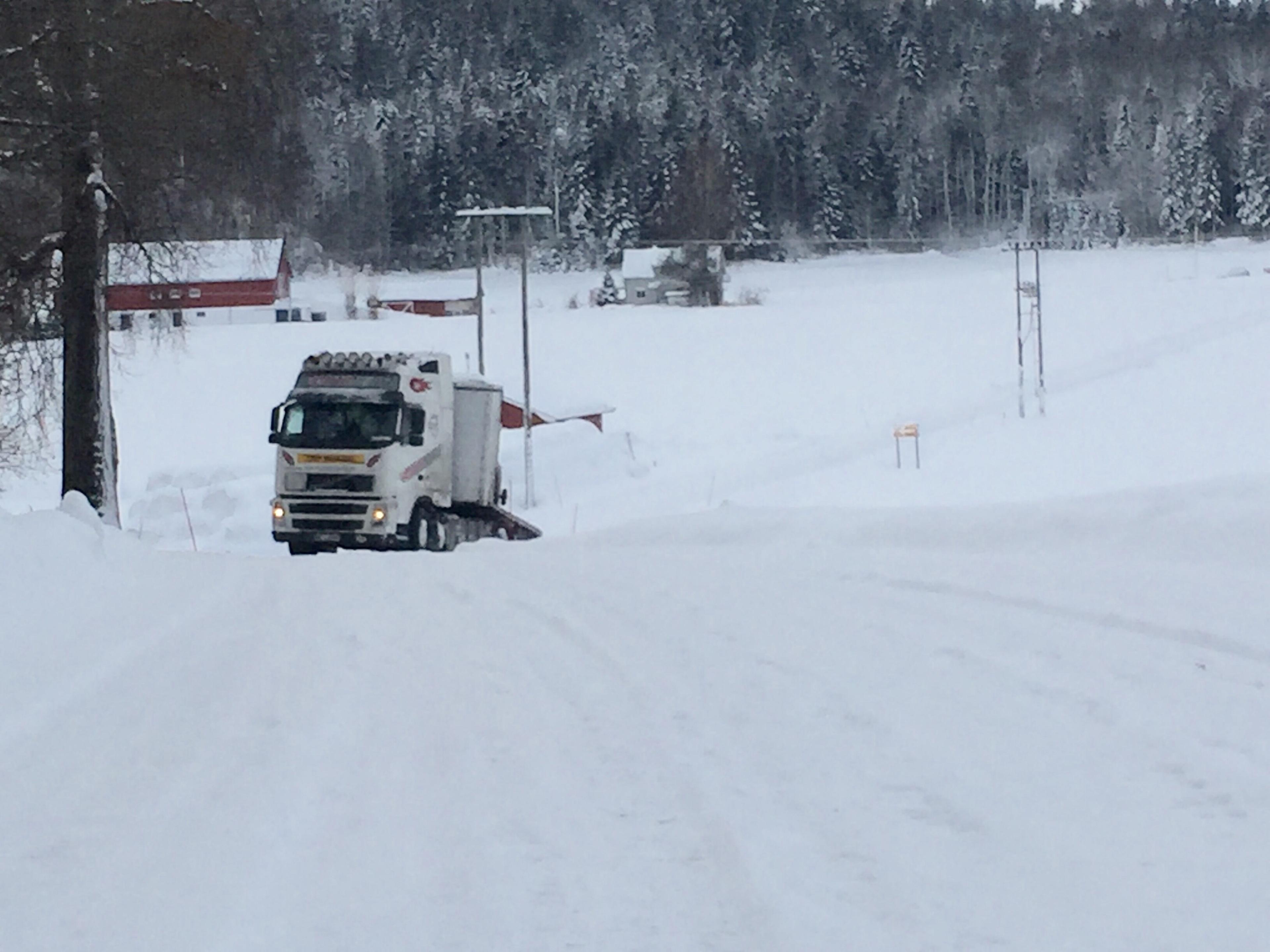I halv to-tida sklir en lastebil ut av Hvitsteinveien i Fon.