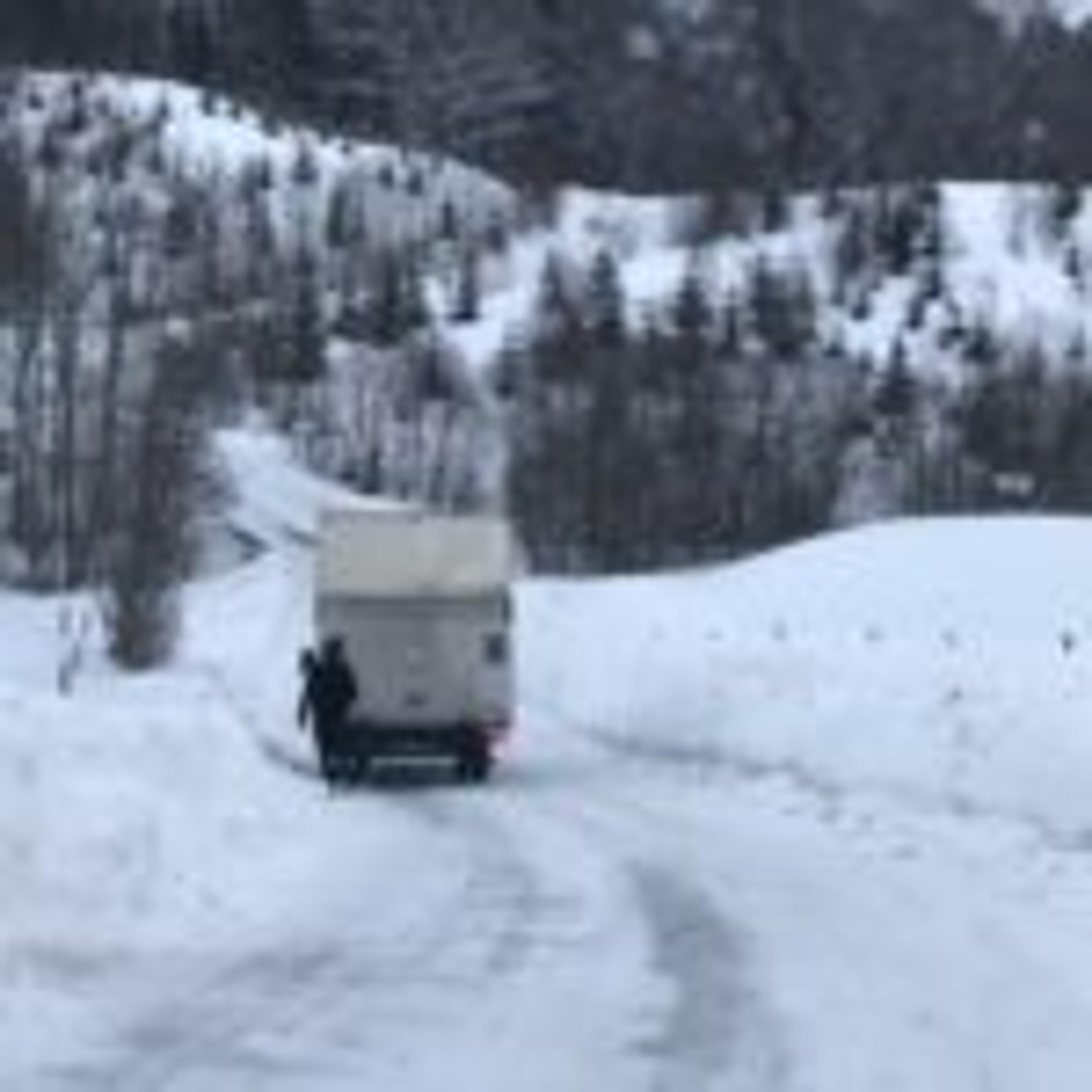 – Det er så glatt at han ikke kommer opp noen av veiene, han har verken kjetting eller noe. Sjåføren er ikke lokalkjent. Nå prøver han å strø for at veien skal bli mindre glatt.