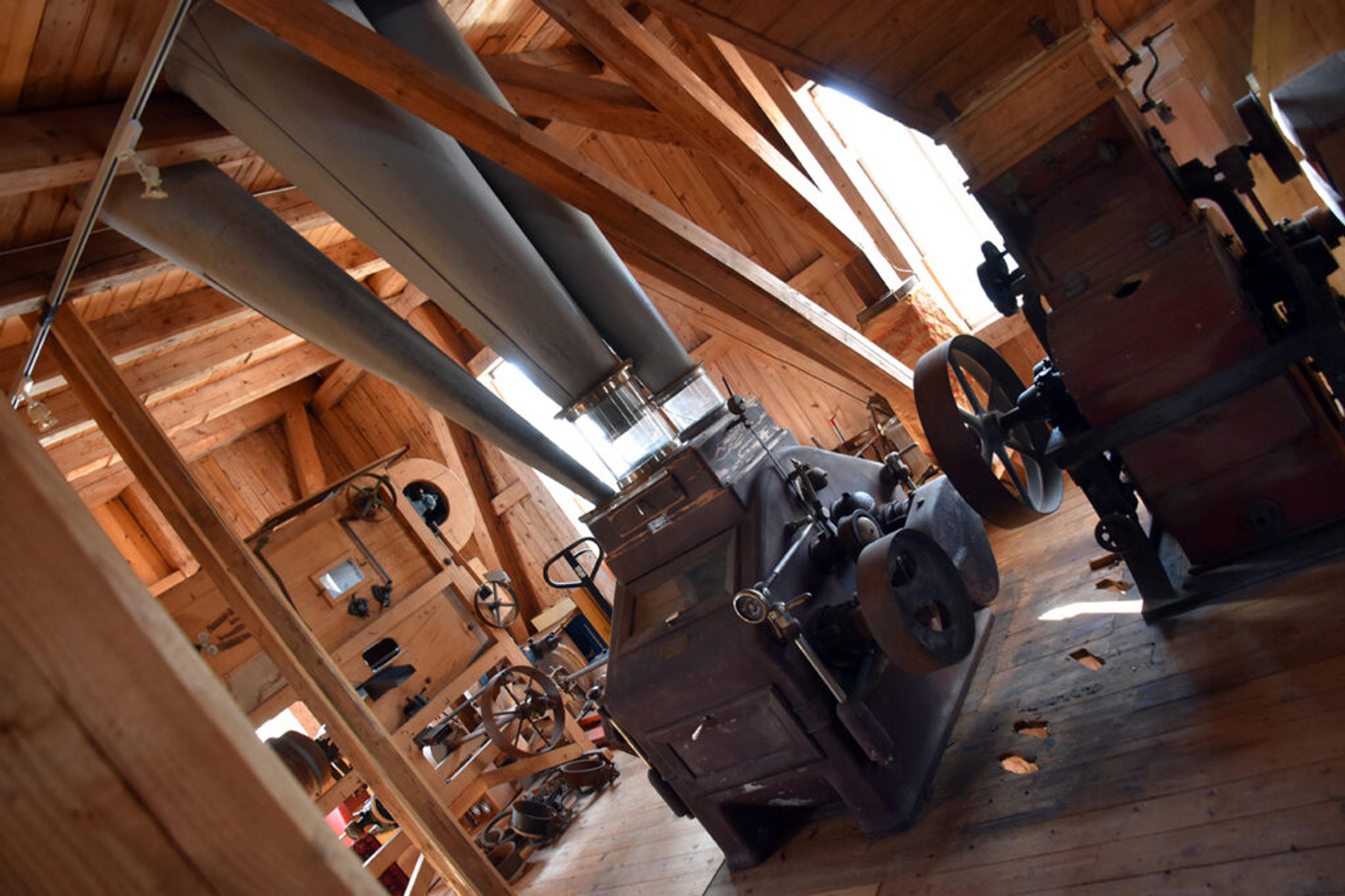 MØLLEUTSTYR: Øivind rusta opp mølla til å bli et museum og læringssenter, med autentiske maskiner fra tidligere tider på mølla. Foto: Stian Ormestad.