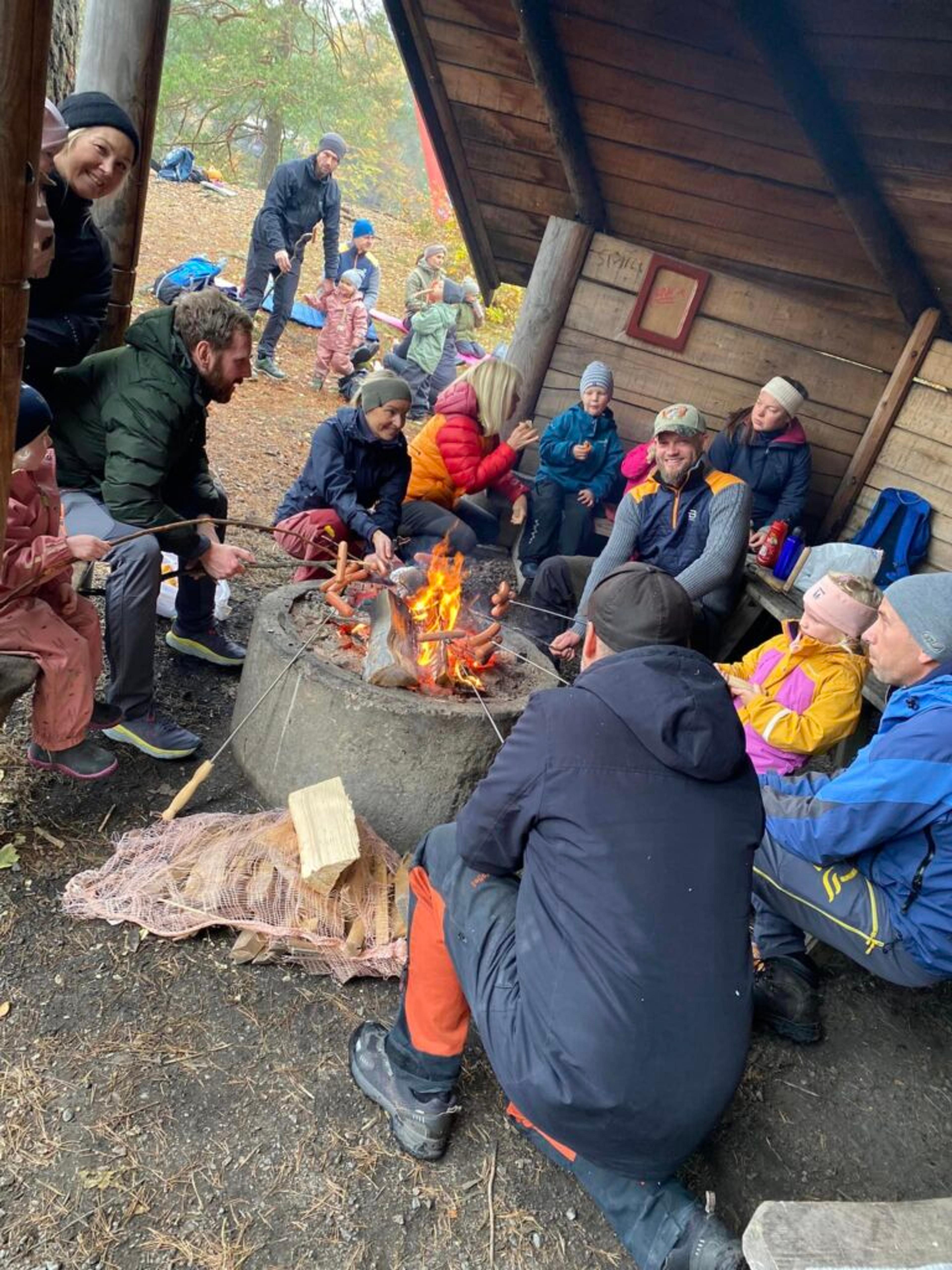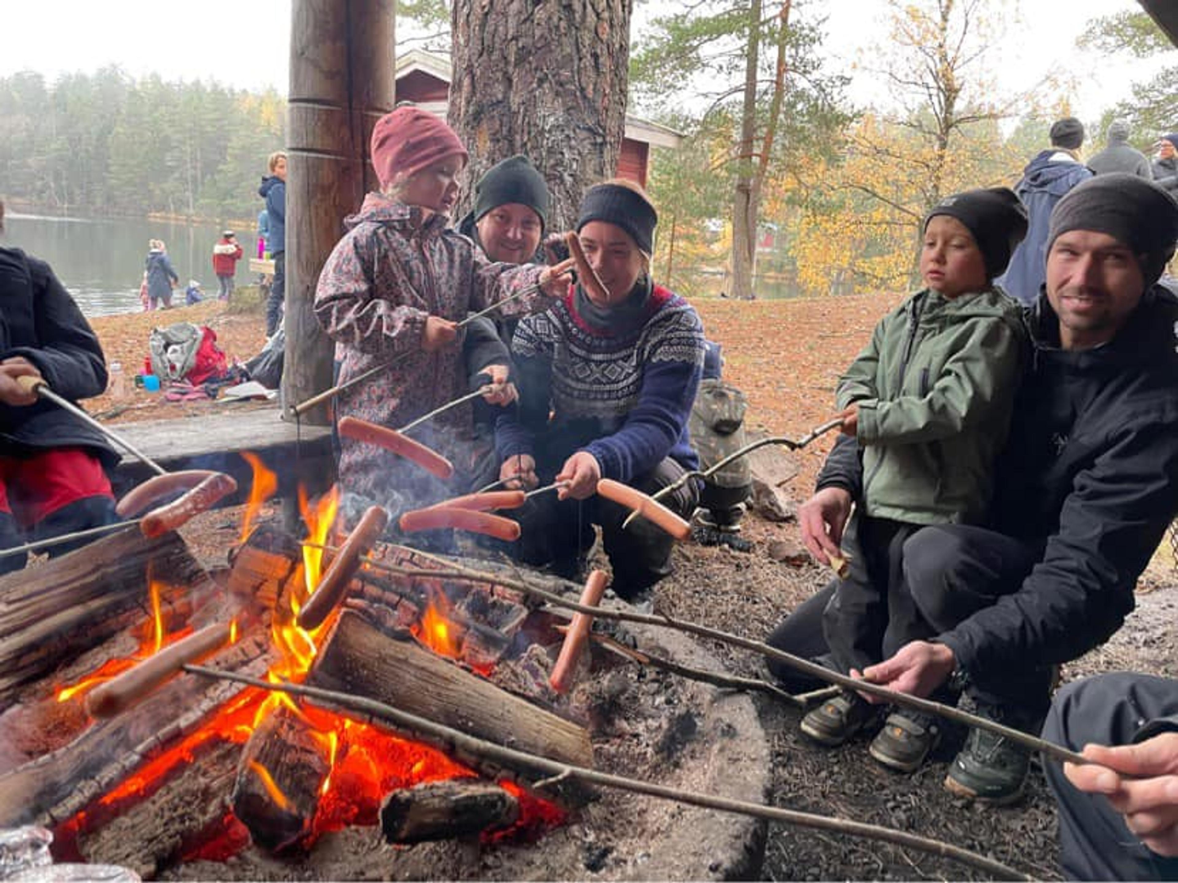 GAPAHUK-KOS: Foreldre og barn rundt bålet. Foto: Privat.