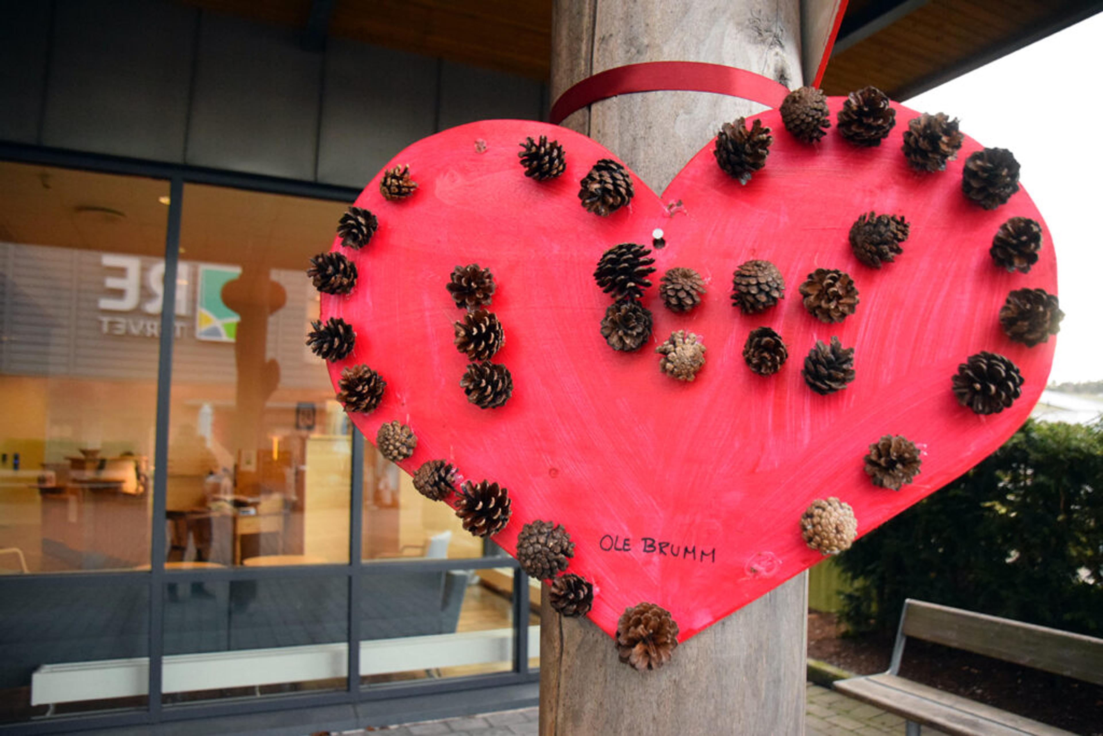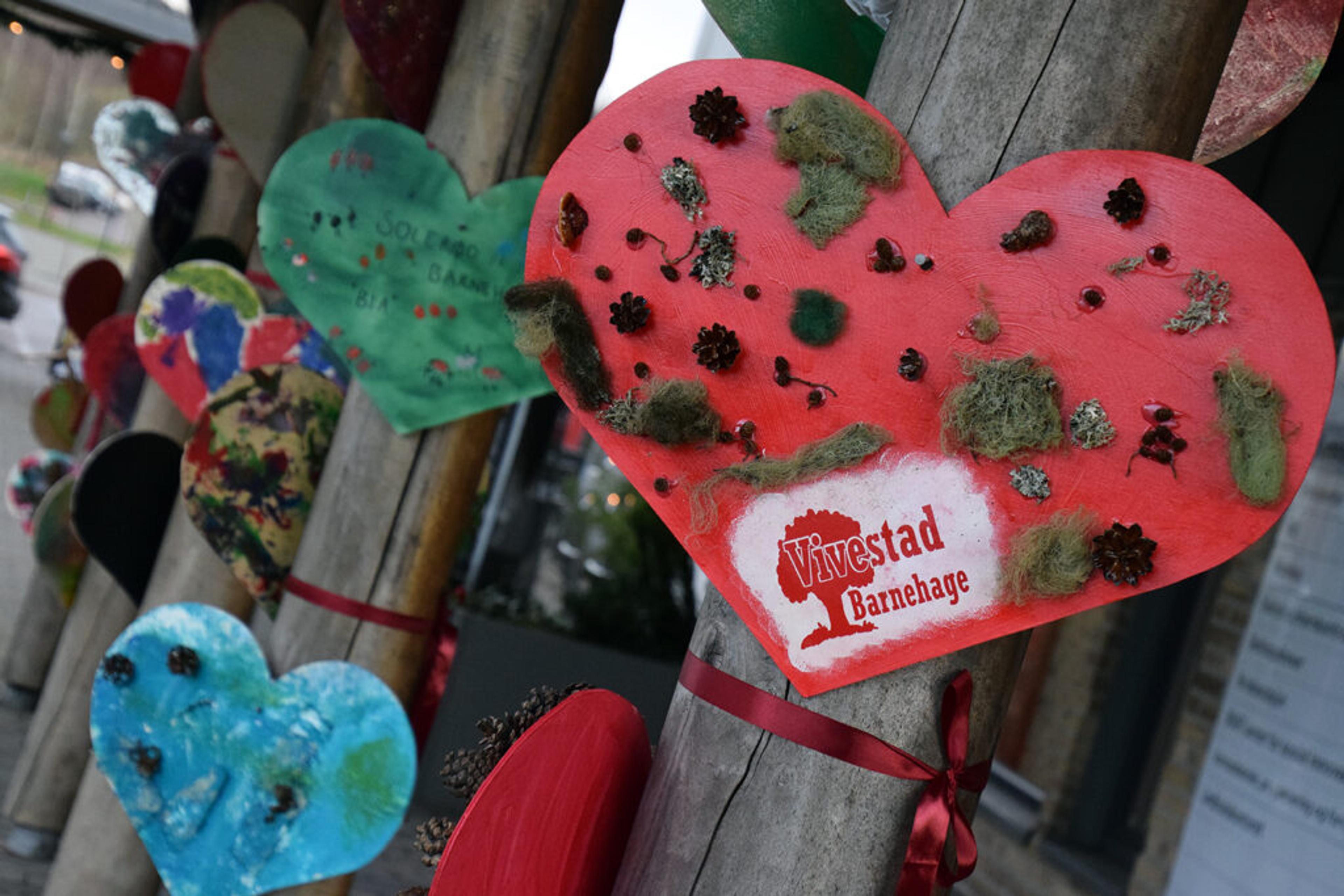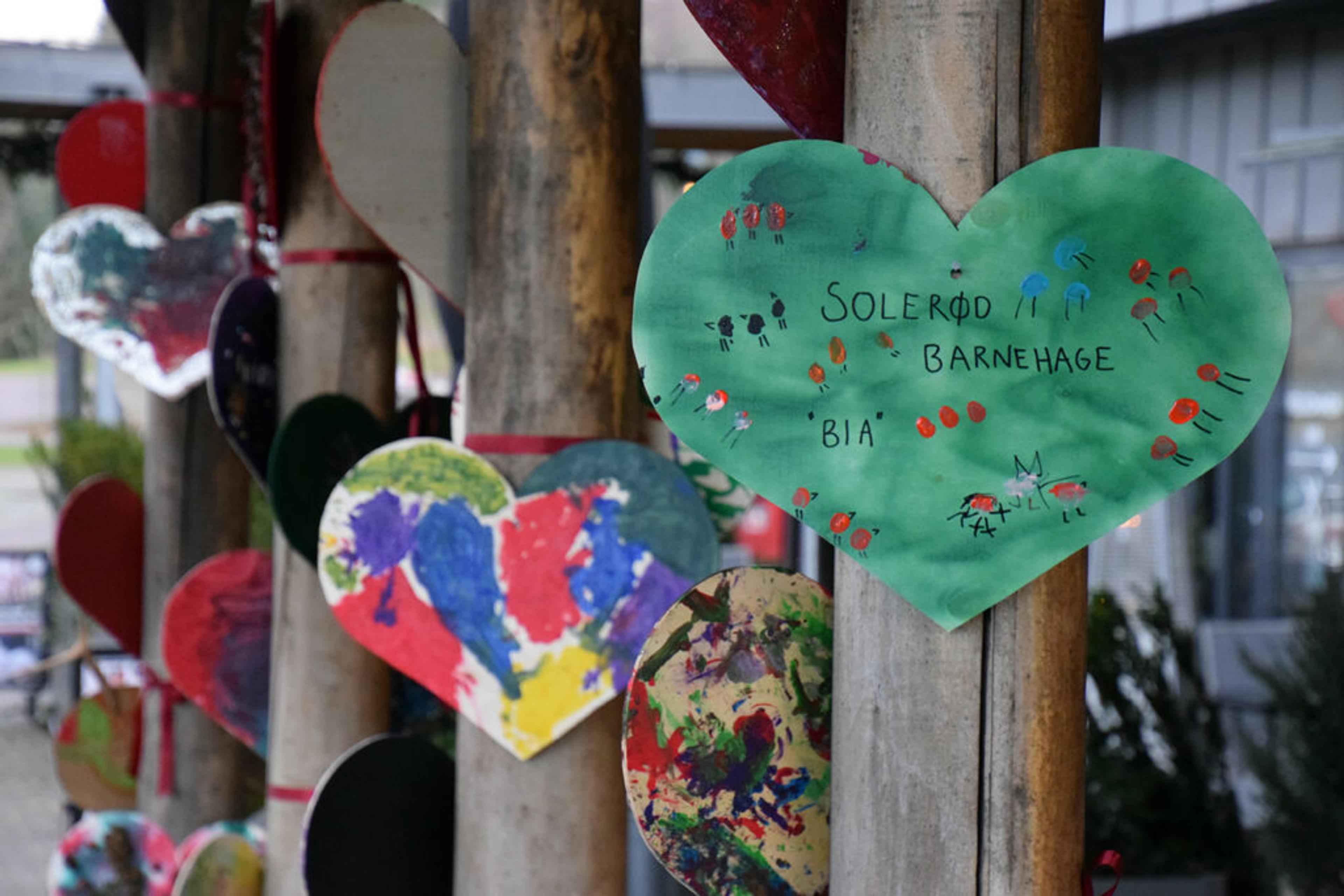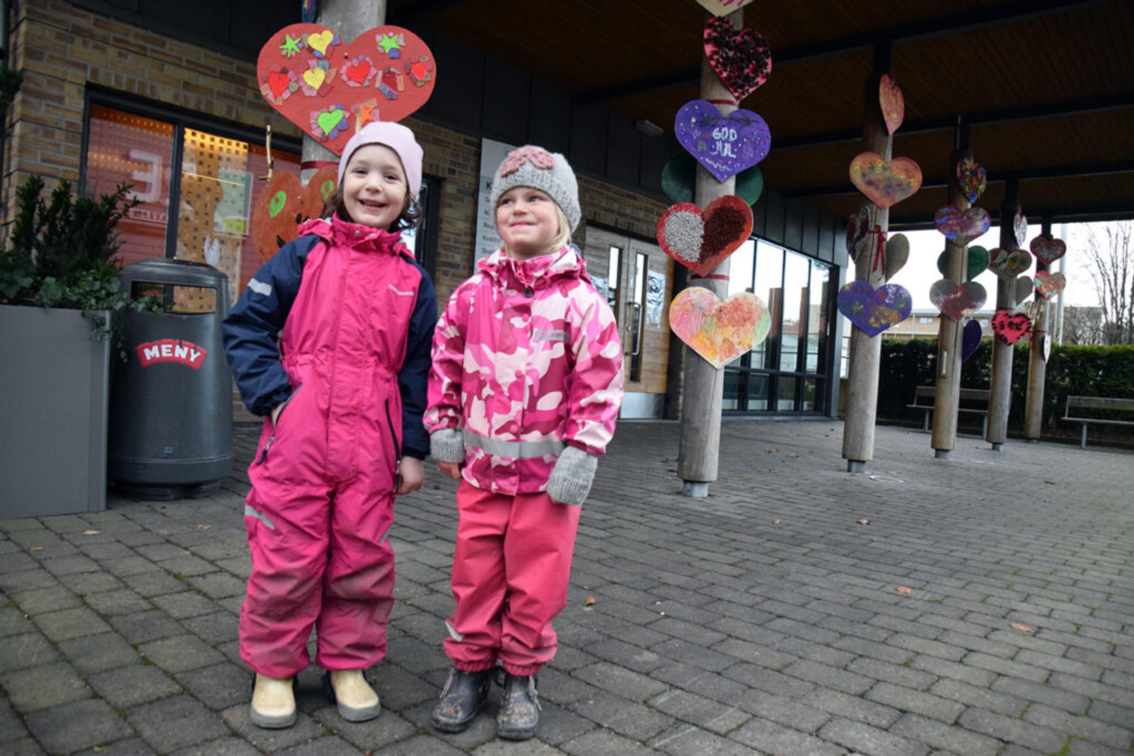 – Vi har laga så mange hjerter fordi vi er glade i familiene våres, forteller jentene. – Mamma og pappa. Også søskena våres.