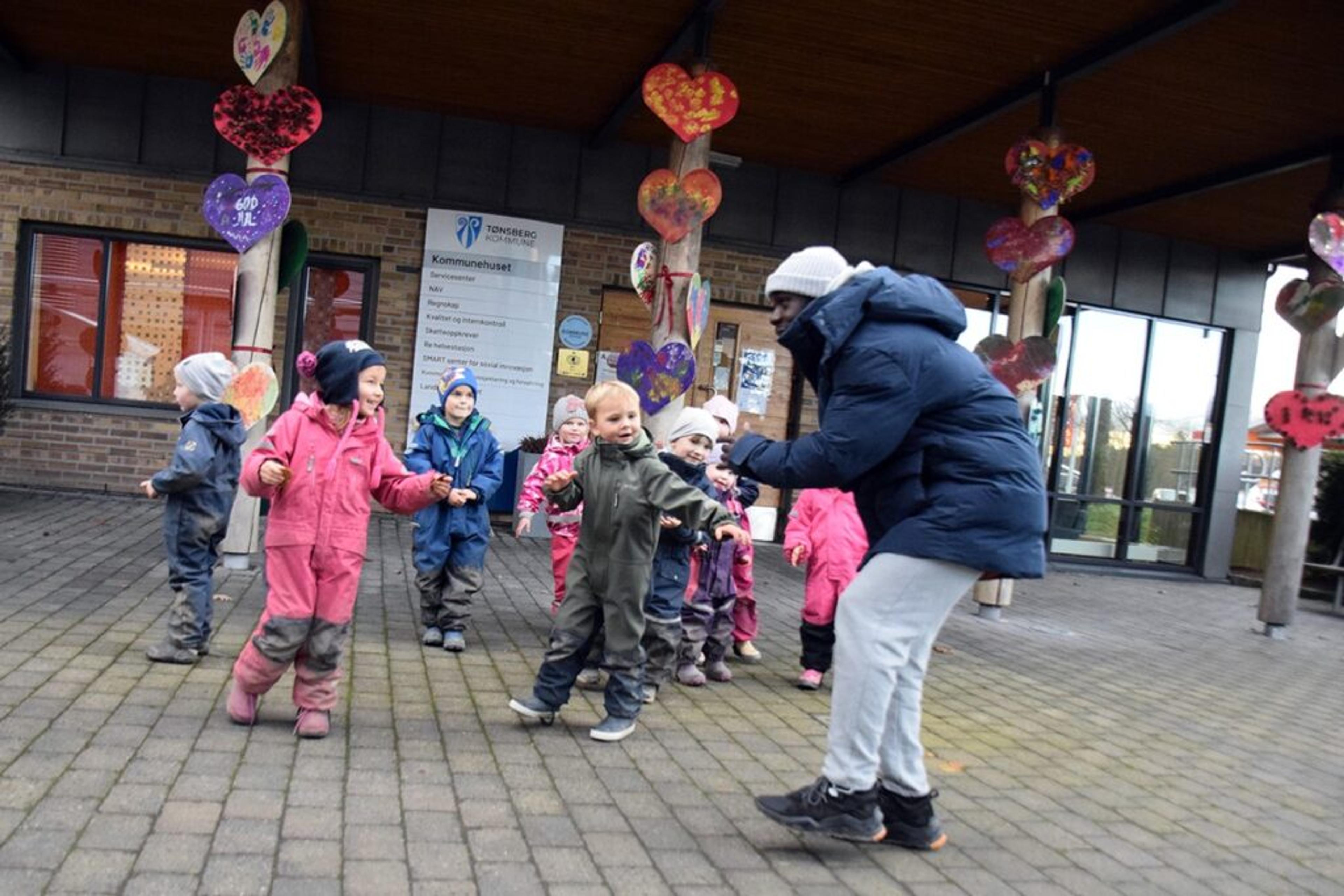 Barnehagebarn lager hjertelig julepynt i bygdeby’n vår