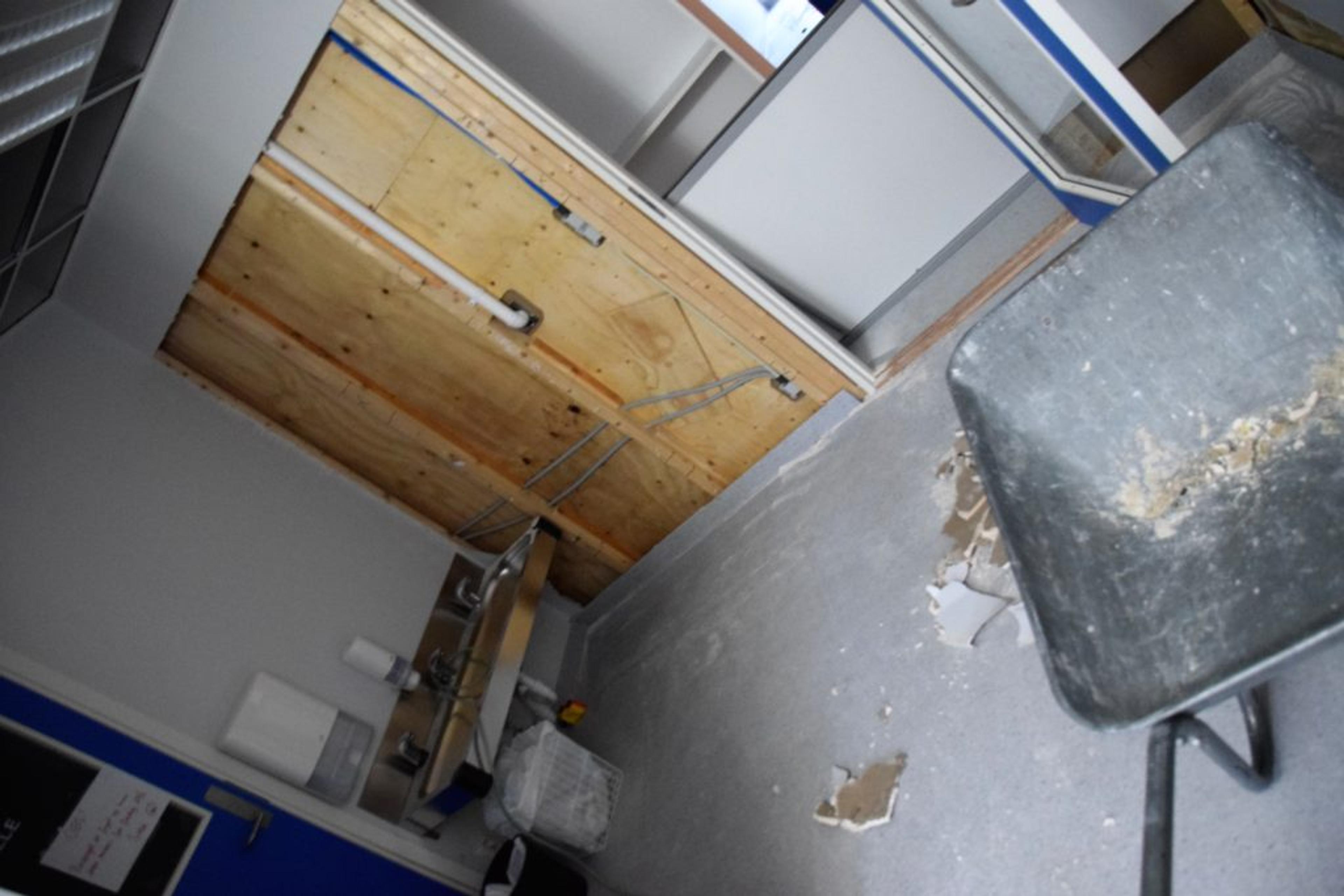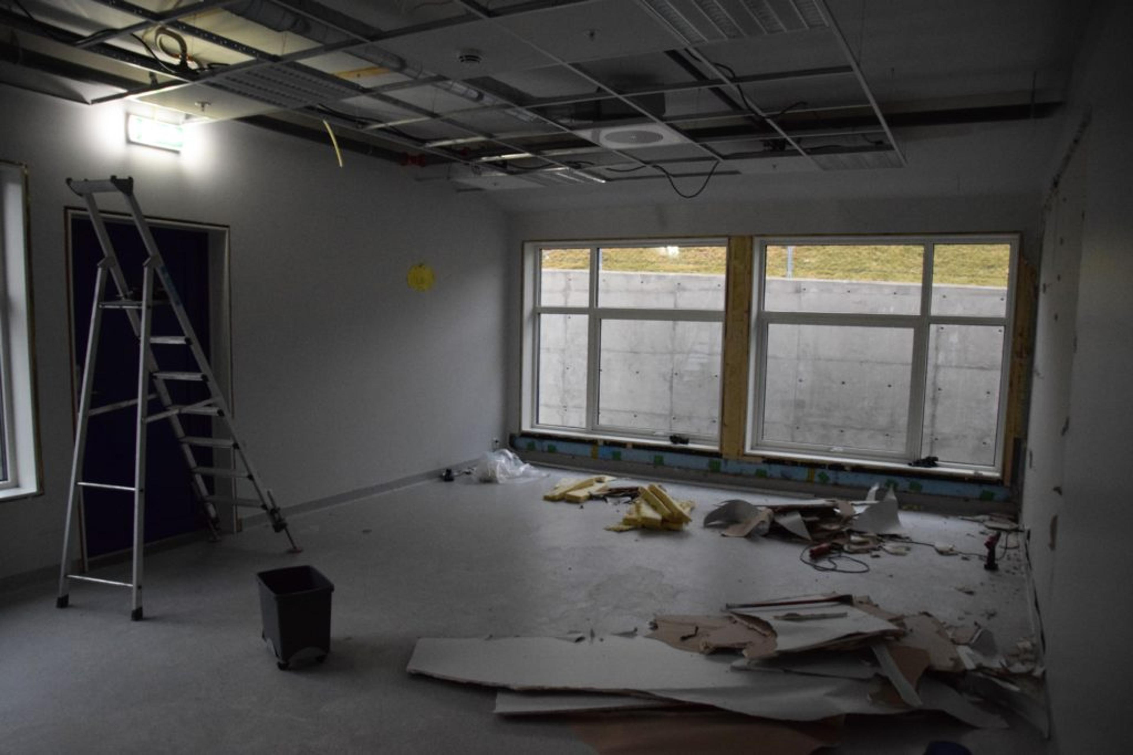 OMFATTENDE VANNSKADER: Skjeggestadåsen barnehage er Re kommunes nyeste barnehage. Etter en stor vannlekkasje ser det slik ut i barnehagen. Foto: Stian Ormestad.