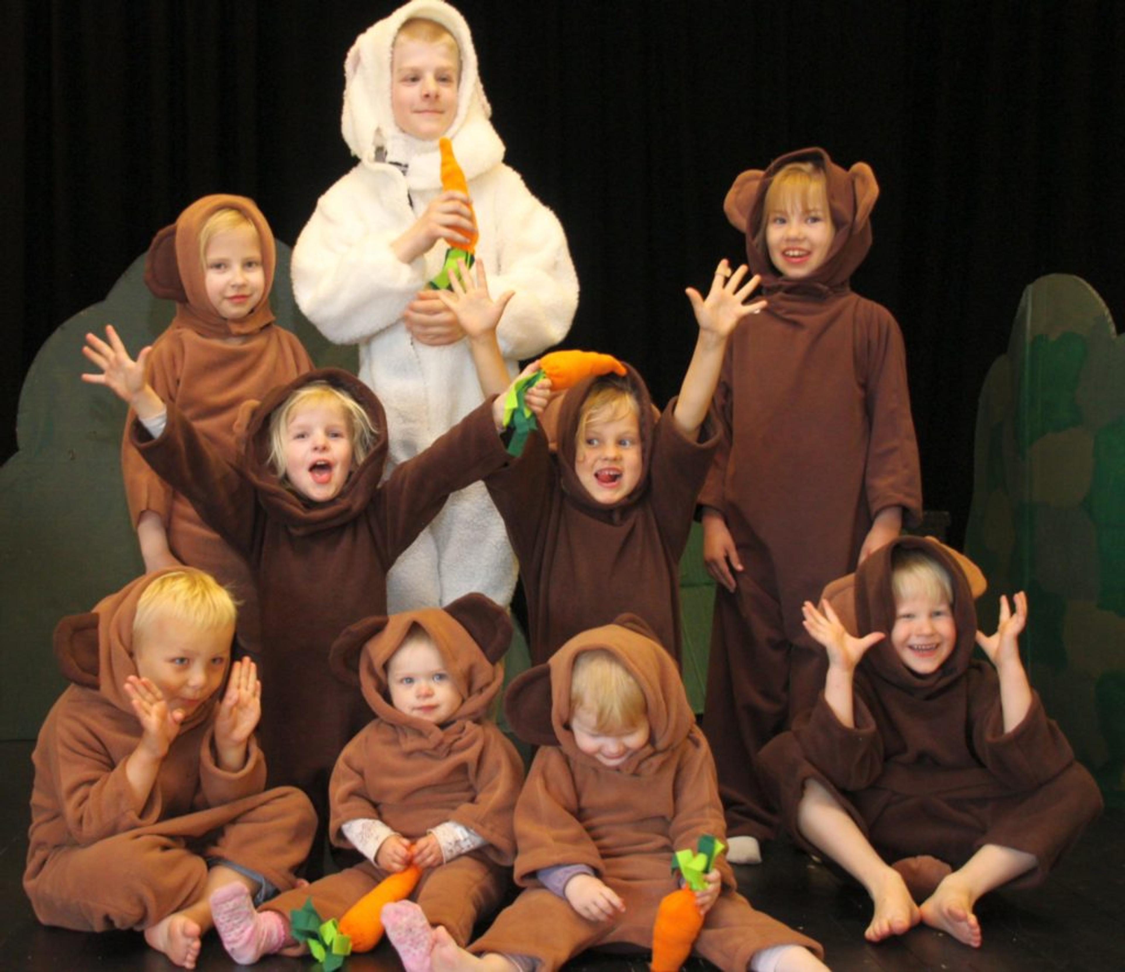 SOLERØD JUBATEATER: Hele18 skuespillere er klare, i alderen 5 til 11 år, blant dem Sander Fjellvang, Isabell Adolfsen Næss, Hedda Fjellvang, Vårin Hiim-Tveiten, Ruth Emilie Bråten, Hans Elias Bråten, Ingeborg Elfrida Bråten, Rebekka Fjellvang, Dennis Nilsson. Foto: Privat.