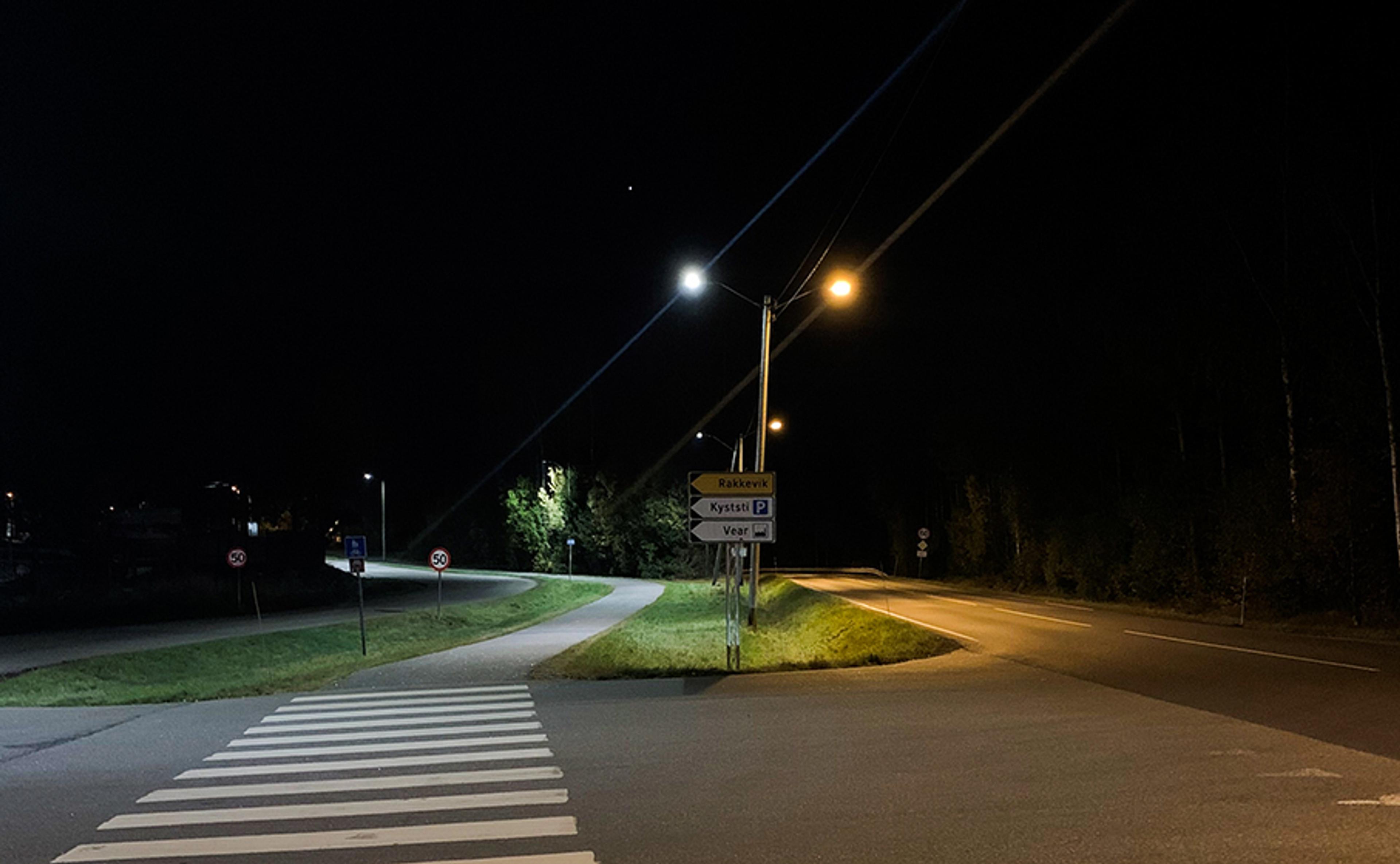 Bispeveien er en av mange fylkeskommunale veier som får nyte godt av en bevilgning fra Fylkestinget på femti millioner kroner til nye ledlamper langs fylkesveiene.