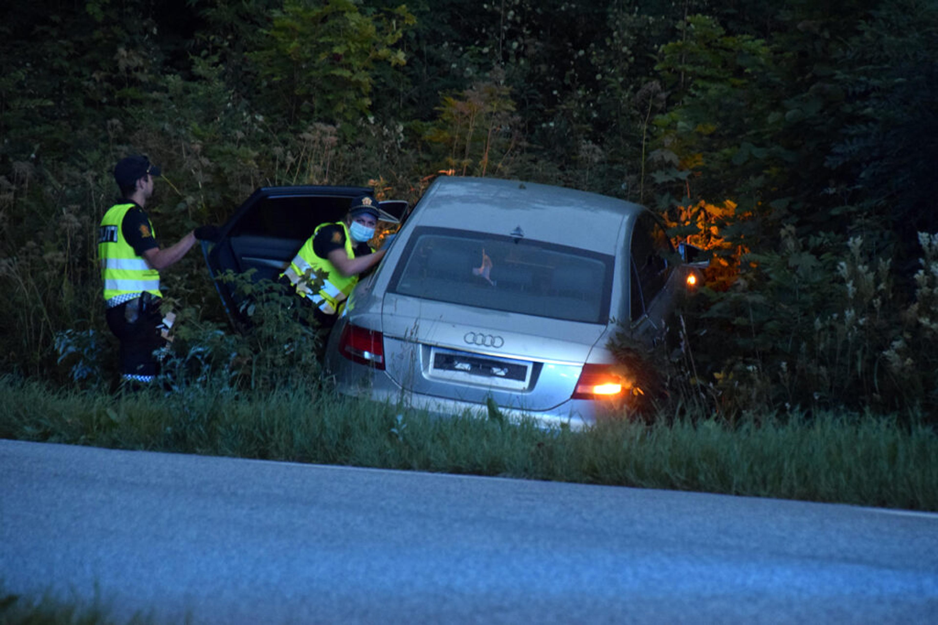 Rett før klokka 22.00 på søndagskvelden 18. juli fikk nødetatene melding om en bil som har kjørt inn i en fjellvegg.