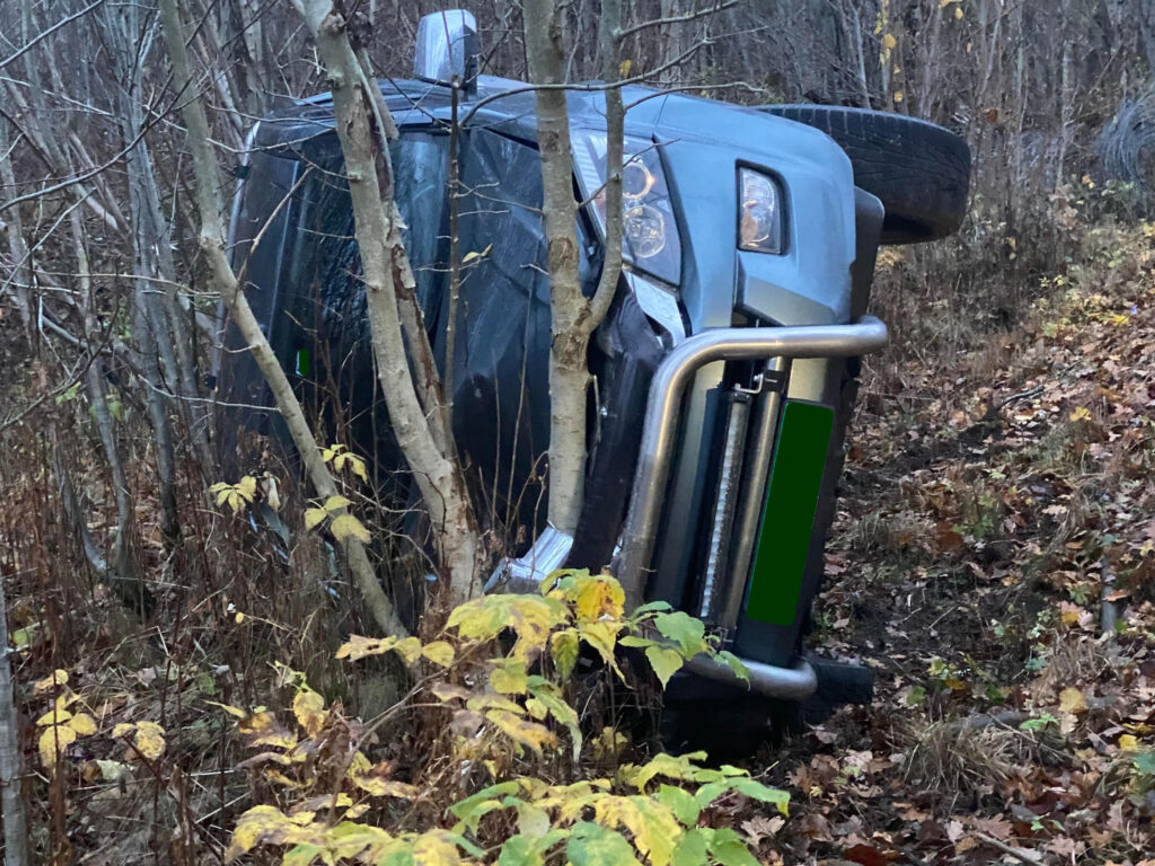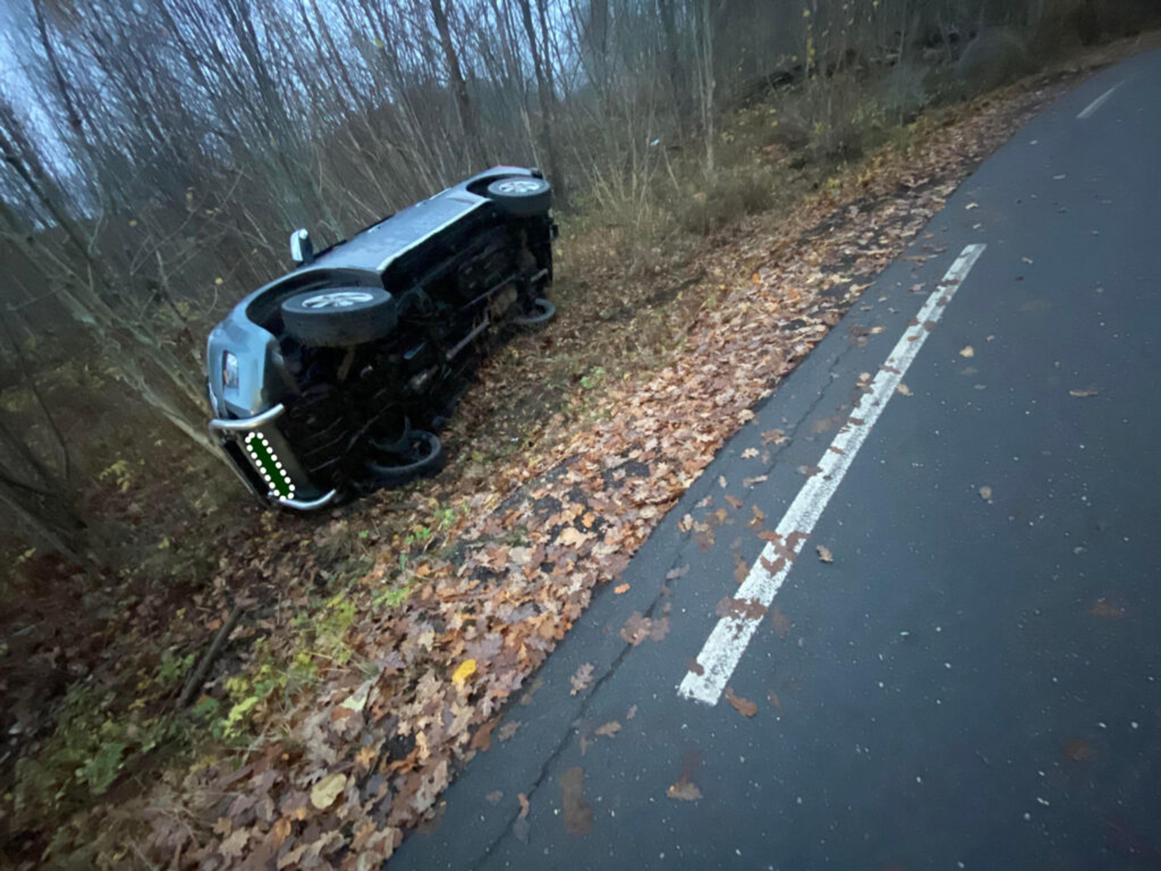 En forlatt bil ligger godt uti grøfta ved himmelspretten over bakkane, Kåpeveien mellom Revetal og Undrumsdal, tirsdag morgen 2. november 2021.