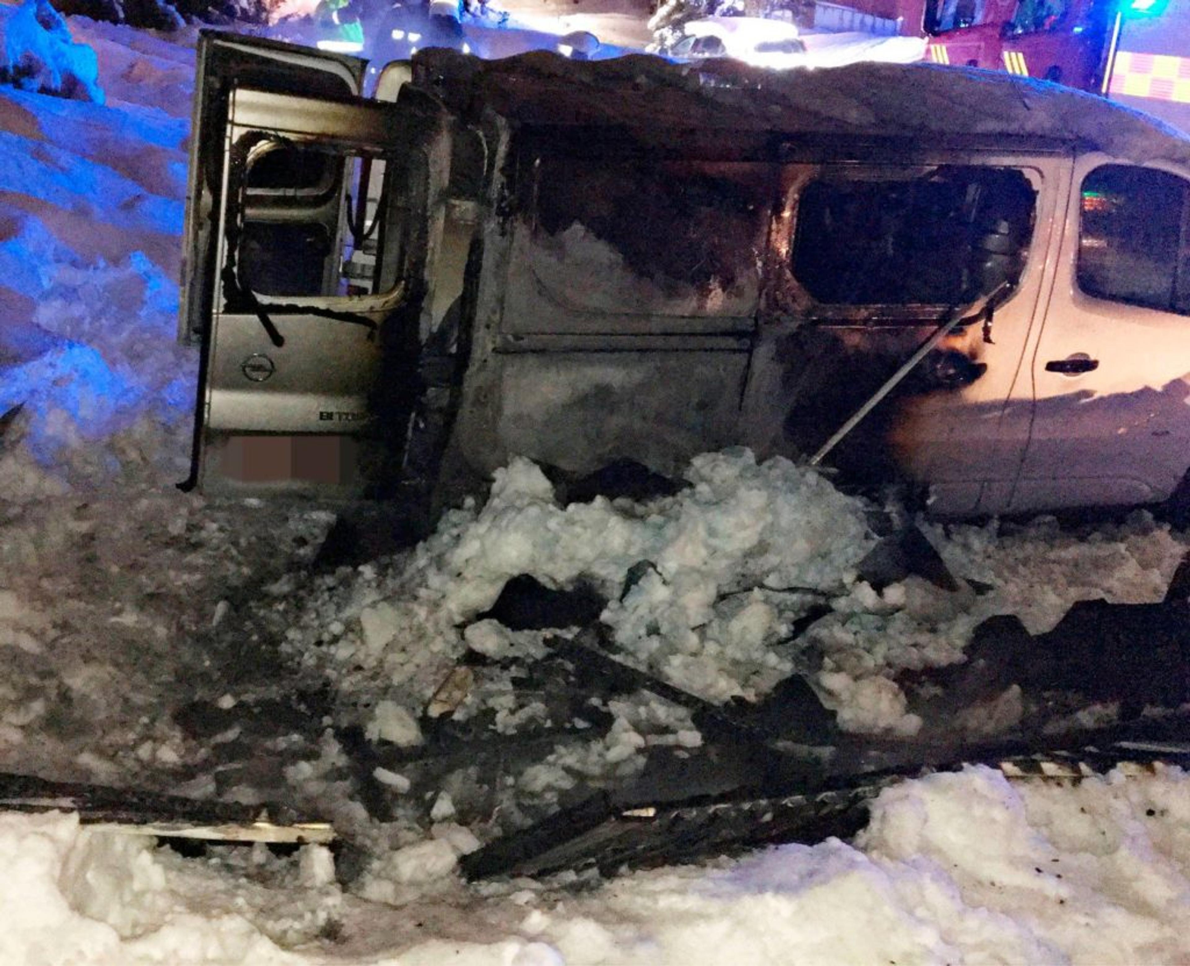 STORE MATERIELLE SKADER: Bilen er totalskadd etter brannen. Foto: VIB.