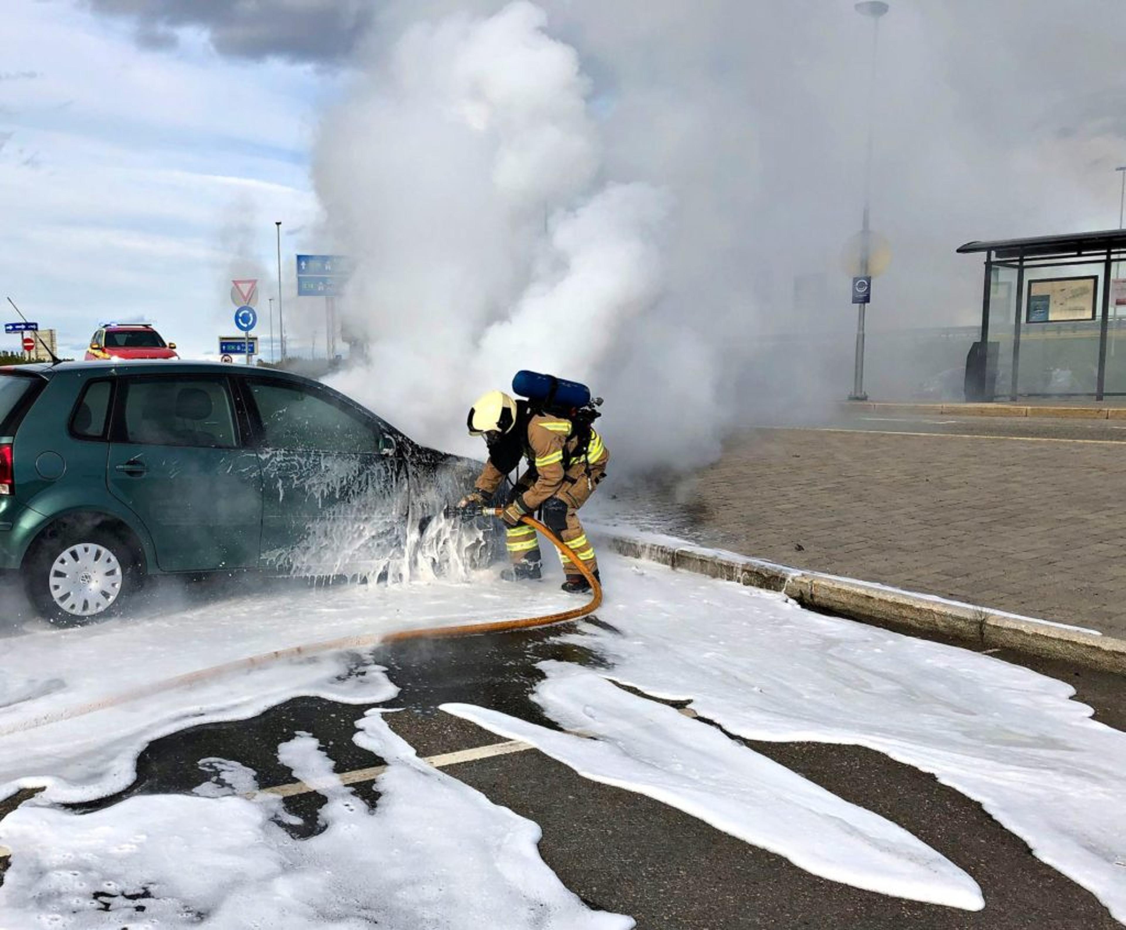– Politi og brannvesen har akkurat kommet til stedet. Det brenner godt i bilen, Brannvesenet har akkurat startet med slokking, melder Politiet i Sør-Øst noen minutter etter første melding.