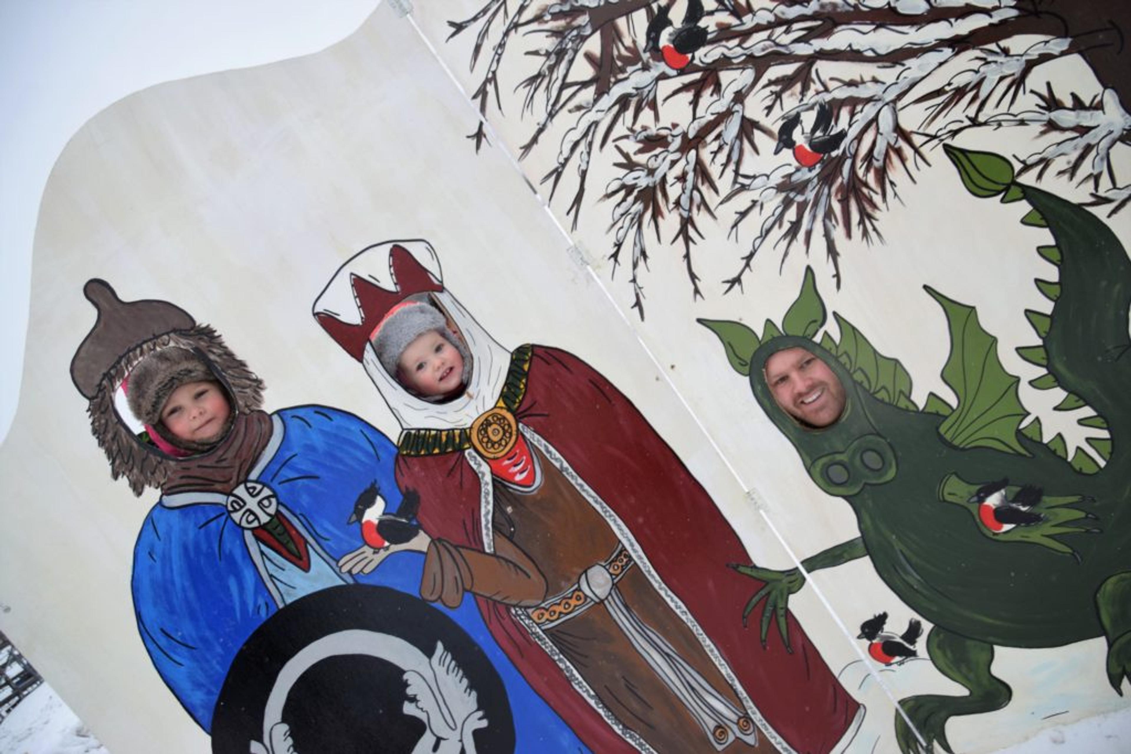 FAMILIEFOTO: Familien Svendsrød fra Sandefjord benytter anledningen til å ta et familiefoto. – Pappa, du må være dragen! Foto: Stian Ormestad.