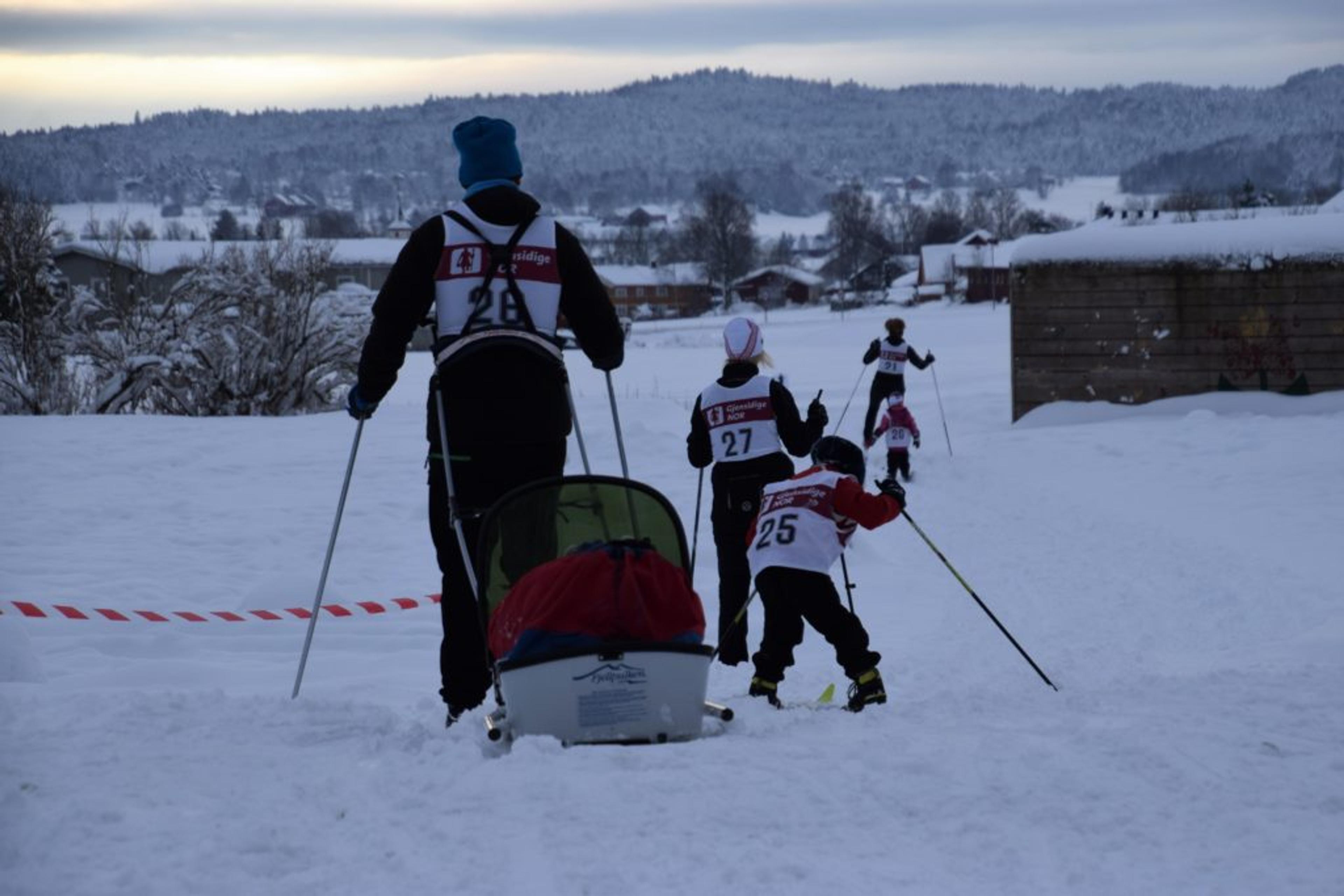 FAMILIERENN: Med deltakere fra to år og oppover, både i pulk og på egne ski, er Re-trimmen et ekte familierenn. Foto: Stian Ormestad.