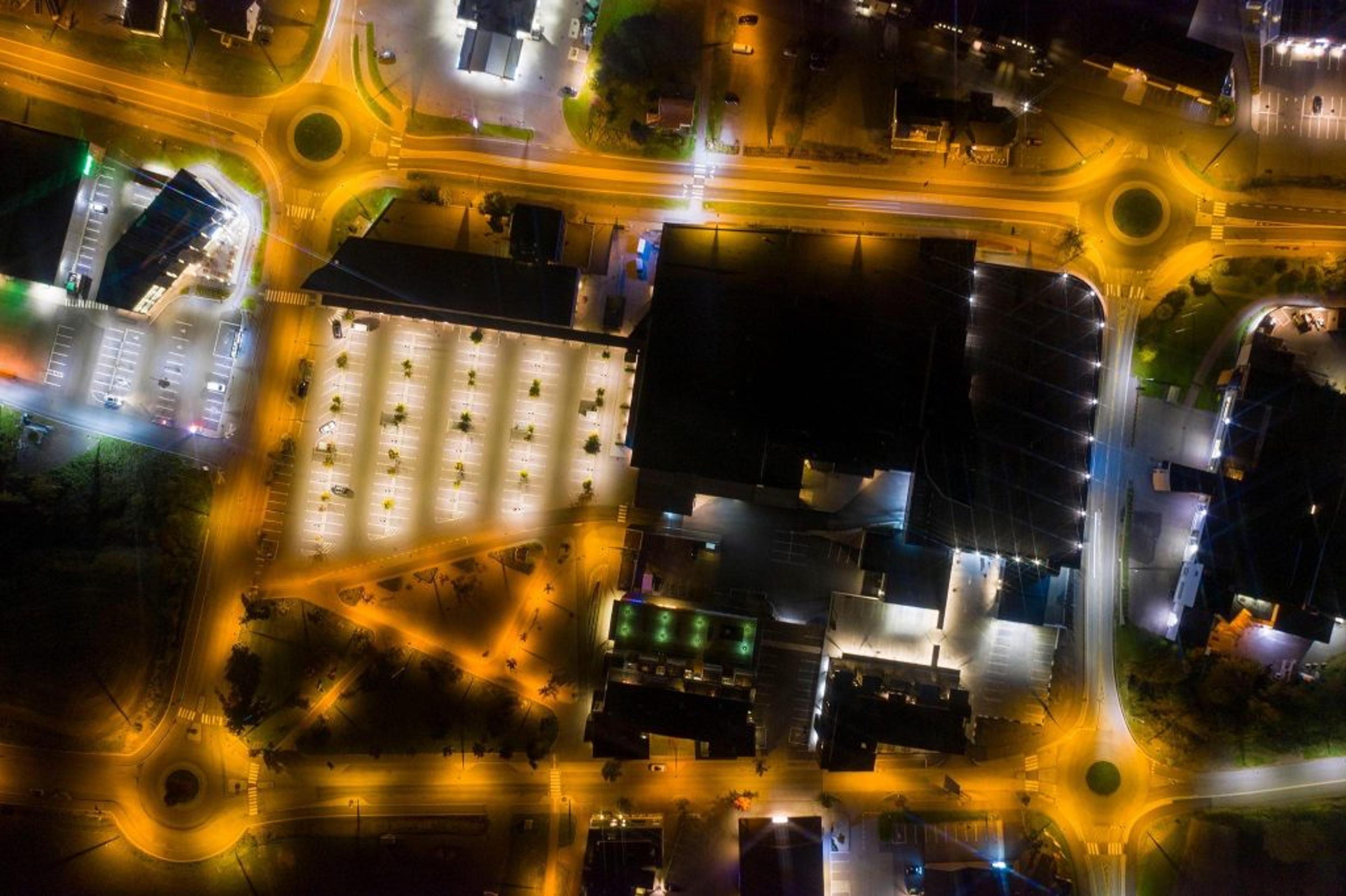 DE FIRE RUNDKJØRINGENE: En gang lå rundkjøringene der, langt fra hverandre uten særlig mye i mellom. I dag er det en liten bygdeby i og rundt de fire rundkjøringene. Og enda mer skal det bli. Foto: Eivind Heggem.