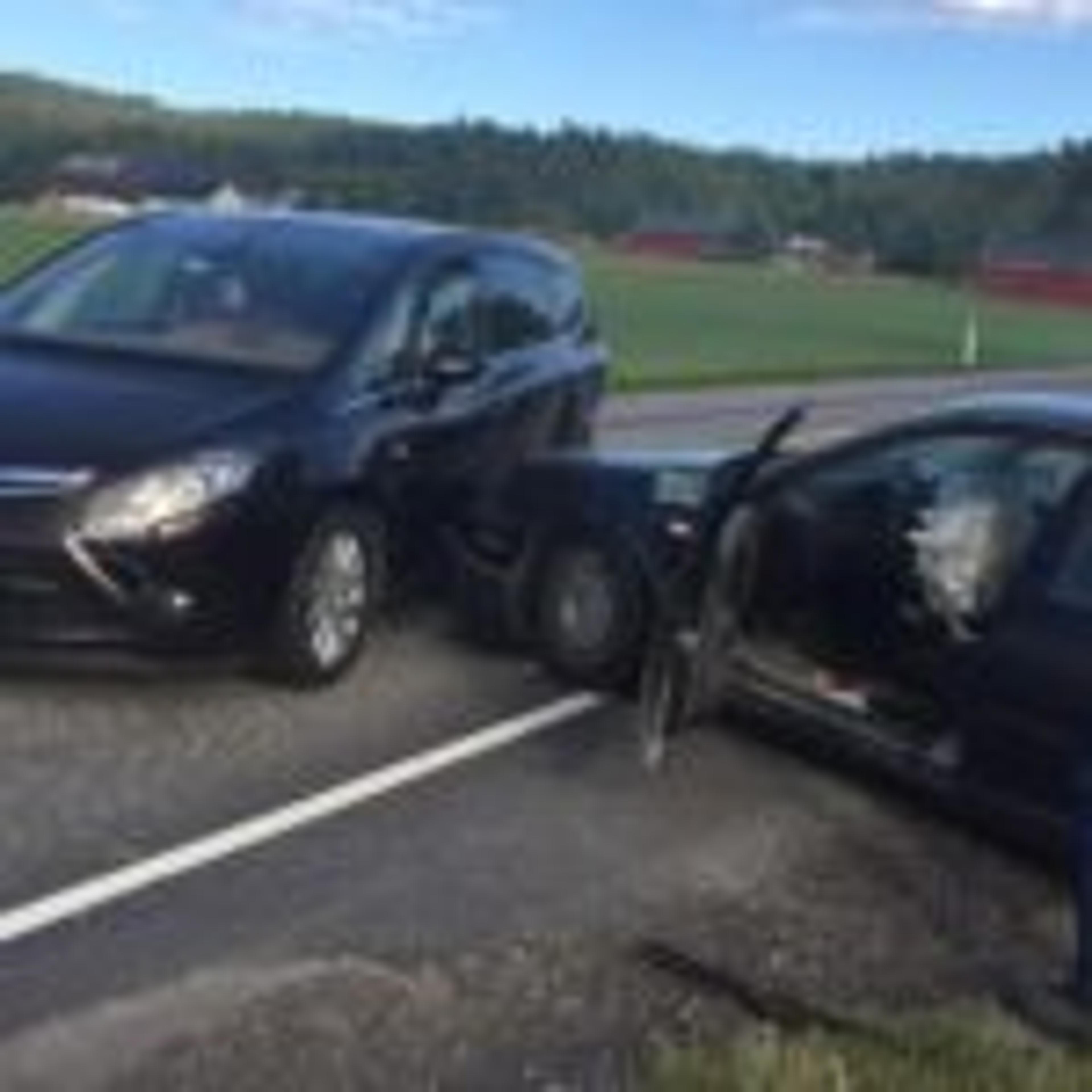 Ingen av bilene er kjørbare etter ulykken. Det er store materielle skader på begge bilene.