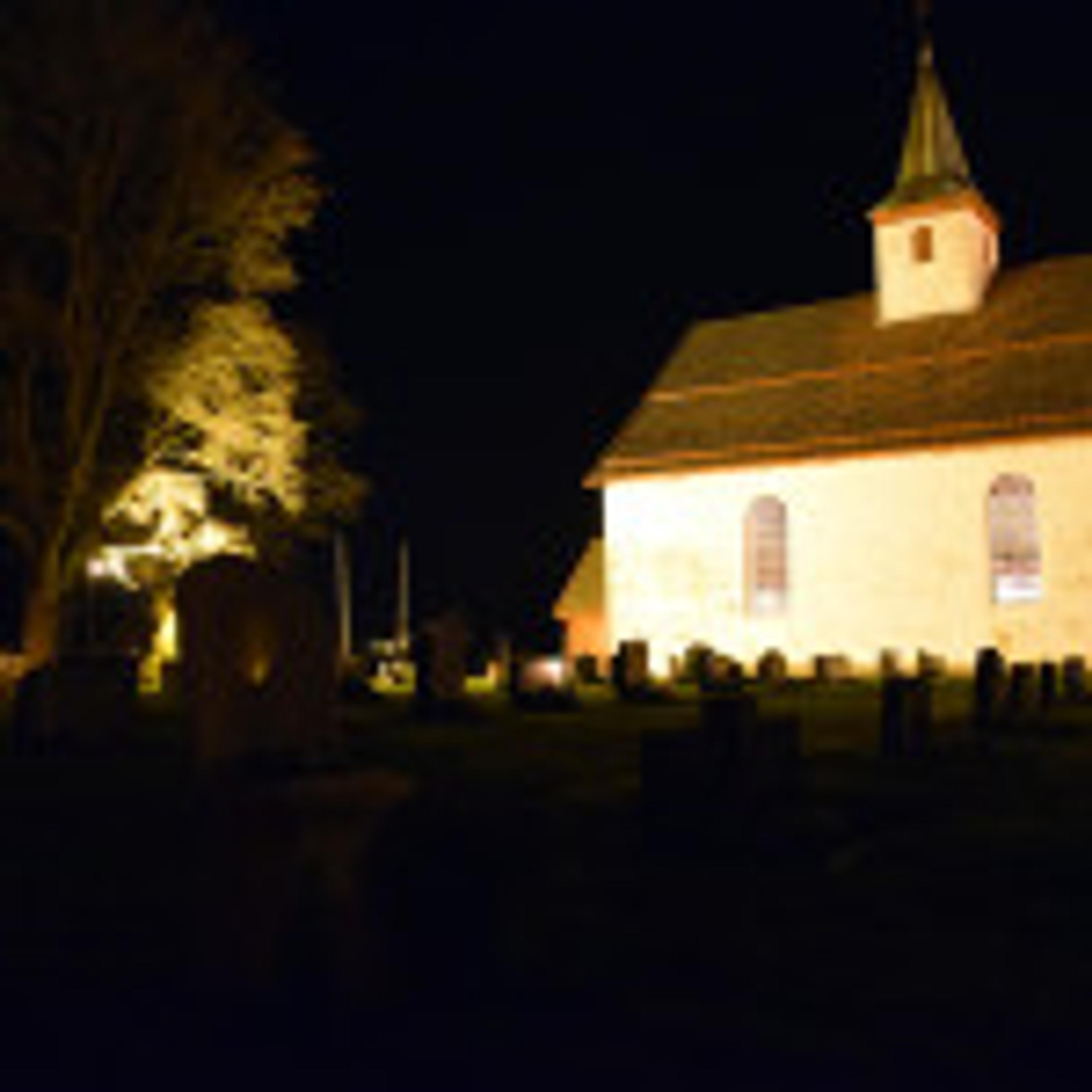 RAMNES KIRKE: Kirka er reist en gang på 1100-tallet. Vi veit fra Snorre Sturlasons «Heimskringla» at det var ei kirke her da slaget på Re sto i 1177. Foto: Stian Ormestad.