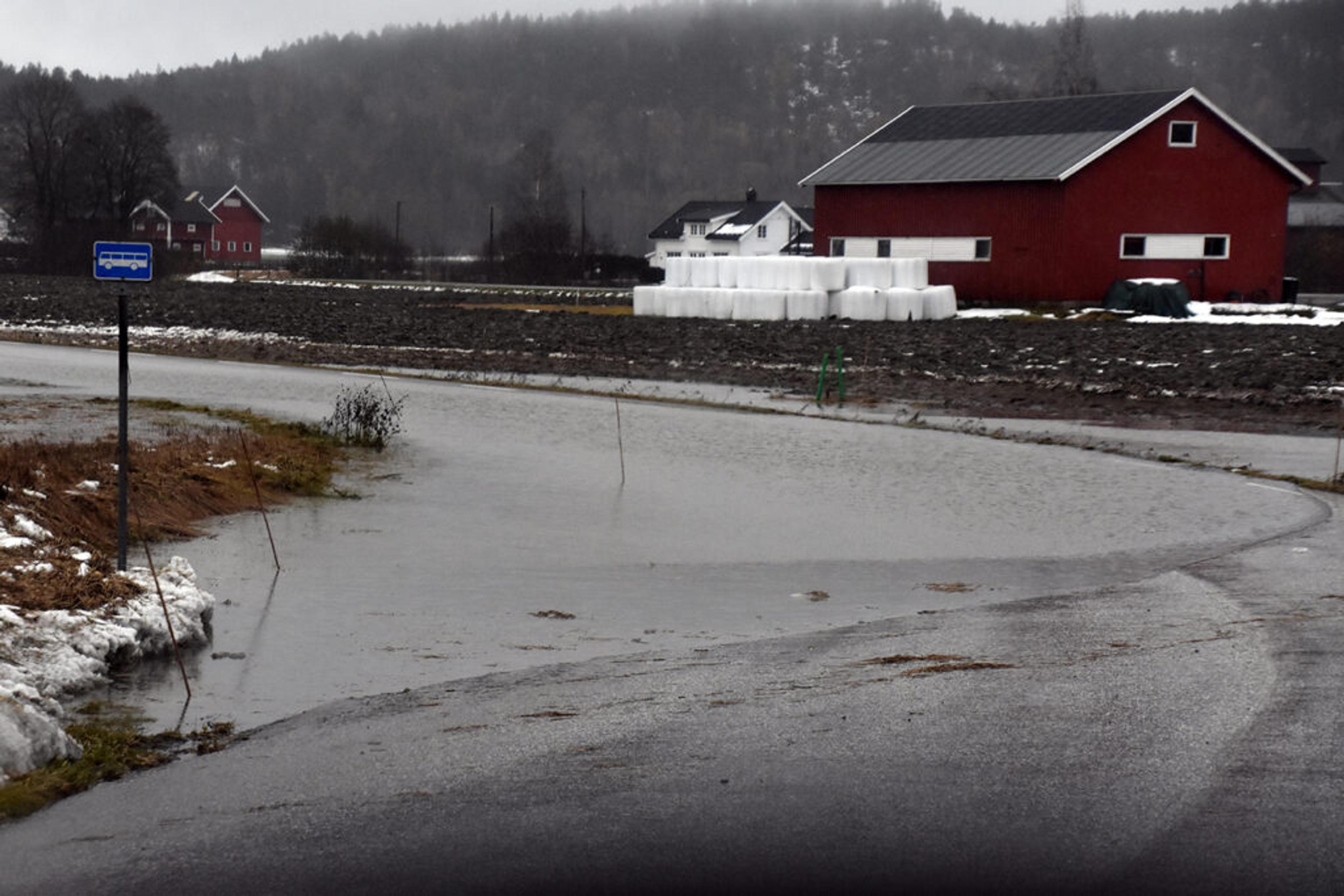 STORE VANNMENGDER: Over veien over bakkane. Foto: Stian Ormestad, ReAvisa.