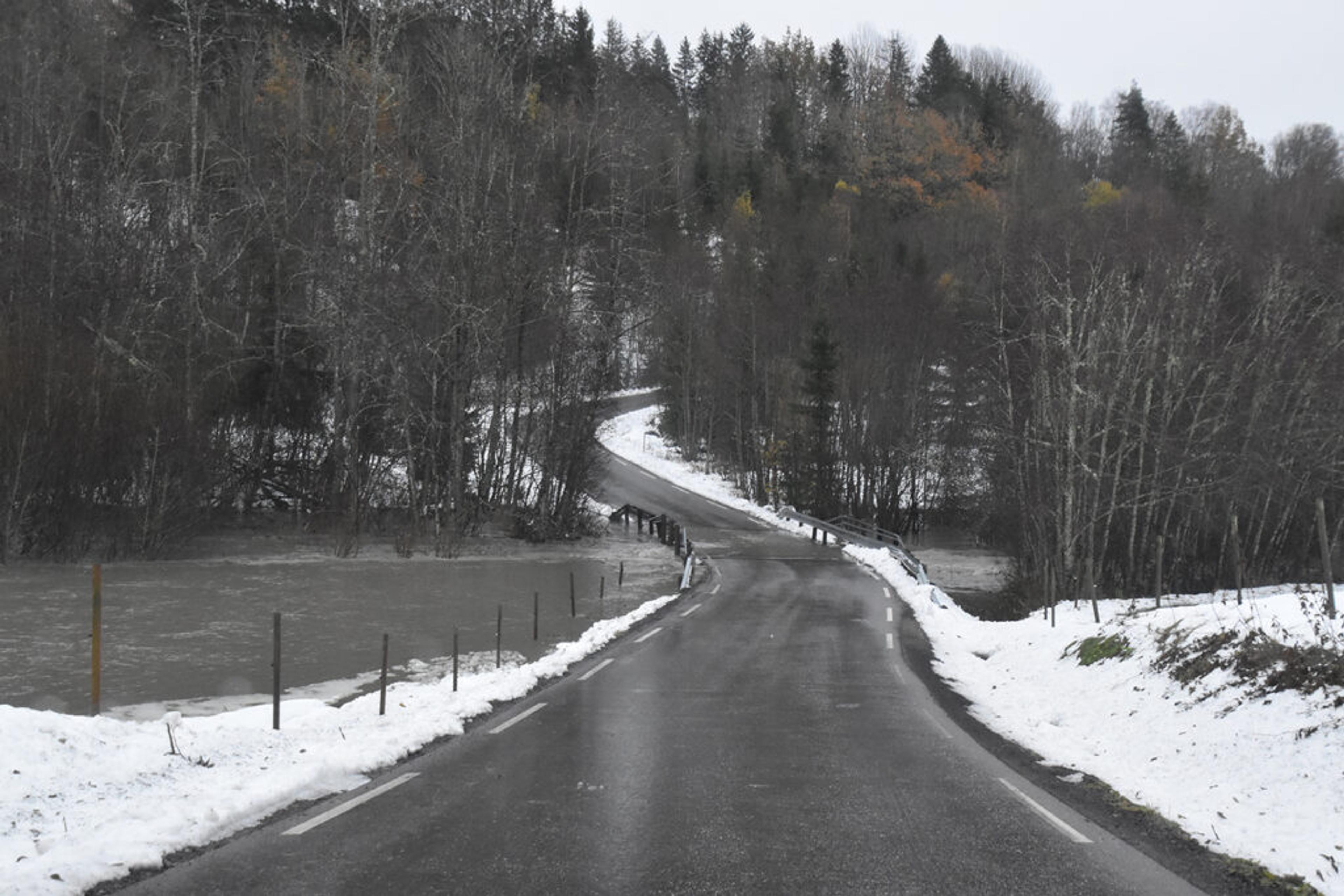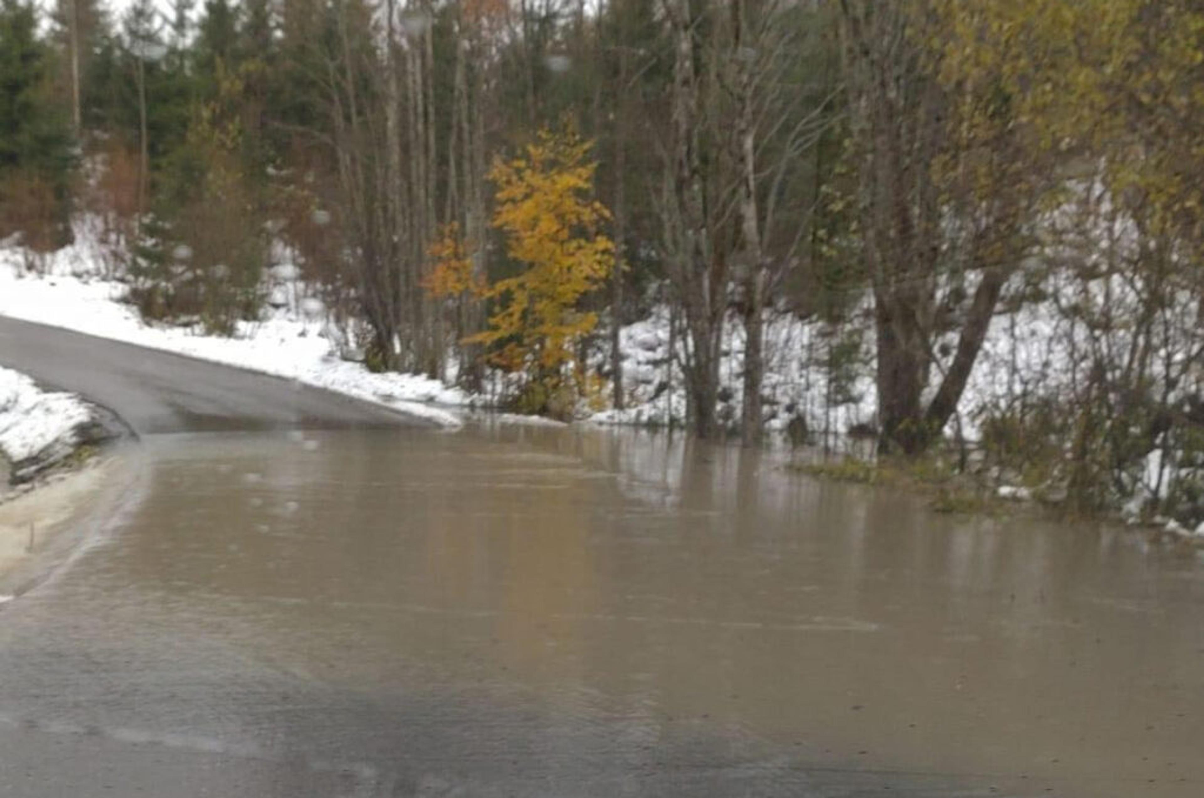 STORE VANNMENGDER: Bjuneveien må stenges. Foto: VIB.
