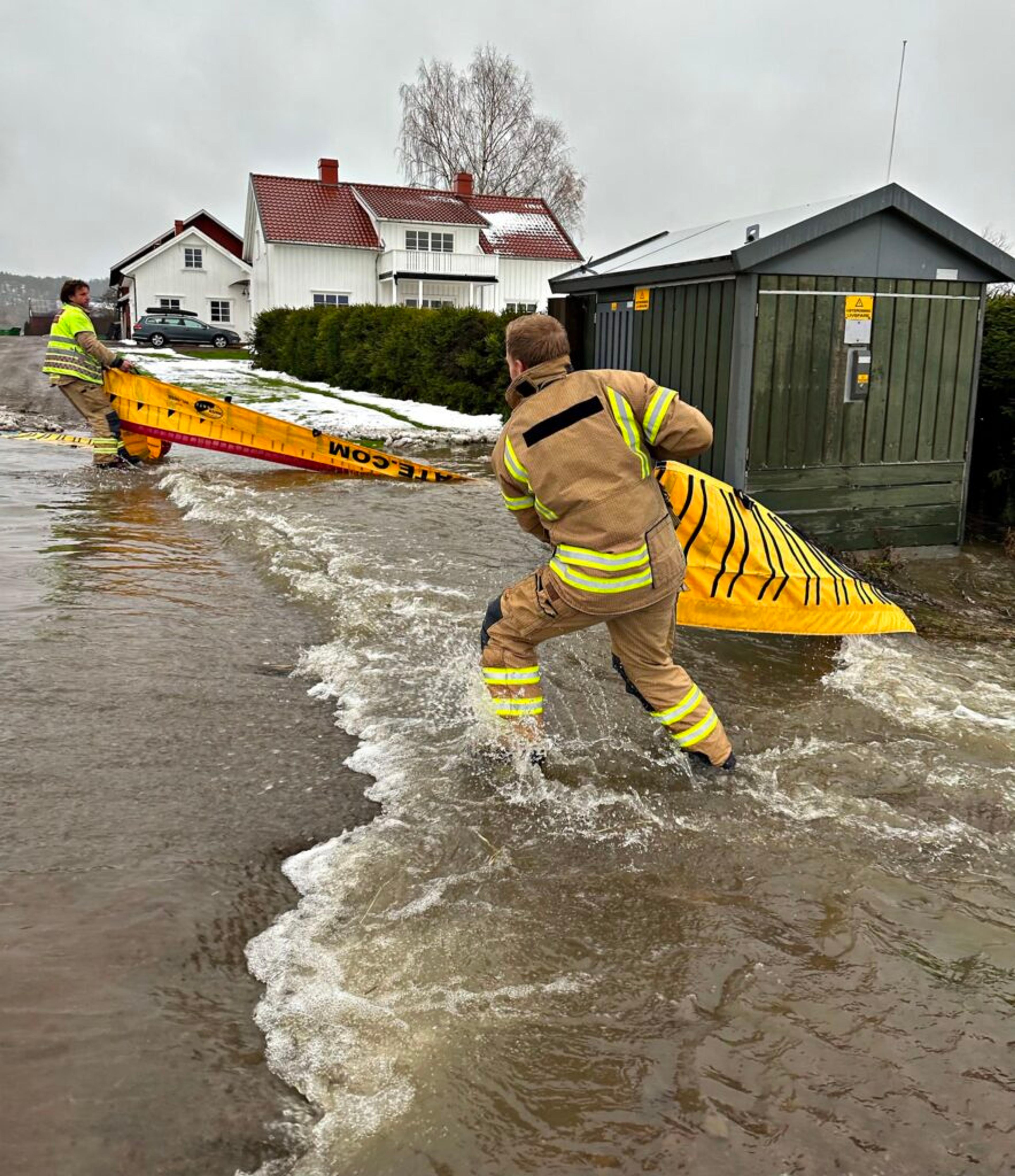 I 11-tida fredag 3. november rykket mannskaper fra stasjon Tønsberg ut for å sikre en trafostasjon som var trua av vann ved Bjunegrenda i Re.
