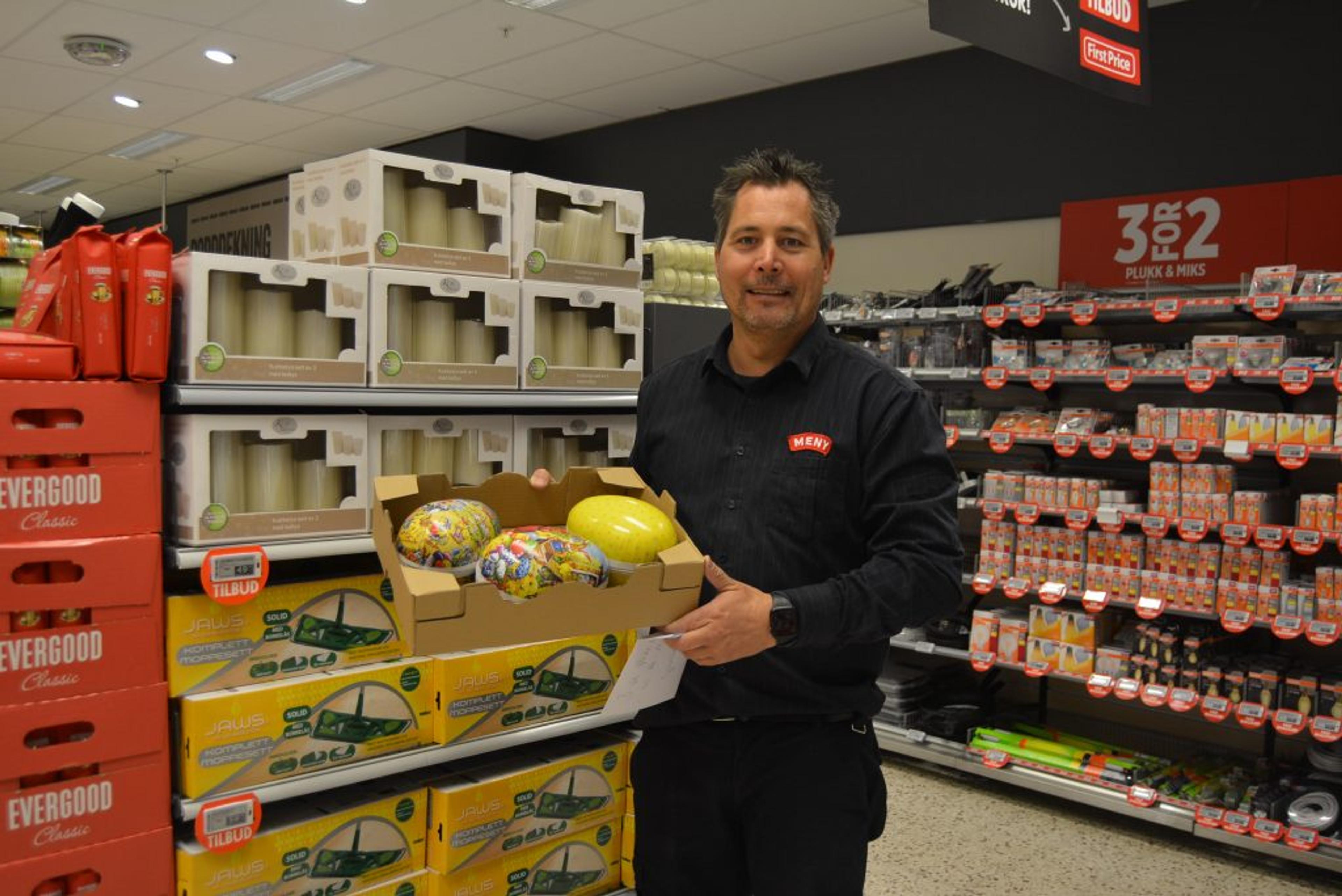 STILLER MED PÅSKEPREMIE: Kjøpmann Martin Gran har laga påskeegg til vinnerne av ReAvisas lille påskekviss. Foto: Lovis Eggum Wallberg.