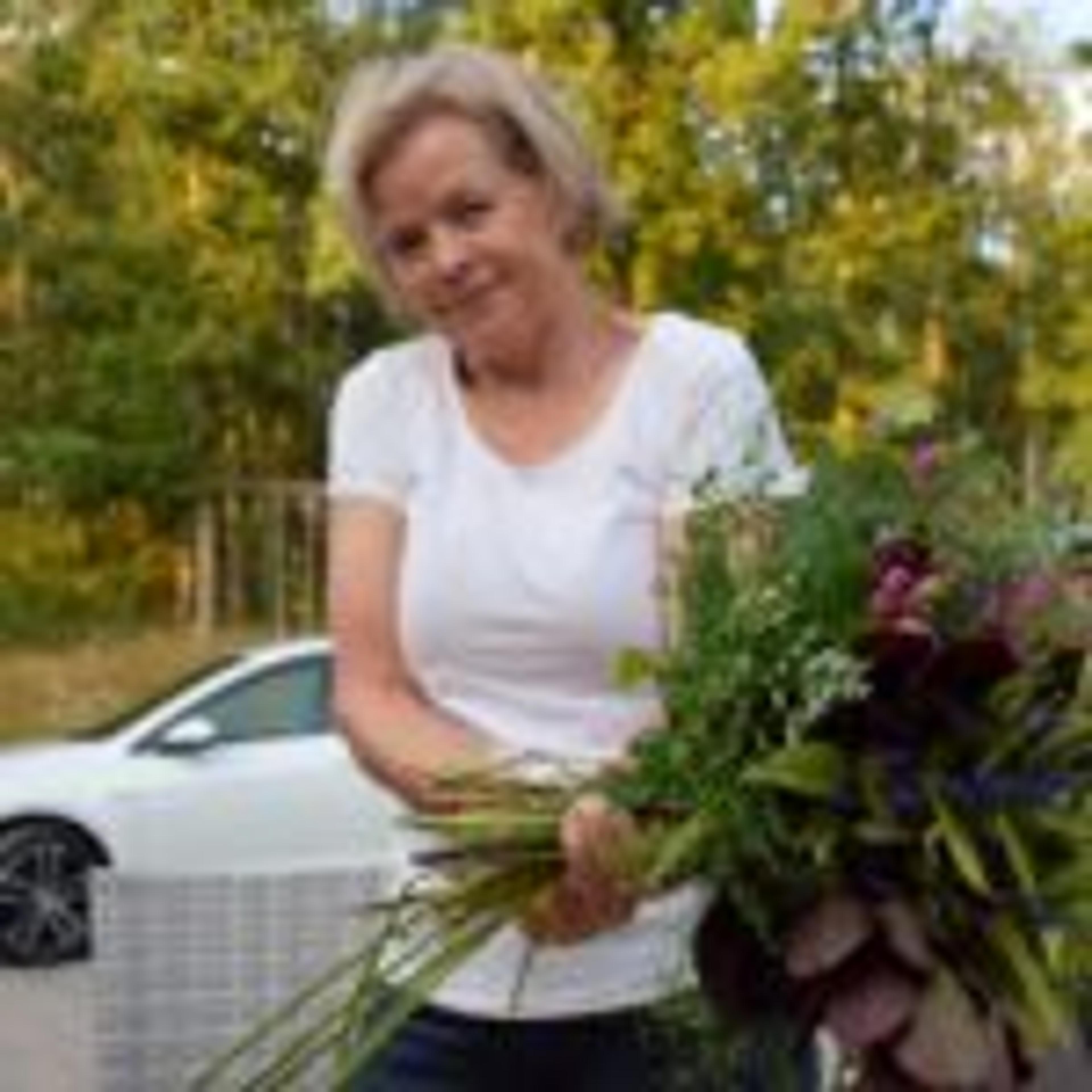 LEDER: Torill Wilskog, leder i Re hagelag, med buketten laget av blomster fra egen hage. Foto: Håkon Westby.