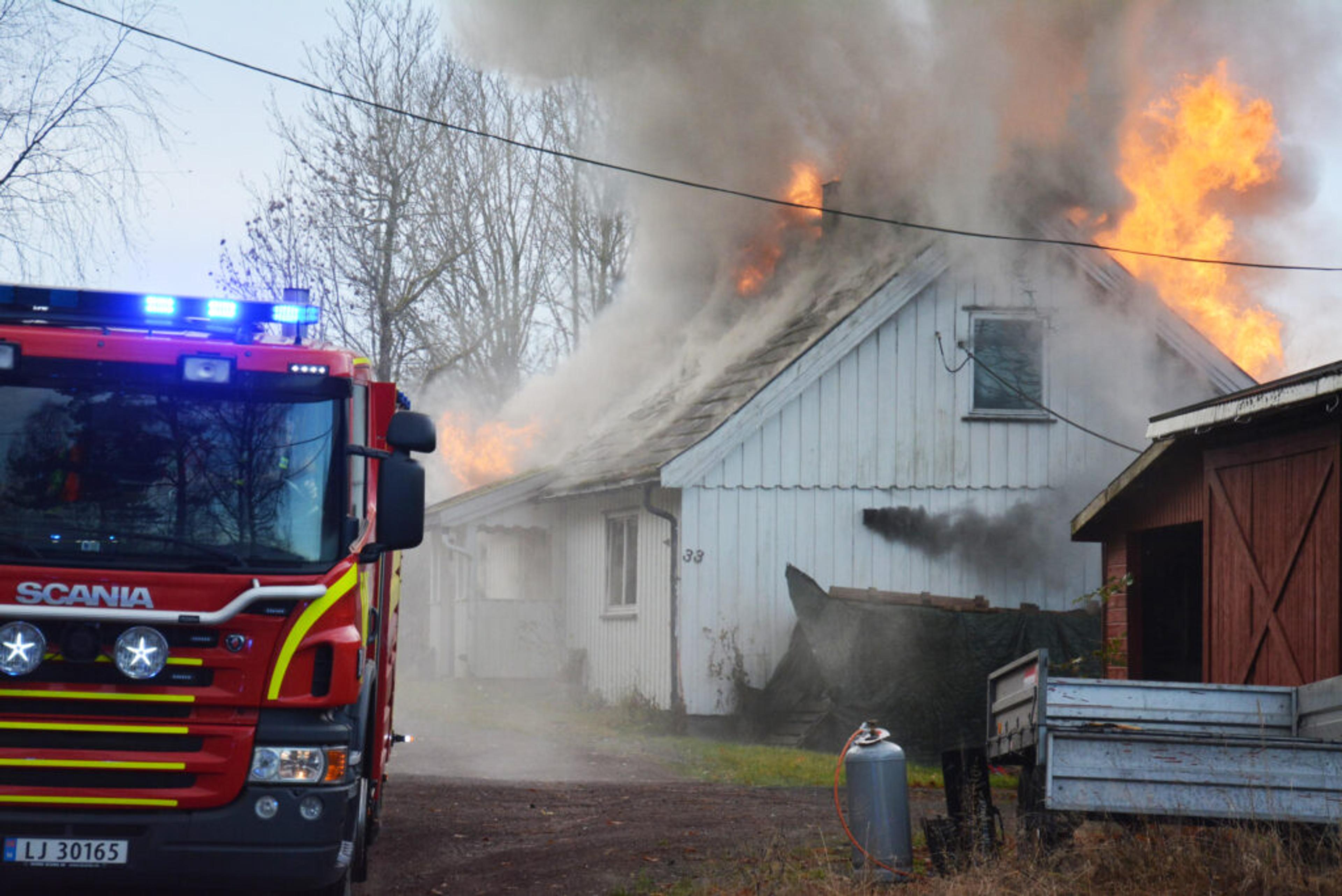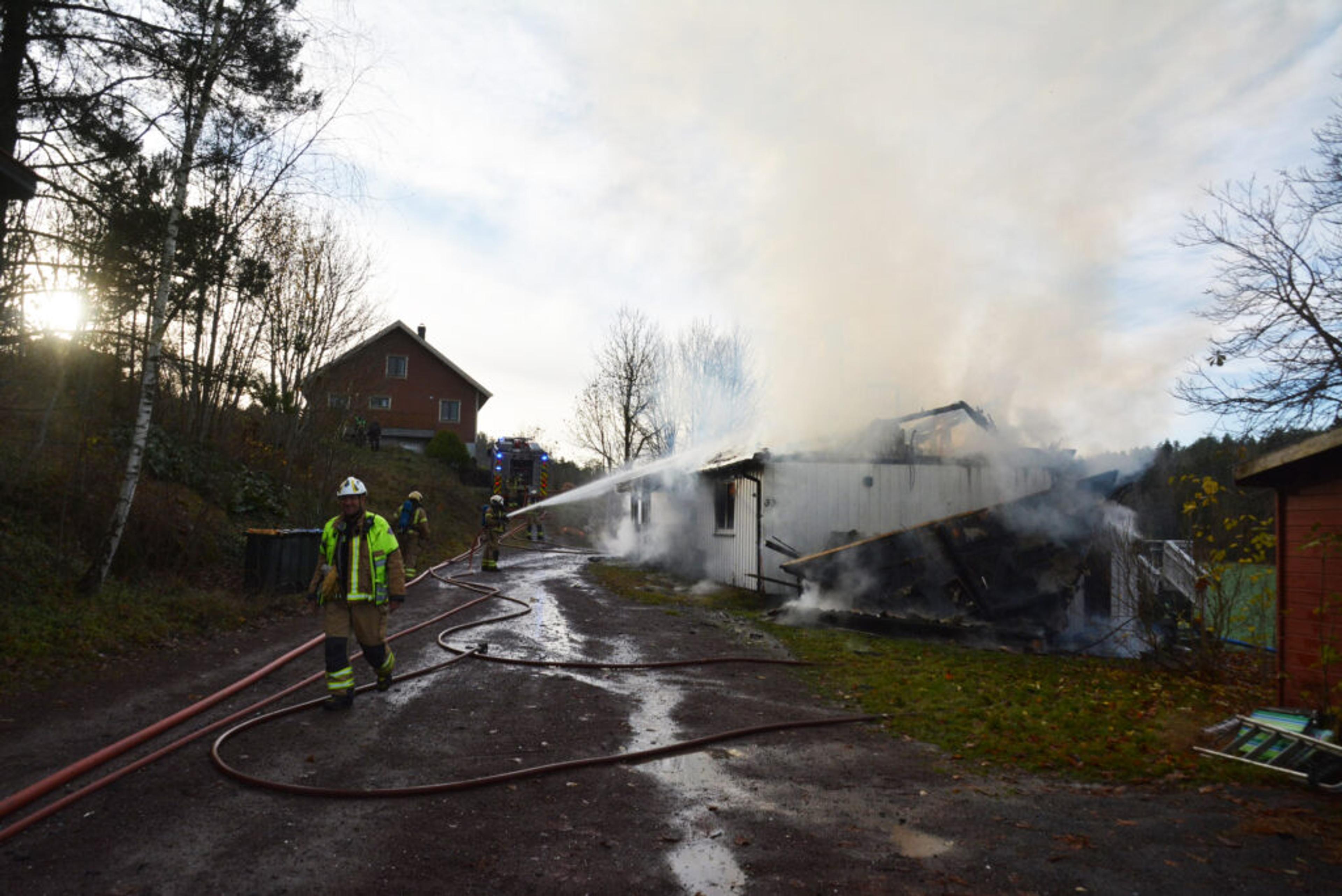 OVERTENT: Huset var kjapt overtent etter at røykutviklingen først ble oppdaga av naboer. Foto: Stian Ormestad.