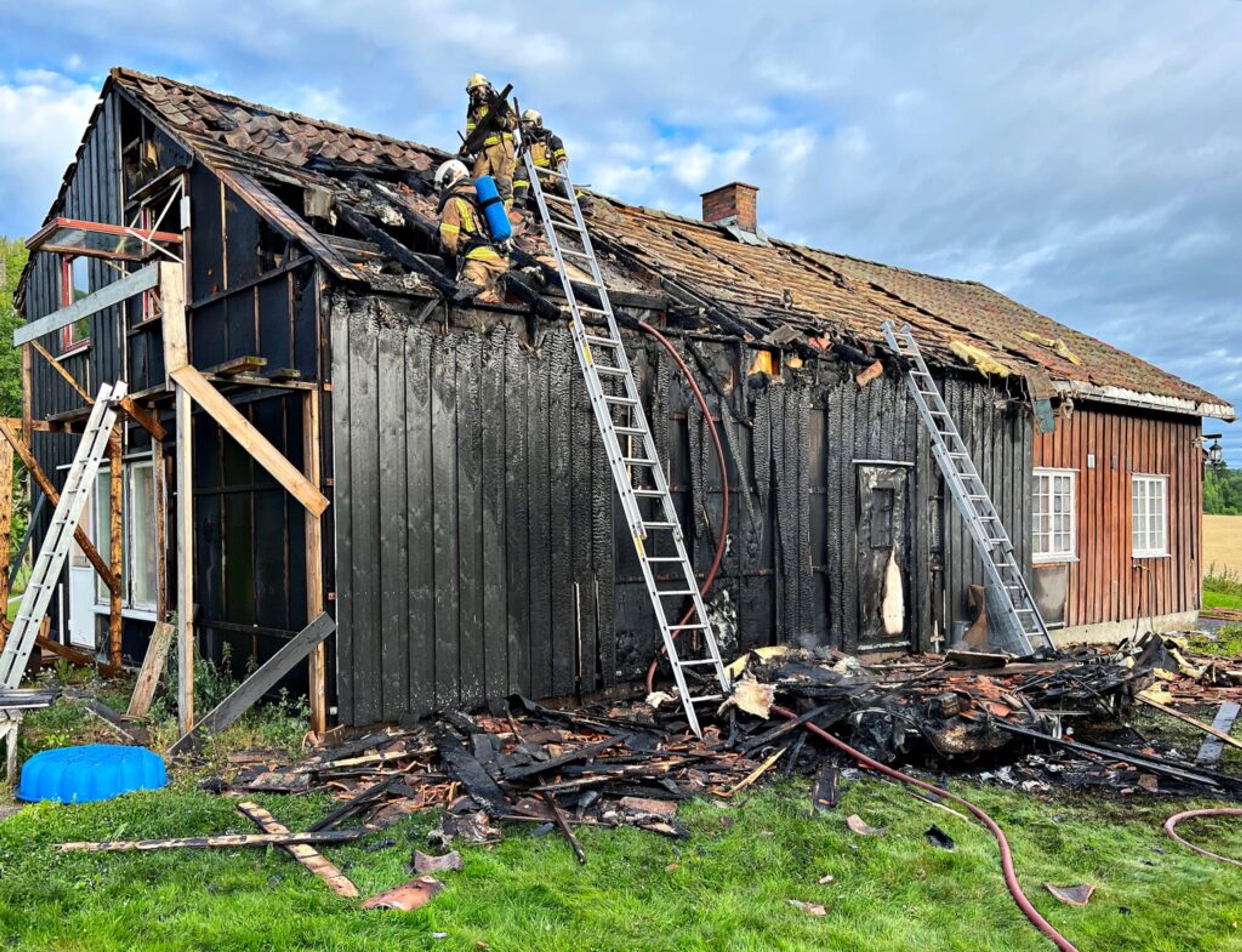 – Det er ikke kontroll på brannen. Det vil pågå slokking og etterslokking en tid framover, heter det en times tid etter første melding om brannen.
