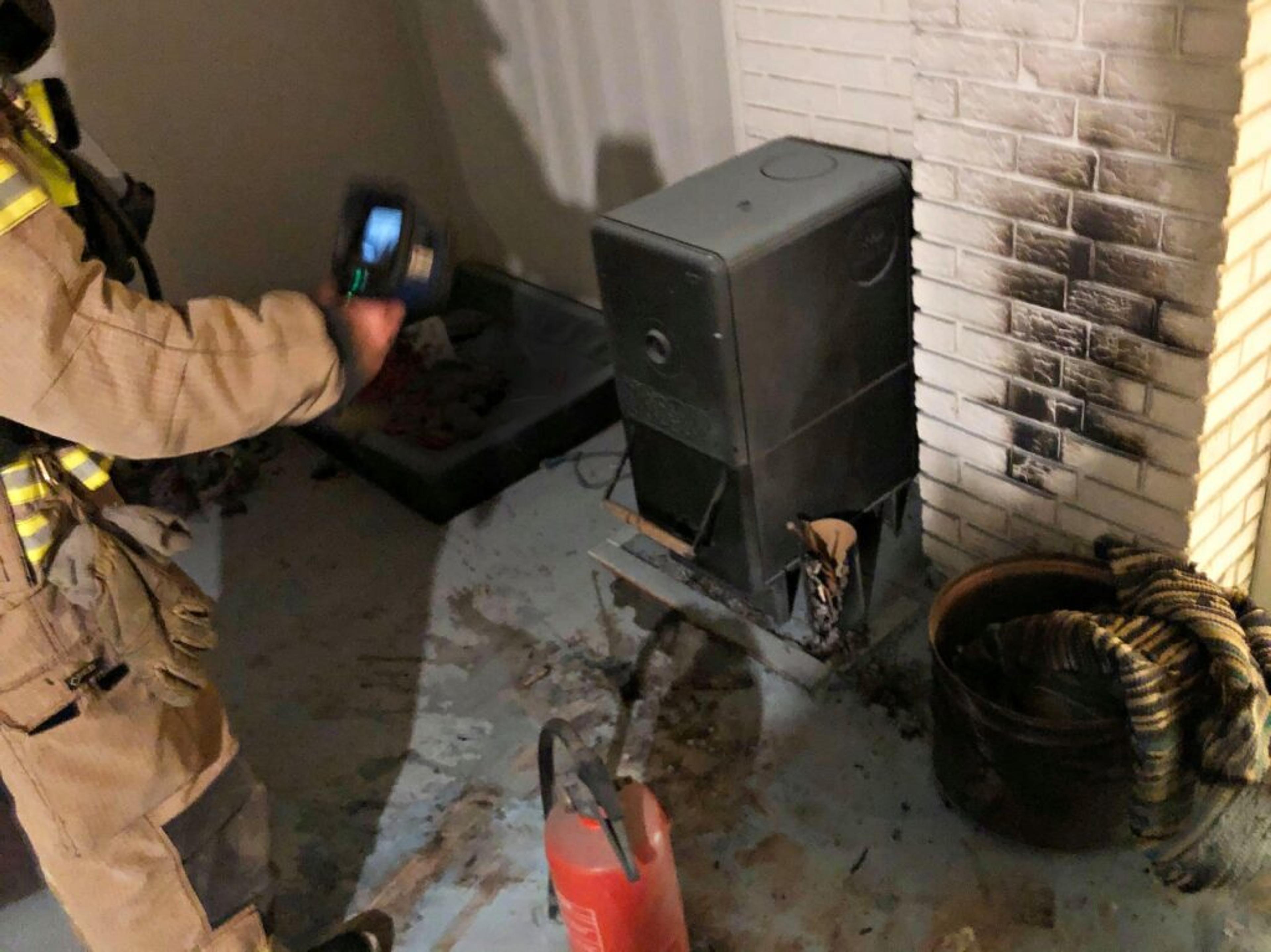 – En av de to på stedet forteller oss at de våkna av knitring, og oppdaget da at det brant i stua. De fikk tømt et 6 kilo pulverapparat og lagt en fillerye over noe av det som brant.